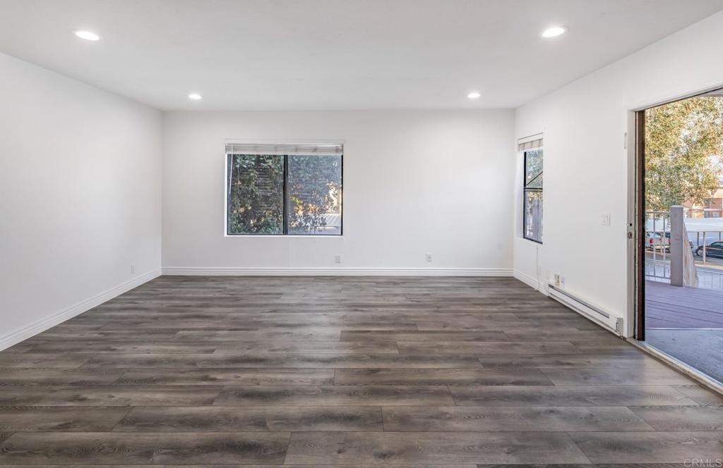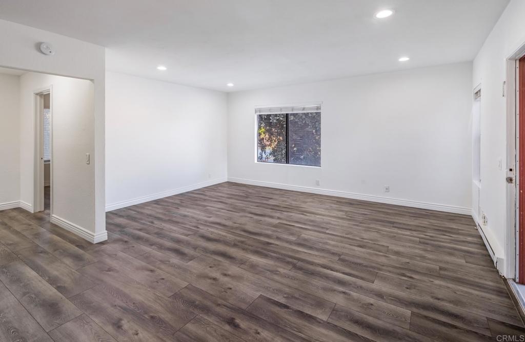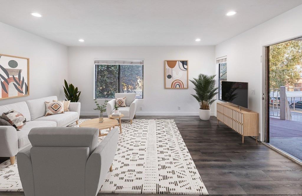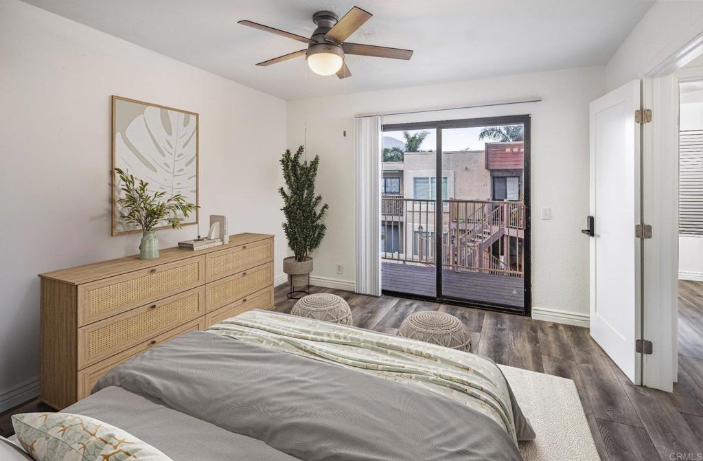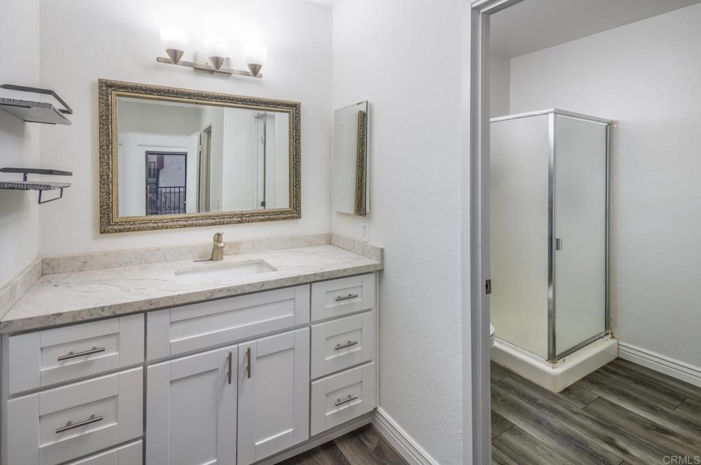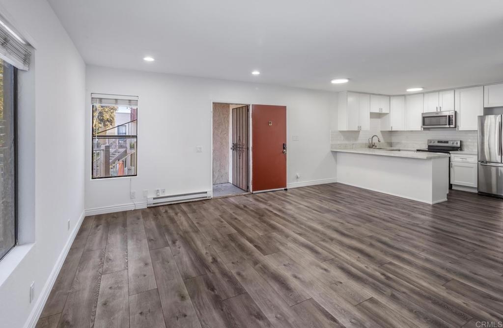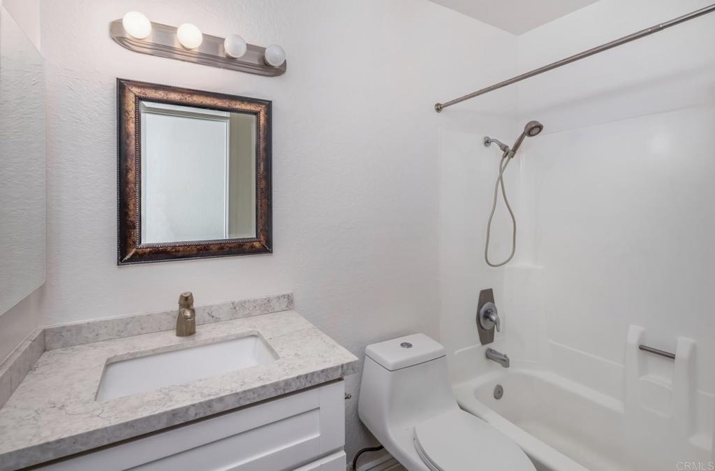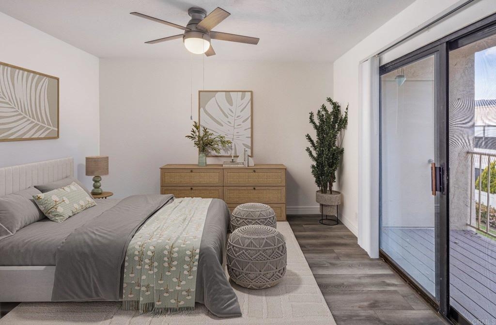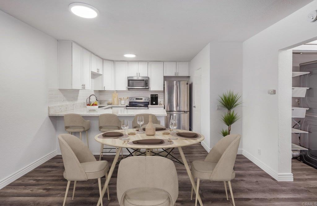 Welcome to this beautifully updated single-level, top-floor unit offering 3 bedrooms, 2 bathrooms, and 1,180 square feet of stylish living space. The open-concept layout features new LVP floors throughout, and a modern kitchen with stainless steel appliances, quartz countertops, subway tile backsplash, new shaker cabinetry, and a walk-in pantry—perfectly designed for everyday living and entertaining. Enjoy countertop seating and a dedicated dining area that flows seamlessly into the inviting family room with large windows that bring in lots of natural light. The primary suite offers a peaceful retreat with a large walk-in closet, en suite bath, and walk-in shower, while the secondary bedrooms have their own designated full bathroom with a tub/shower combo. Two of the bedrooms have access to a large balcony with a storage closet. Additional highlights include full-size in-unit washer and dryer, ample storage, fresh paint throughout the entire home, and two designated parking spaces. Ideally located just minutes from San Marcos Elementary, Cal State San Marcos, the library, shopping, dining, and easy freeway access—this home blends comfort, convenience, and modern style in one perfect package.