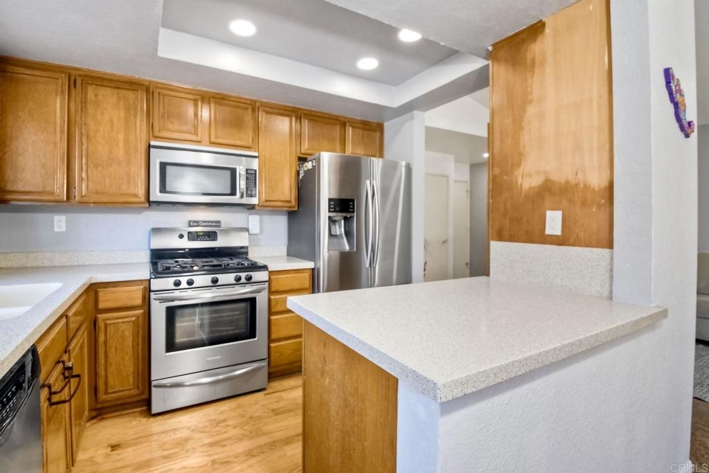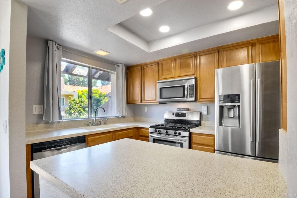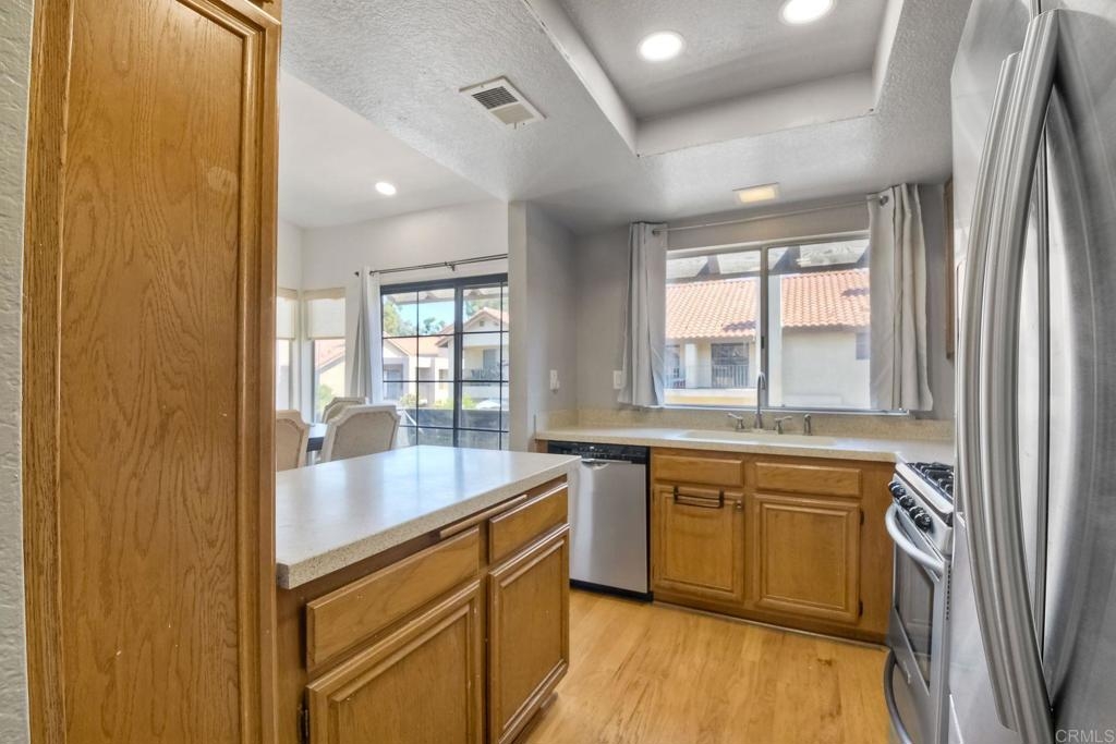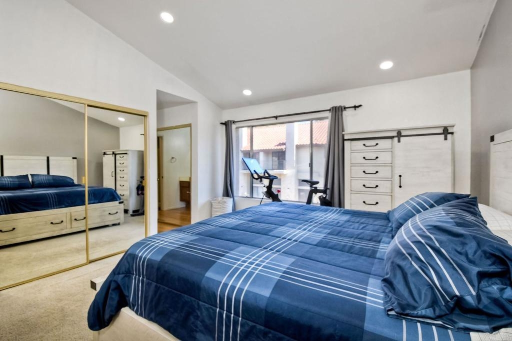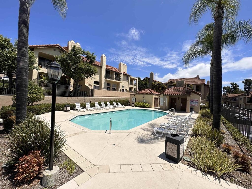 Welcome to your dream oasis in the heart of San Marcos at Avocado Gardens! This exquisite upstairs condominium unit offers a perfect blend of comfort, style, and convenience, presenting a fantastic opportunity for those seeking the ultimate in modern living. 2 bedrooms and 2 bathrooms spread over 996 square feet of open living space, this charming home is characterized by its inviting atmosphere and thoughtful design. As you step inside, you'll be greeted by the grandeur of vaulted ceilings that elevate the sense of space, allowing natural light to flood every corner of the interior. The Spanish Mediterranean architecture lends a touch of timeless elegance to the ambiance. The heart of this home is the spacious living area that seamlessly connects the living room, dining space, and kitchen. This open layout fosters an ideal environment for both relaxation and entertainment. The kitchen itself is a chef's delight, adorned with modern appliances, ample countertop space, and sleek cabinetry that effortlessly combines functionality and aesthetics. Dive into luxury at the community pool, perfect for cooling off on warm days or simply lounging poolside or find delight in the community playground, a hub of fun and laughter where friendships are formed and cherished memories are made. All this and a single-car garage, your vehicle is kept safe and secure, offering added convenience and peace of mind. The common courtyard beckons you to enjoy leisurely strolls, fostering a sense of camaraderie among neighbors and the opportunity to unwind amidst serene surroundings. Location is everything, and Avocado Gardens certainly doesn't disappoint. Situated in close proximity to shopping centers, you'll have quick and easy access to all your daily needs. The freeway and public transit is just about a half mile away, making commuting a breeze. Exceptional school district adds to the allure, ensuring that education is never compromised. This 2-bedroom, 2-bathroom condominium unit offers a lifestyle of comfort, luxury, and convenience, set within the picturesque Avocado Gardens complex. With its Spanish Mediterranean charm, security features, community amenities, and prime location, this home is a rare gem waiting to be discovered by its next fortunate owner. Don't miss out on this unparalleled opportunity to make this enchanting sanctuary yours and experience the epitome of Southern California living.