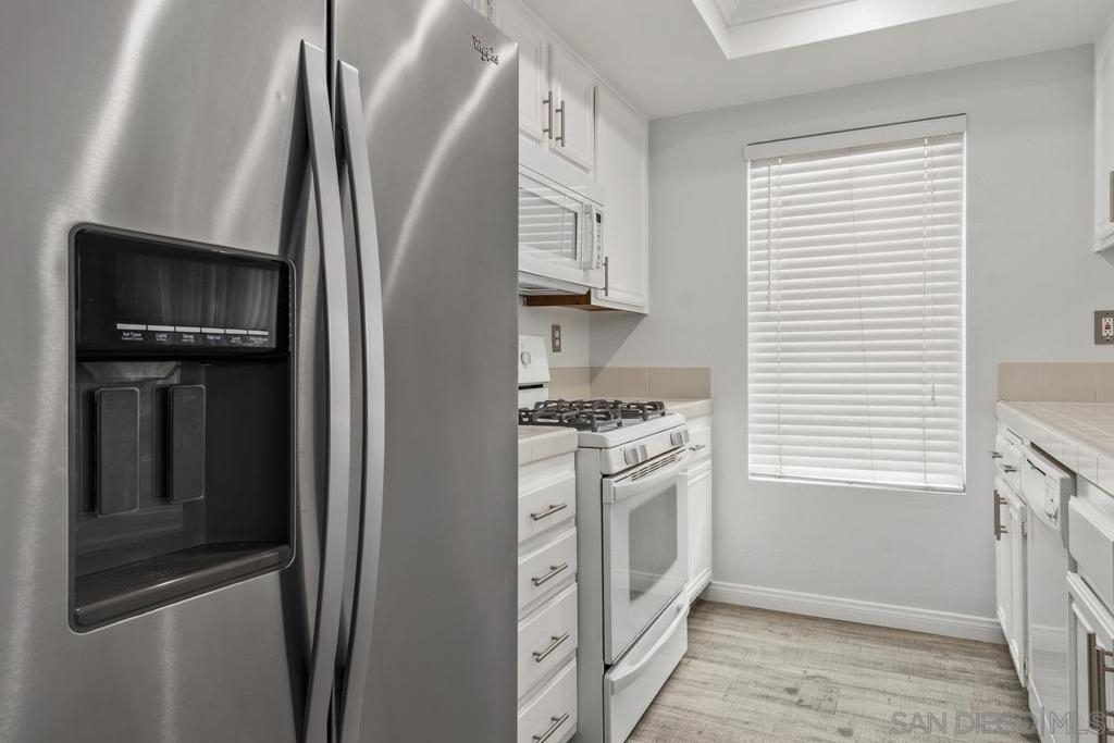 Light/Bright single level ground floor end unit has many upgrades throughout which include new flooring, new paint, fans in all rooms and updated bathrooms. Full size in unit washer/dryer/ AC , fireplace with rare to find 1 car garage plus 1 assigned parking and lots of guest parking. Well maintained complex with roof replaced last year and HOA covering water, trash , sewer. Complex features pool, spa, 2 kiddie lots and a gated dog park. Complex Features: ,, Equipment: Range/Oven Other Fees: 0 Sewer: Sewer Connected Topography: LL