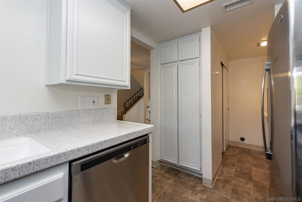Located in highly desirable Avocado Gardens, this rare 3 bedroom 2.5 bath 1364 Sq ft unit has an open floor plan, updated kitchen, SS appliances, Washer Dryer central AC. Cozy fireplace, freshly painted and laminate flooring and newly installed carpet make this home truly turnkey! Enjoy sitting on your own patio just off the dining area. Conveniently located large 1 car garage #5 in addition to an assigned parking space # 67 ! Community pool, tot lot, dog park, and picnic area. Close to CSUSM, freeway. Other Fees: 0 Sewer: Sewer Connected Topography: LL