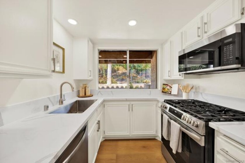 Welcome to your beautifully remodeled home in the charming and desirable Avocado Gardens community of San Marcos! This spacious 3-bedroom, 2.5-bath split-level condo offers modern upgrades, thoughtful design, and a convenient location—ideal for families, first-time buyers, or savvy investors. Step through your private gated courtyard into a bright, open-concept living space featuring vaulted ceilings, recessed lighting, and a cozy fireplace—perfect for relaxing or entertaining. The remodeled kitchen dazzles with sleek new quartz countertops, stainless steel appliances, and stylish cabinetry that flows into the dining area. The large private outdoor patio adds additional room for dining, reading, bbqing, and relaxing.  The spacious primary suite offers a peaceful retreat, and the two additional bedrooms are perfect for family, guests, or home office space. The home also includes a laundry room with washer and dryer.  Enjoy a vibrant and family-friendly community complete with a sparkling pool and spa, tot lot, dog park, and picnic areas. Water is included . . . no water bill! Conveniently located near top-rated schools, shopping centers, parks, and just minutes from I-78 and I-15 for easy commuting. Water is included in the monthly HOA fee so you can say goodbye to water bills! The schools zoned for this area are: Knob Hill ES Woodland Park MS Mission Hills HS