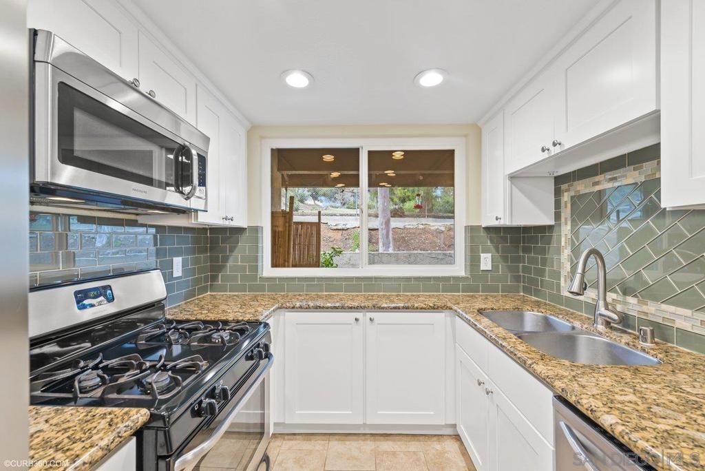 Pride of ownership in this light & bright highly desired tri-level 3 bedroom townhome in the Avocado Gardens complex in San Marcos. Beautifully remodeled kitchen, upgraded baths, Master suite with dual sinks and a balcony - great for relaxing & watching the sunset. Newer Dual Paned Windows. Newer AC & furnace. No one above or below. Inside full size washer/dryer. 1 car garage & additional assigned space conveniently located nearby the unit. Relax on your Private patio with views of park behind the complex. Indoor/Outdoor Living. Perfect for Entertaining. Close to shopping, restaurants, parks, schools, walking trails, freeway access and more. This is a Must See! Features remodeled kitchen including granite countertops, newer cabinets, custom backsplash, stainless steel matching appliances, gas stove, pantry, upgraded baths with newer vanities and shower/bath enclosures. Recessed lighting, gorgeous flooring, open unique floor plan with high ceilings and more. Secure gated courtyard entry. The HOA includes water, sewer, trash, roof maintenance, limited insurance and complex amenities of pool, spa, playground area and dog park. This is a Must See! Complex Features: ,, Equipment: Dryer, Washer Sewer: Sewer Connected