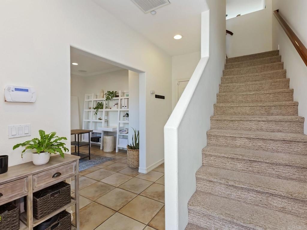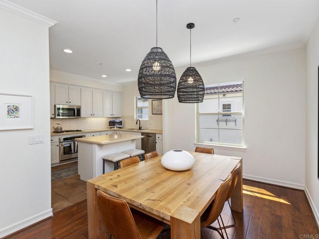 Immaculate condo in the Larkspur Heights/Old Creek Ranch Community with contemporary upgrades and gorgeous views throughout. Superior location within this desirable complex--feels very private and open! Spacious 1st floor room w/ enclosed patio...perfect as an office or potential bedroom #3. Beautifully appointed w/hardwood flooring, gorgeous kitchen w/ S/S appliances, white cabinetry, center island, upgraded counters and tiled backsplash, custom window treatments, upgraded baths, crown moulding, AC, fireplace w/ custom tile surround & more! Located in a quiet location w/private entry level patio + beautiful views from both inside and out. 2 car side by side attached garage. Ideally located in the popular Calico Bluffs/Larkspur Heights neighborhood of Old Creek Ranch w/ community pool/spa/playground/picnic area. Just a short drive to the beach and near stores, restaurants, trails, parks, top rated schools & more. FHA/VA approved. Fridge/washer/dryer convey. Room dimensions & square footage are approximate, per builder & assessor's record. Mello-roos is estimated.
