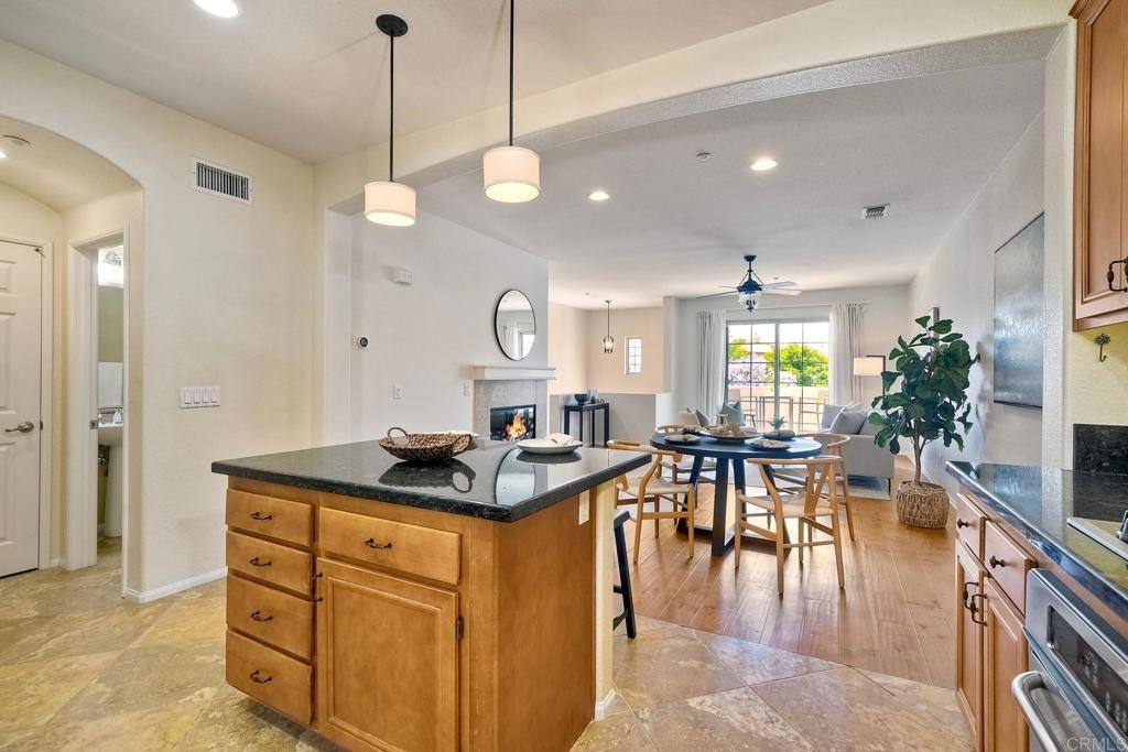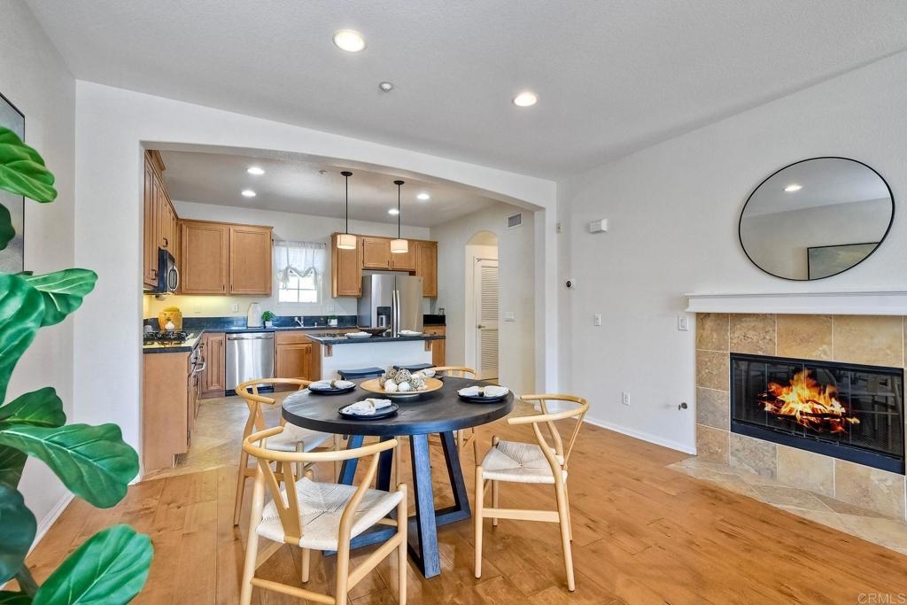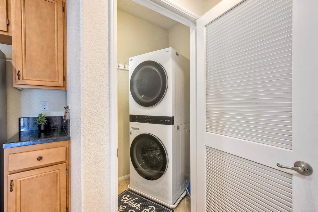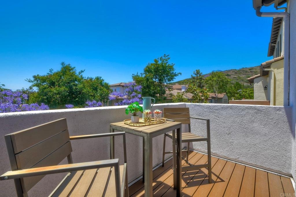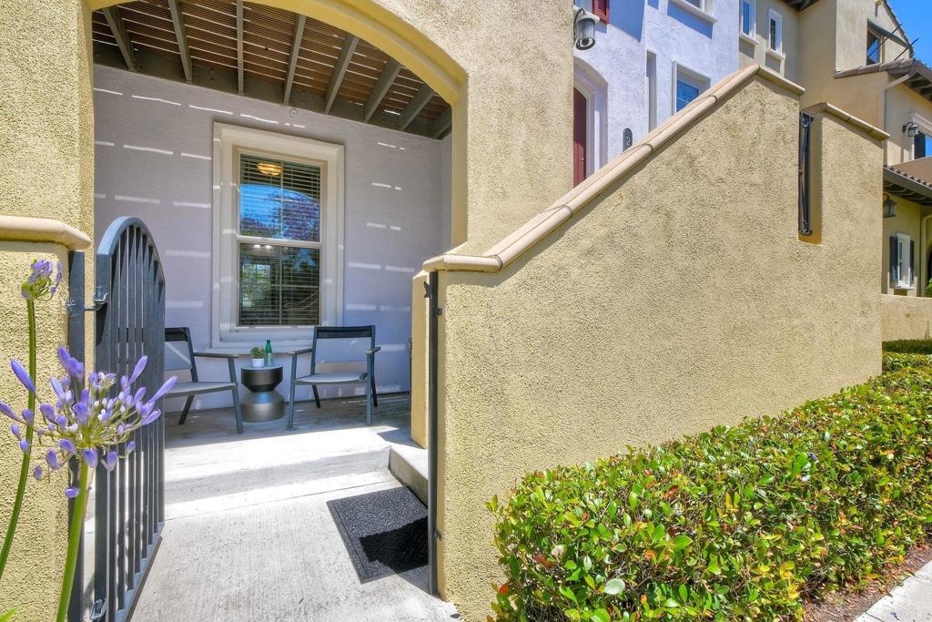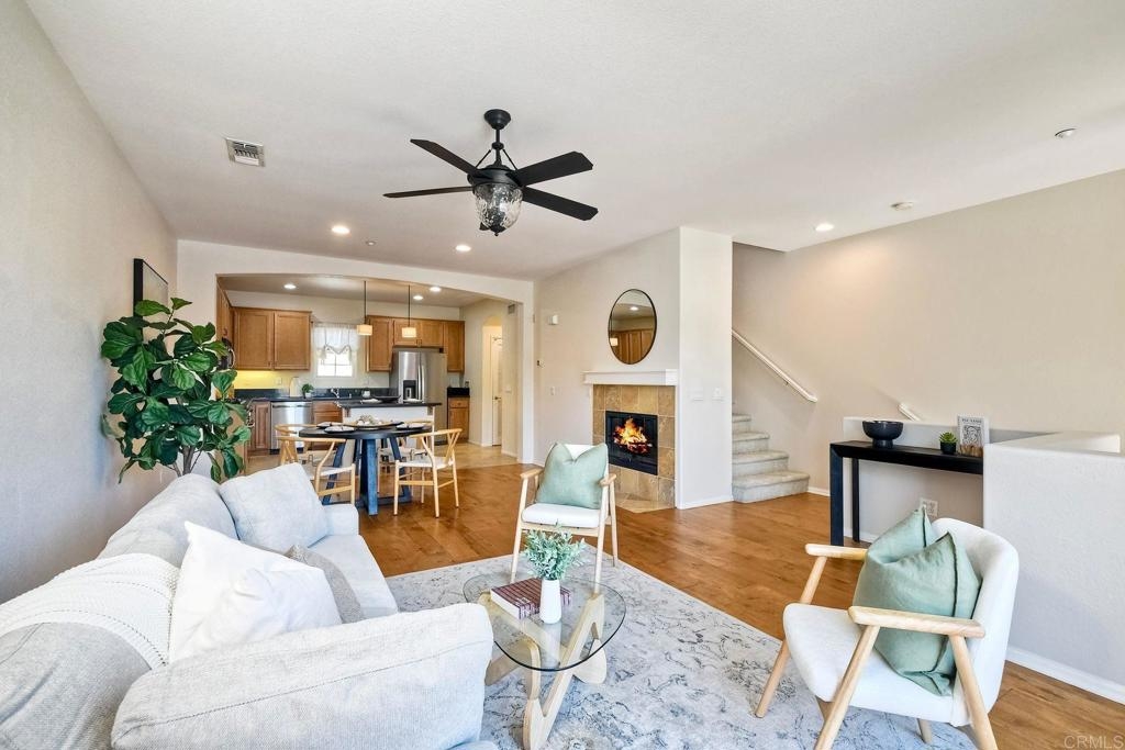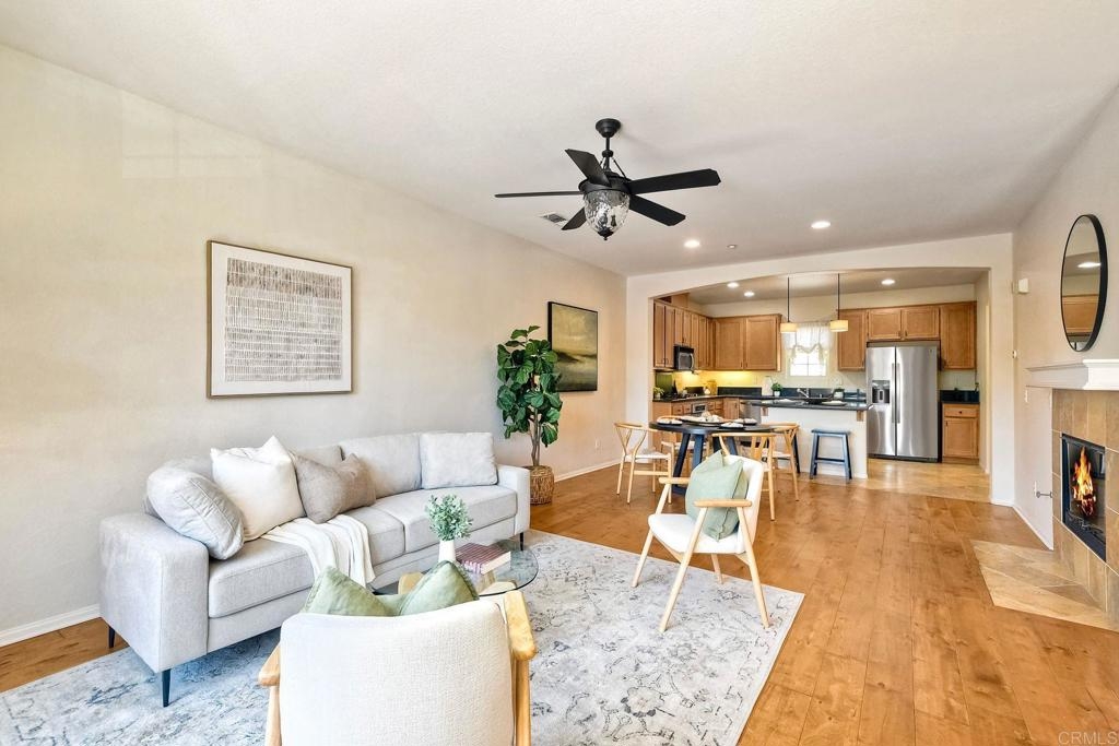 Welcome to your move-in ready dream home in the peaceful, tree-lined community of Larkspur Heights in San Marcos! This charming 2-bedroom, 2.5-bath townhome features an attached 2-car garage and a convenient entry-level bedroom with a full bath—perfect for guests or multi-generational living. Upstairs, enjoy a bright and open floor plan with a spacious family room and dining area centered around a cozy fireplace. The beautifully appointed kitchen boasts granite countertops, stainless steel appliances, ample cabinetry, and an island—ideal for entertaining or casual meals. Natural light floods the space through a sliding glass door, which opens to a charming Trex-deck balcony—your perfect spot for morning coffee or an evening glass of wine. Just off the kitchen, you’ll find a laundry area with a full-size, stackable washer and dryer, newly added in 2023. At the top of the stairs, a versatile mini-loft provides the ideal space for a home office or cozy retreat. The spacious primary suite features arched doorways, abundant natural light, a large walk-in closet, and an ensuite bath with dual sinks. Residents of Larkspur Heights enjoy access to a community pool and BBQ area just a short stroll from the home. All this, located in a highly desirable neighborhood known for its excellent schools and welcoming atmosphere.