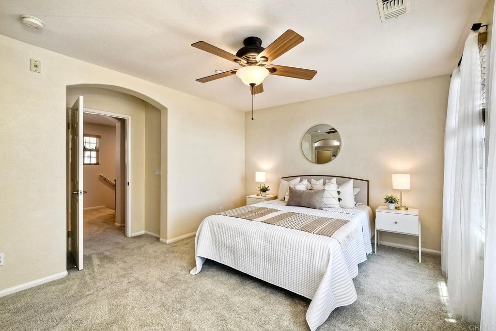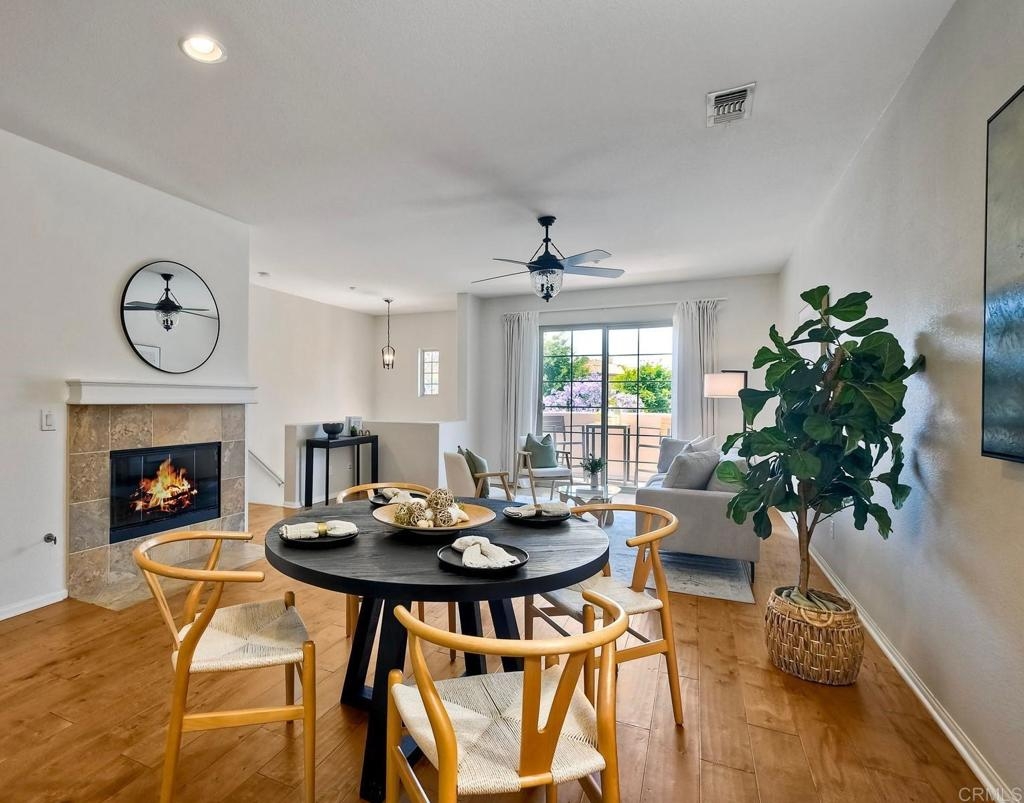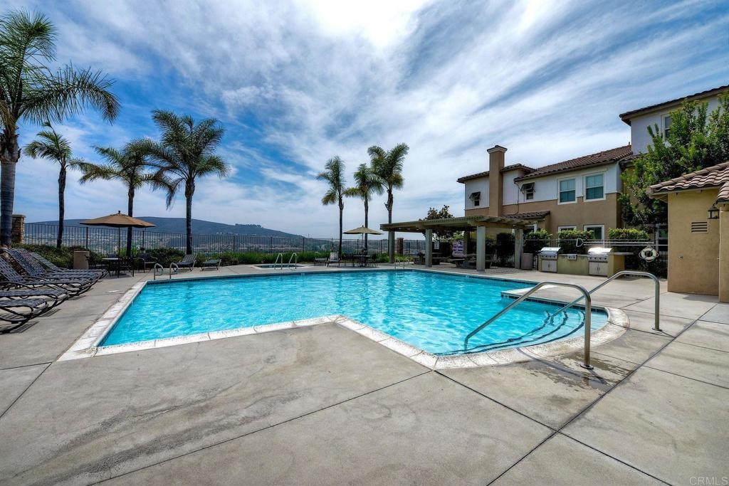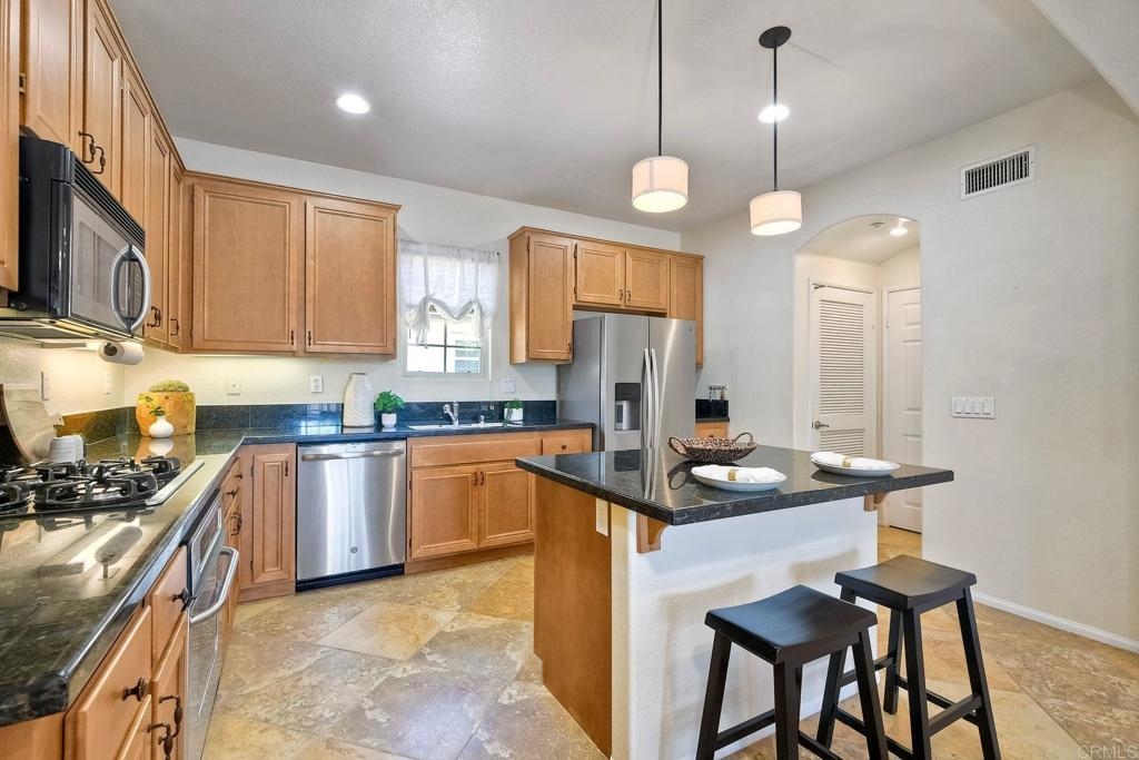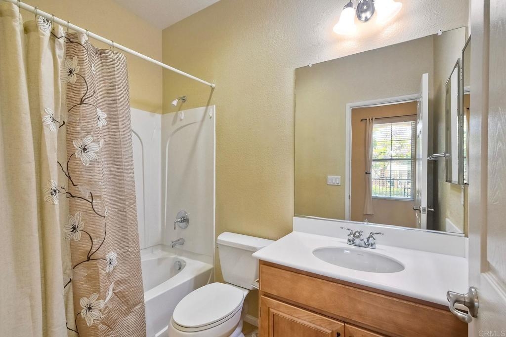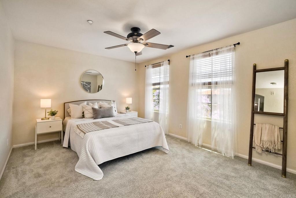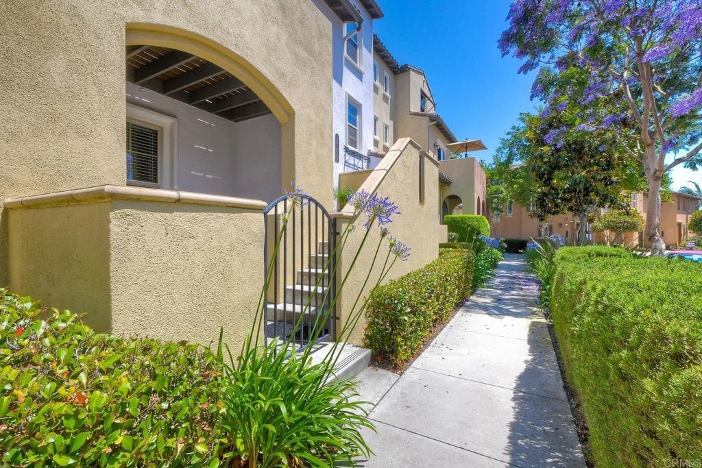 Welcome to your move-in ready dream home in the peaceful, tree-lined community of Larkspur Heights in San Marcos! This charming 2-bedroom, 2.5-bath townhome features an attached 2-car garage and a convenient entry-level bedroom with a full bath—perfect for guests or multi-generational living. Upstairs, enjoy a bright and open floor plan with a spacious family room and dining area centered around a cozy fireplace. The beautifully appointed kitchen boasts granite countertops, stainless steel appliances, ample cabinetry, and an island—ideal for entertaining or casual meals. Natural light floods the space through a sliding glass door, which opens to a charming Trex-deck balcony—your perfect spot for morning coffee or an evening glass of wine. Just off the kitchen, you’ll find a laundry area with a full-size, stackable washer and dryer, newly added in 2023. At the top of the stairs, a versatile mini-loft provides the ideal space for a home office or cozy retreat. The spacious primary suite features arched doorways, abundant natural light, a large walk-in closet, and an ensuite bath with dual sinks. Residents of Larkspur Heights enjoy access to a community pool and BBQ area just a short stroll from the home. All this, located in a highly desirable neighborhood known for its excellent schools and welcoming atmosphere.