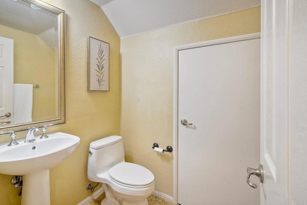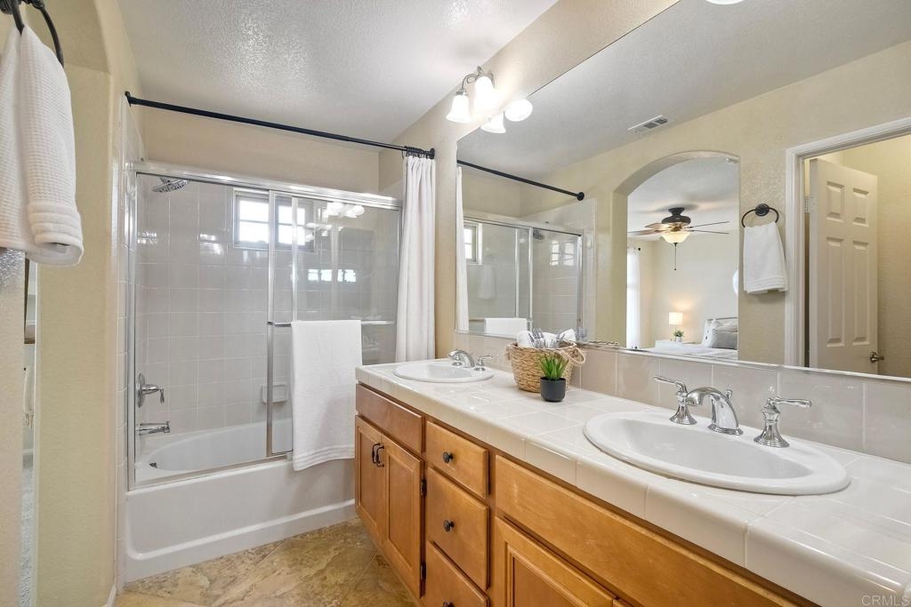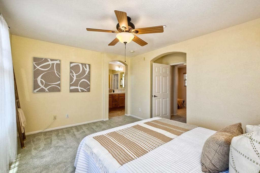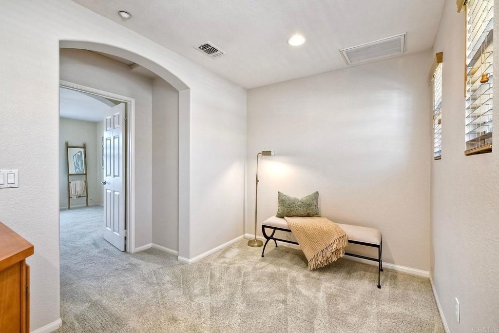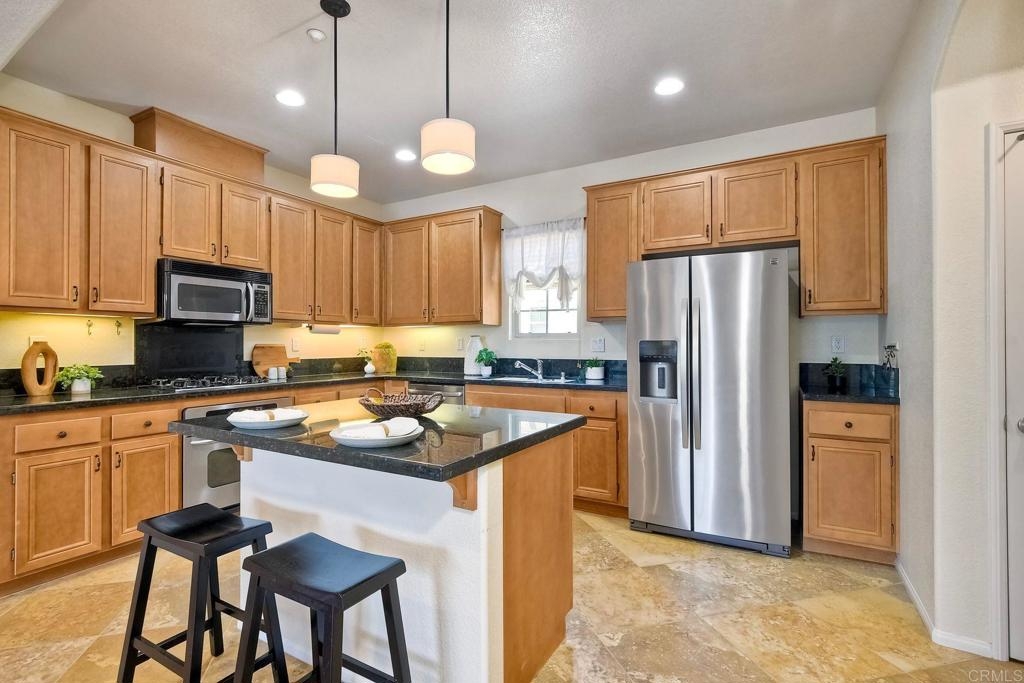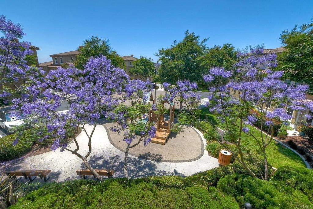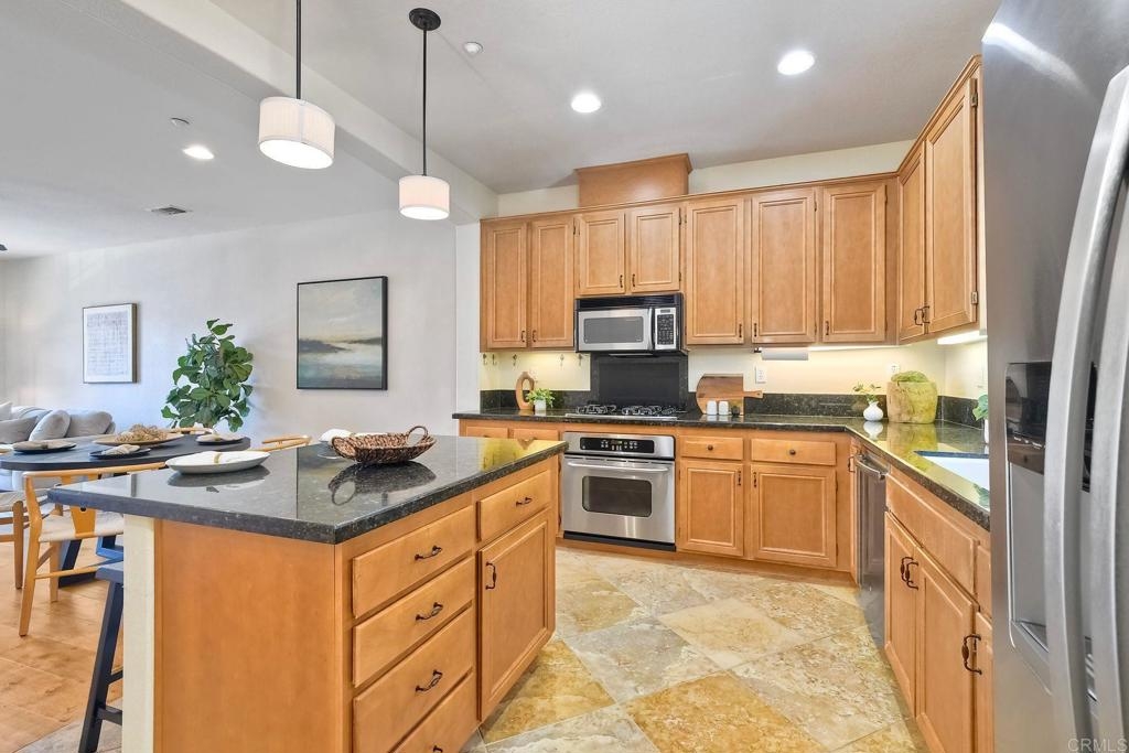 Welcome to your move-in ready dream home in the peaceful, tree-lined community of Larkspur Heights in San Marcos! This charming 2-bedroom, 2.5-bath townhome features an attached 2-car garage and a convenient entry-level bedroom with a full bath—perfect for guests or multi-generational living. Upstairs, enjoy a bright and open floor plan with a spacious family room and dining area centered around a cozy fireplace. The beautifully appointed kitchen boasts granite countertops, stainless steel appliances, ample cabinetry, and an island—ideal for entertaining or casual meals. Natural light floods the space through a sliding glass door, which opens to a charming Trex-deck balcony—your perfect spot for morning coffee or an evening glass of wine. Just off the kitchen, you’ll find a laundry area with a full-size, stackable washer and dryer, newly added in 2023. At the top of the stairs, a versatile mini-loft provides the ideal space for a home office or cozy retreat. The spacious primary suite features arched doorways, abundant natural light, a large walk-in closet, and an ensuite bath with dual sinks. Residents of Larkspur Heights enjoy access to a community pool and BBQ area just a short stroll from the home. All this, located in a highly desirable neighborhood known for its excellent schools and welcoming atmosphere.