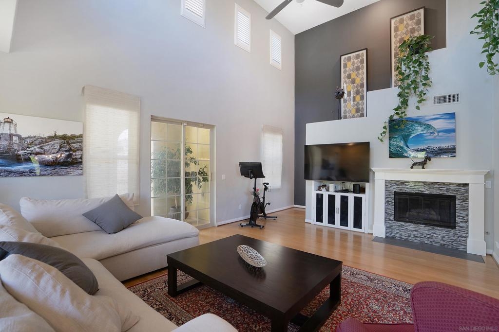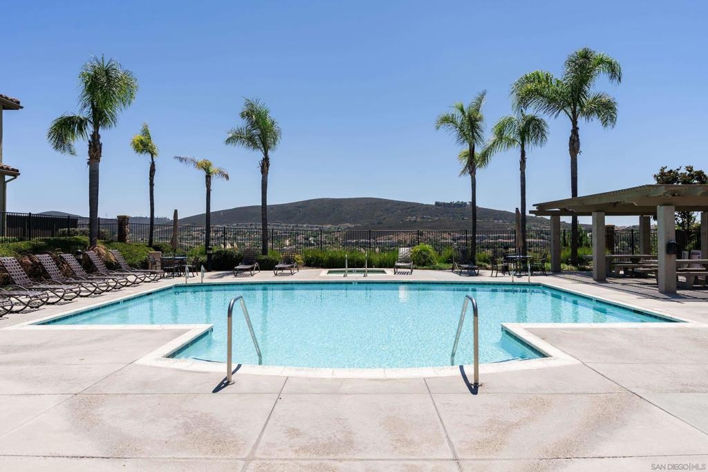 Nestled within the prestigious Larkspur Heights / Calico Bluffs Community, this captivating turnkey townhome offers a rare opportunity in the sought-after San Elijo Hills community, seamlessly between San Marcos and Carlsbad. This private end unit townhome presents a harmonious blend of elegance and practicality. The expansive open-concept living and dining area features 20 foot ceilings, creating a spacious ambiance perfect for both entertaining and relaxation. Retreat to the dedicated master bedroom on its own floor for the utmost privacy, while the first-floor guest bedroom with an accompanying full bath adds convenience. With breathtaking views from every room, including the kitchen, this unit stands as one of the most coveted due to its panoramic vistas, and walkability to the playground and resort style pool and amenities. The gourmet kitchen boasts granite countertops and stainless steel appliances, while the cozy gas fireplace and radiant natural light create a warm and inviting atmosphere. The two-car garage offers convenience, along with the existing workout space setup. Positioned within the thriving San Elijo Hills community, this townhome encapsulates the essence of suburban tranquility and urban connectivity, granting access to amenities, parks, and trails, and some of the TOP Rated schools in San Diego! Don't miss this chance to own a luxurious retreat that encapsulates comfort, convenience, and natural beauty. Experience it firsthand by scheduling a showing today.