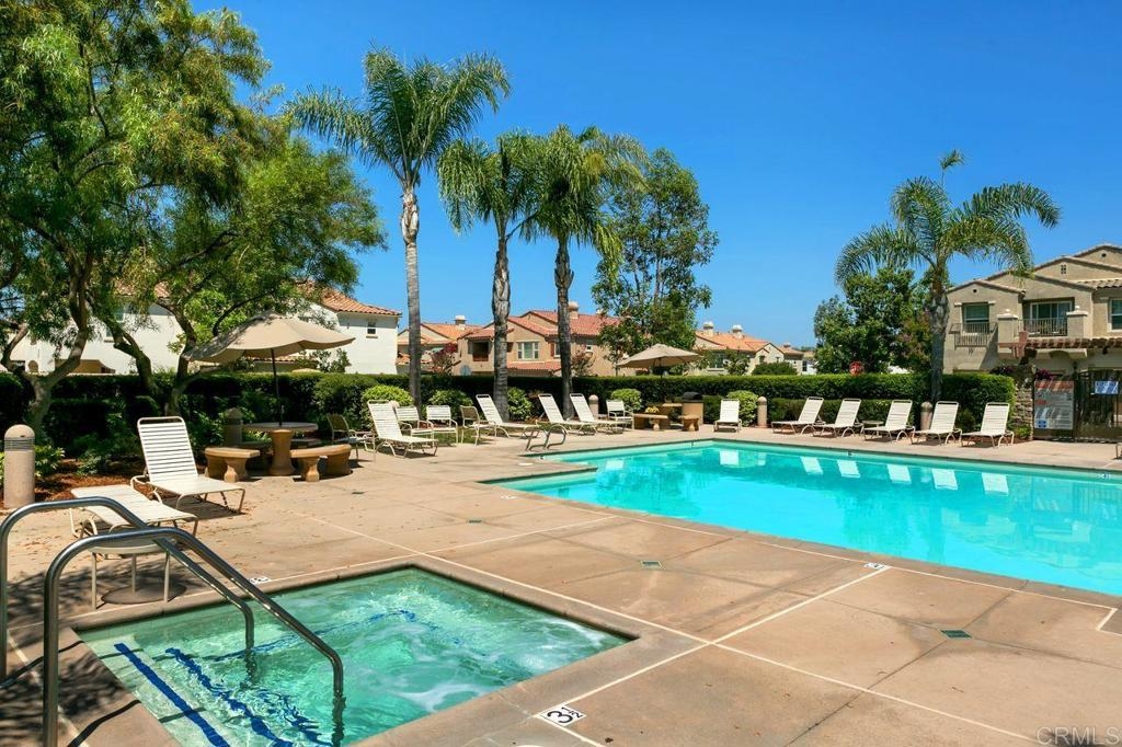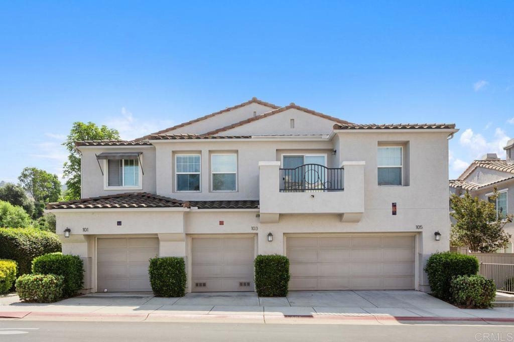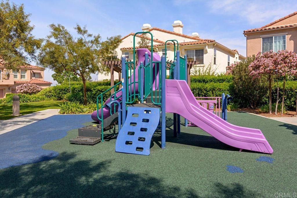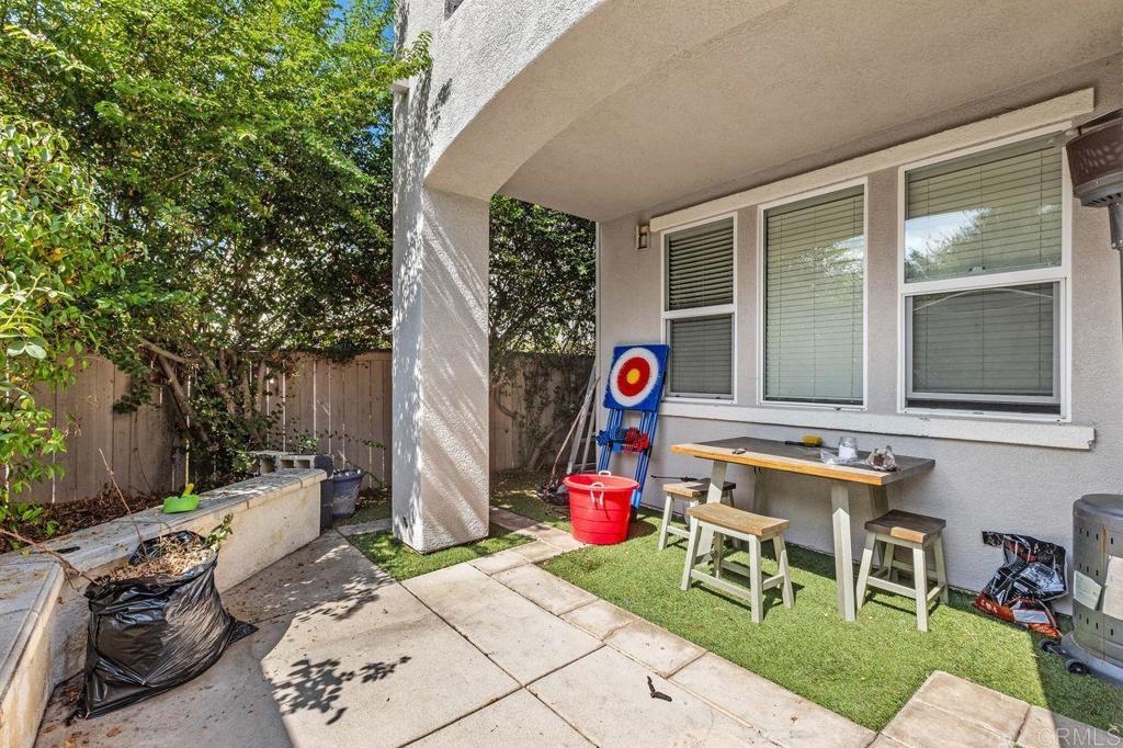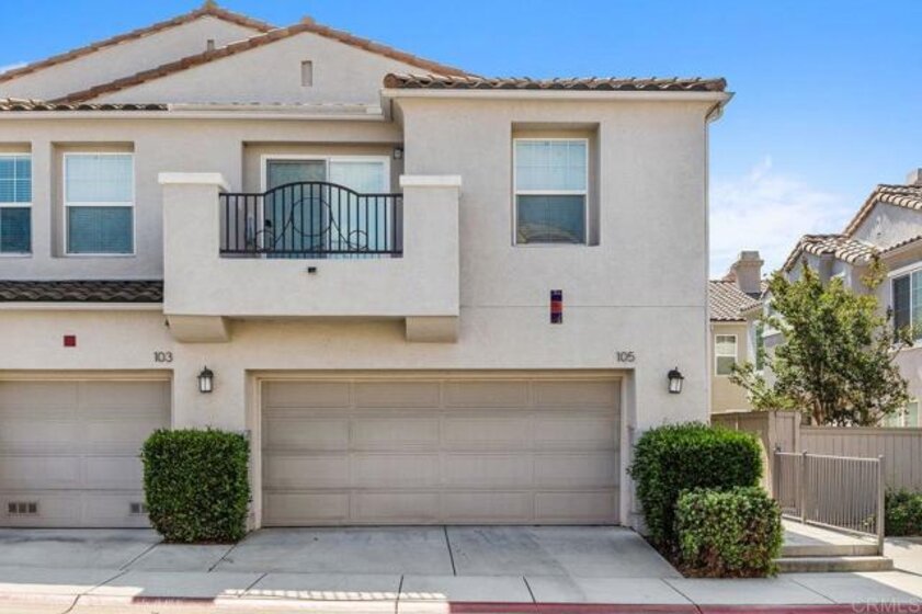 Welcome to the gated community of Campana, ideally located near Cal State San Marcos with easy access to shopping, restaurants, medical facilities, and business centers. This popular 3-bedroom plus den end-unit floor plan offers an open-concept great room layout downstairs. The kitchen opens to a spacious living room with fireplace and built-in entertainment center, while a separate den with built-in desk makes an excellent home office, study area, or hobby space. Range and dishwasher are new as of 2025, dishwasher replaced in 2022, Carpets replaced in 2024. Durable tile flooring runs throughout the main level. Upstairs, the primary suite includes a private balcony, walk-in closet, and ensuite bath. Two additional bedrooms share a full bathroom. The backyard is designed for low-maintenance enjoyment with artificial turf, built-in planters, plus no neighbors behind. Additional highlights include a two-car garage with epoxy floors and built-in storage, and laundry located in the garage. Community amenities feature a resort-style pool and spa, BBQ area, playgrounds, and gated security with ample guest parking. HOA fees also include trash and common area maintenance. With its desirable location, versatile floor plan, and strong rental demand in the area, this home also presents an excellent investment opportunity! Please do not disturb tenants.