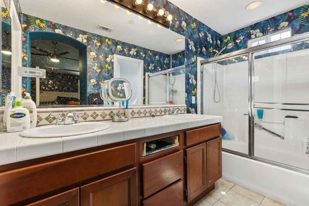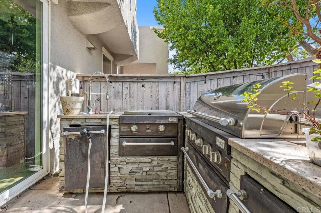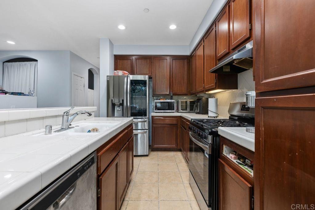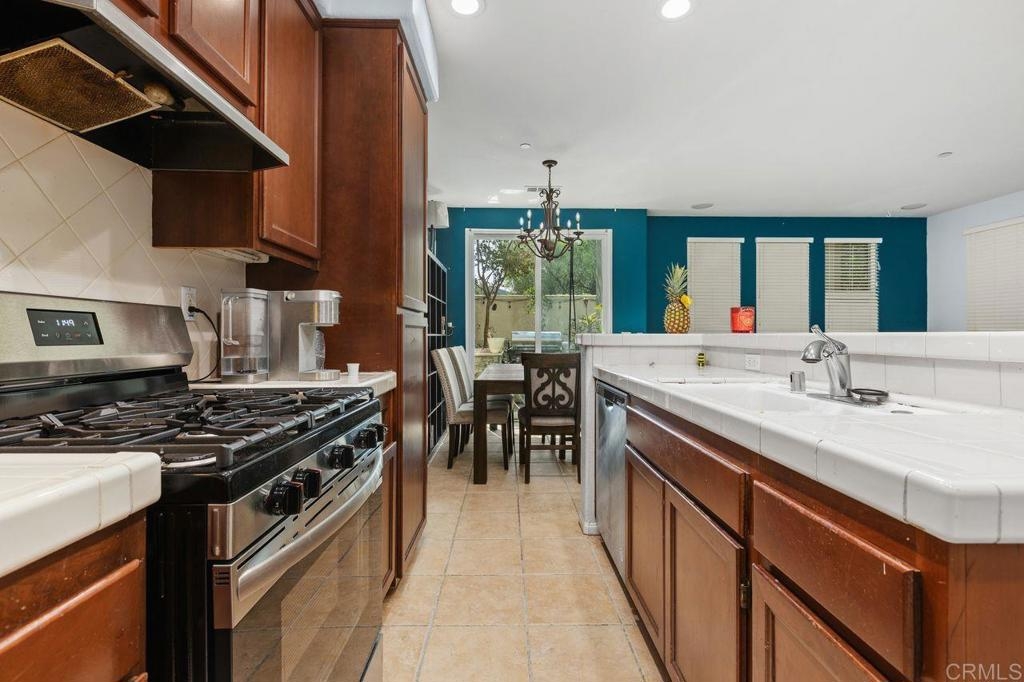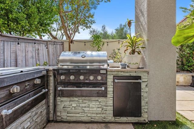 Welcome to the gated community of Campana, ideally located near Cal State San Marcos with easy access to shopping, restaurants, medical facilities, and business centers. This popular 3-bedroom plus den end-unit floor plan offers an open-concept great room layout downstairs. The kitchen opens to a spacious living room with fireplace and built-in entertainment center, while a separate den with built-in desk makes an excellent home office, study area, or hobby space. Range and dishwasher are new as of 2025, dishwasher replaced in 2022, Carpets replaced in 2024. Durable tile flooring runs throughout the main level. Upstairs, the primary suite includes a private balcony, walk-in closet, and ensuite bath. Two additional bedrooms share a full bathroom. The backyard is designed for low-maintenance enjoyment with artificial turf, built-in planters, plus no neighbors behind. Additional highlights include a two-car garage with epoxy floors and built-in storage, and laundry located in the garage. Community amenities feature a resort-style pool and spa, BBQ area, playgrounds, and gated security with ample guest parking. HOA fees also include trash and common area maintenance. With its desirable location, versatile floor plan, and strong rental demand in the area, this home also presents an excellent investment opportunity! Please do not disturb tenants.