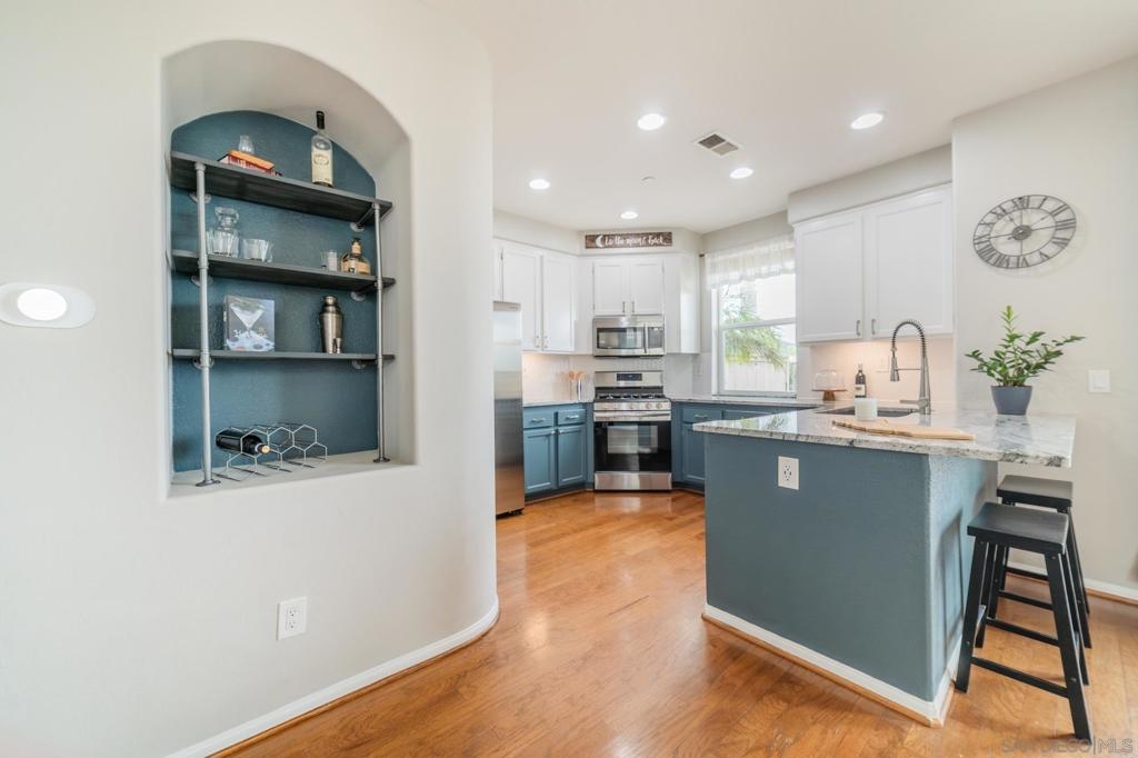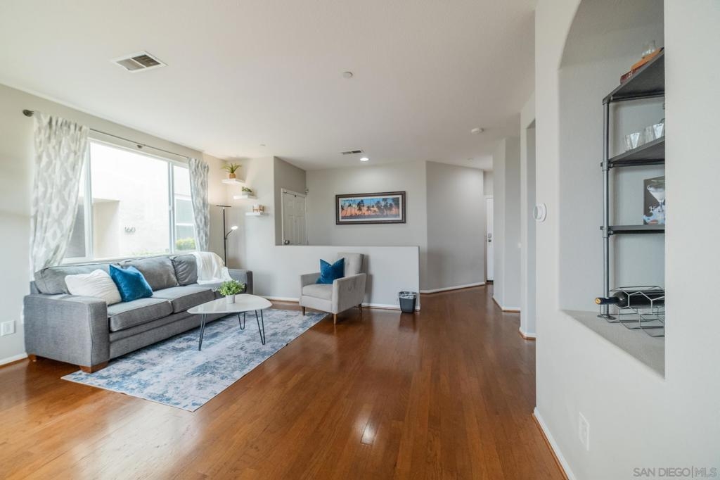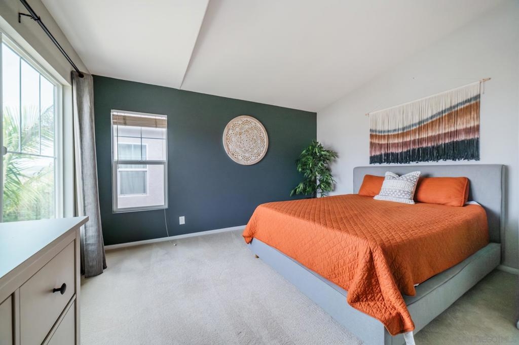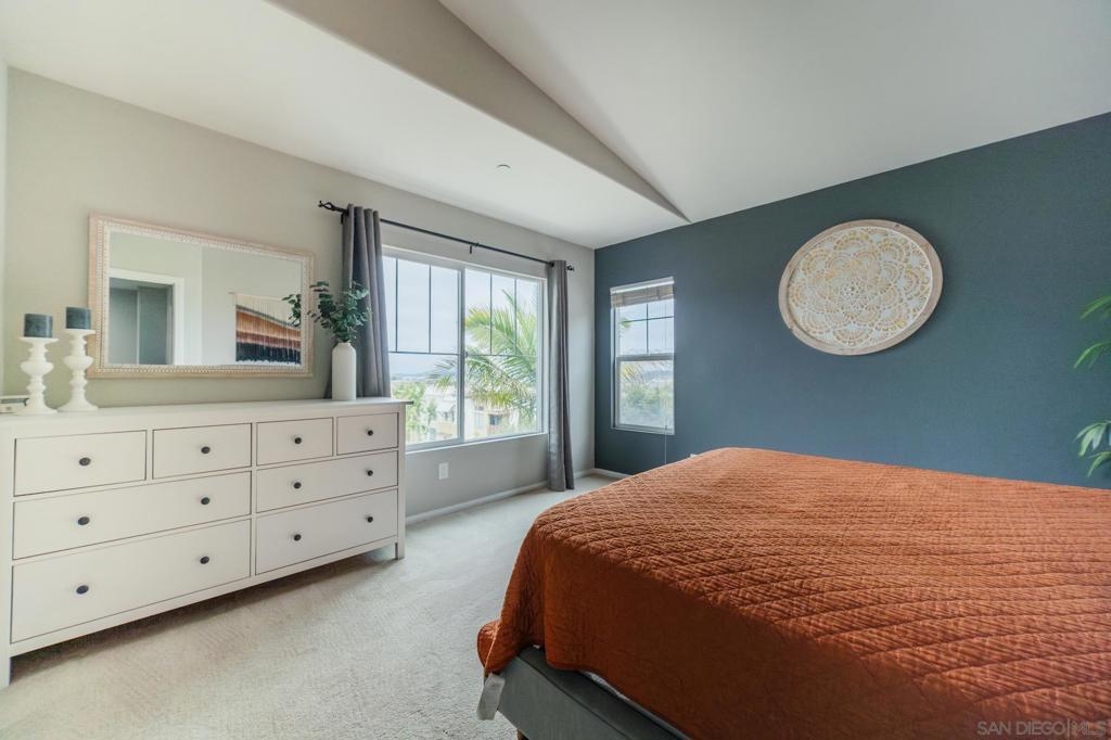 Welcome to Campaña at Rancho Coronado - San Marcos living at its finest! This turn-key 2-bedroom, 2.5-bathroom townhome is tucked within a beautifully maintained gated community and offers the perfect balance of privacy, comfort, and convenience. Step into a light-filled open-concept floor plan featuring an open concept living area, a spacious living room that flows seamlessly into the dining area and updated kitchen with gas range — ideal for entertaining. Outside you'll find a private, low-maintenance backyard with pavers - and no rear units, so you can enjoy morning or evening views un-obstructed. Your elevated patio deck is west-facing, with scenic hillside views and birdsong. Upstairs, you'll find two generous en-suite bedrooms, including a spacious primary suite with tall ceilings, a walk-in closet, dual sinks, and a shower with a tub. A versatile loft area between the bedrooms is perfect for a home office or reading nook. Additional features include an attached one-car garage with direct access, an assigned parking space just steps from your garage door, and full-size washer and dryer. Campaña offers resort-style amenities: sparkling pool and spa, playground, lush greenbelts, and walking trails adjacent to the complex that go around the community. Enjoy easy access to Cal State San Marcos, shopping, dining, coffee shops, schools, freeways, and you're just 11 miles from the beach.