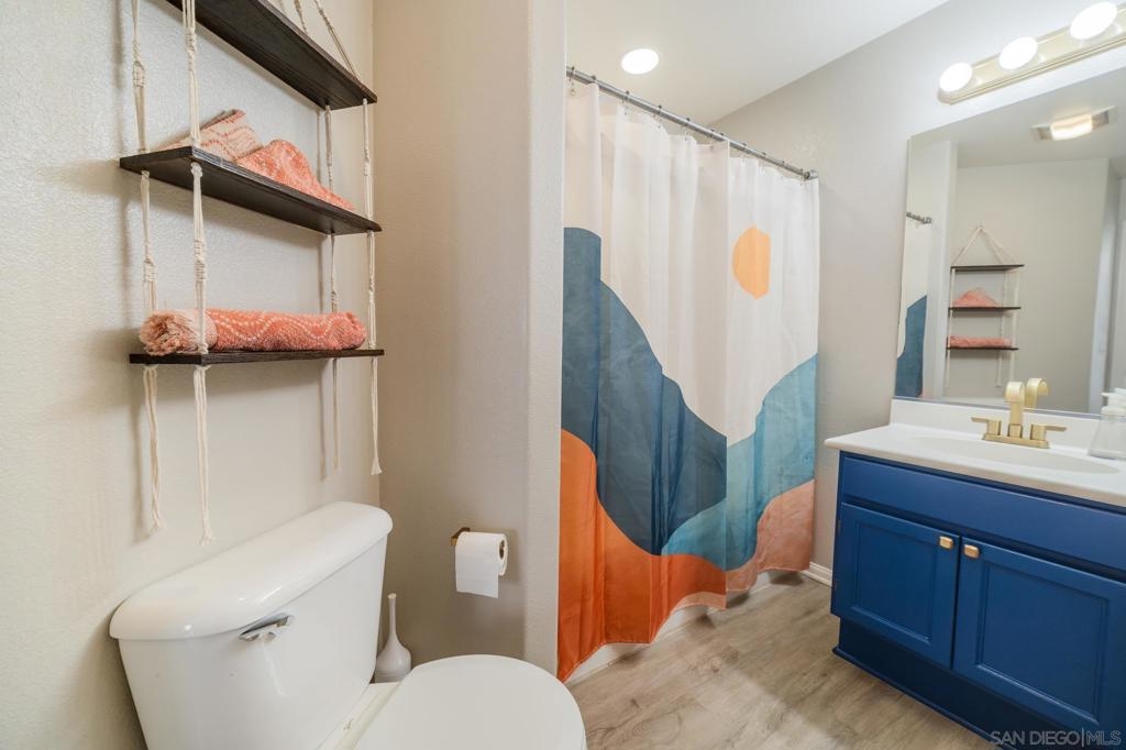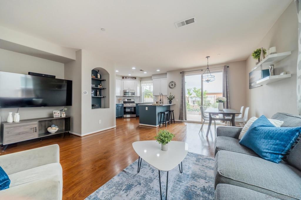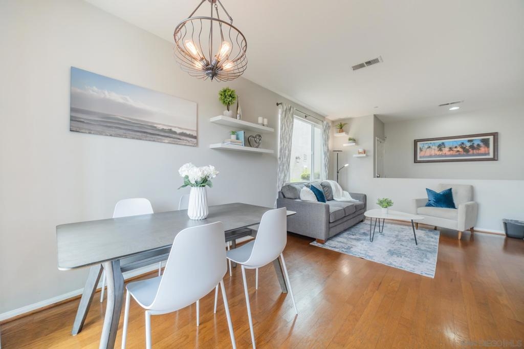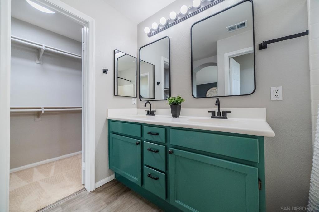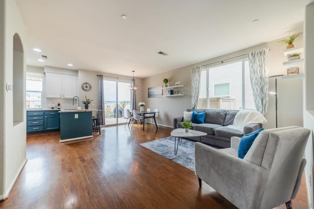 Welcome to Campaña at Rancho Coronado - San Marcos living at its finest! This turn-key 2-bedroom, 2.5-bathroom townhome is tucked within a beautifully maintained gated community and offers the perfect balance of privacy, comfort, and convenience. Step into a light-filled open-concept floor plan featuring an open concept living area, a spacious living room that flows seamlessly into the dining area and updated kitchen with gas range — ideal for entertaining. Outside you'll find a private, low-maintenance backyard with pavers - and no rear units, so you can enjoy morning or evening views un-obstructed. Your elevated patio deck is west-facing, with scenic hillside views and birdsong. Upstairs, you'll find two generous en-suite bedrooms, including a spacious primary suite with tall ceilings, a walk-in closet, dual sinks, and a shower with a tub. A versatile loft area between the bedrooms is perfect for a home office or reading nook. Additional features include an attached one-car garage with direct access, an assigned parking space just steps from your garage door, and full-size washer and dryer. Campaña offers resort-style amenities: sparkling pool and spa, playground, lush greenbelts, and walking trails adjacent to the complex that go around the community. Enjoy easy access to Cal State San Marcos, shopping, dining, coffee shops, schools, freeways, and you're just 11 miles from the beach.