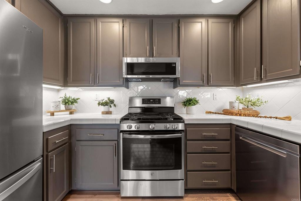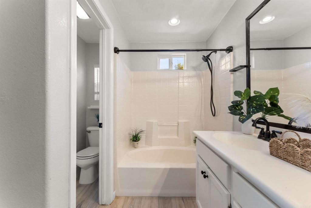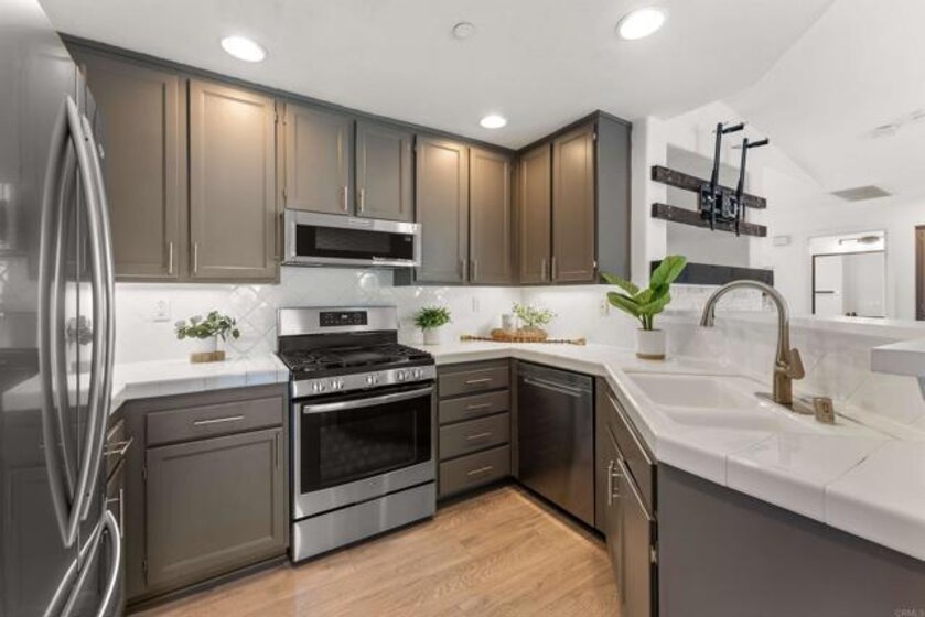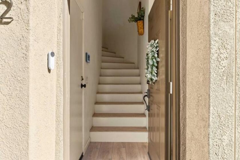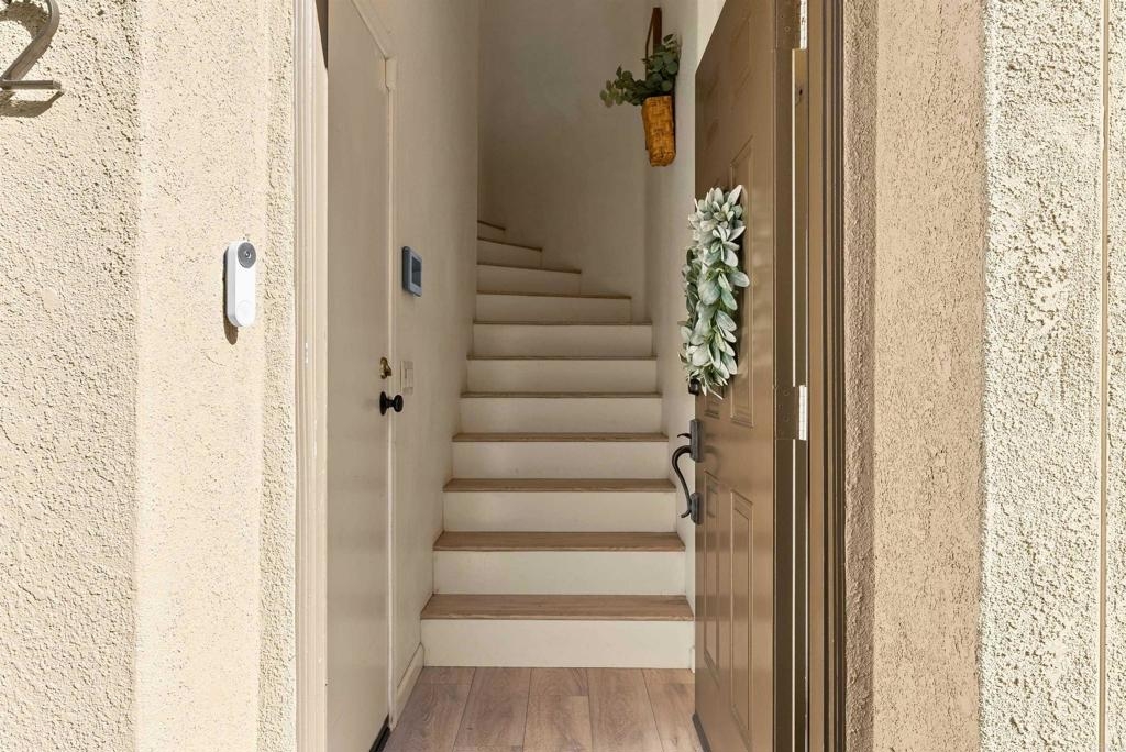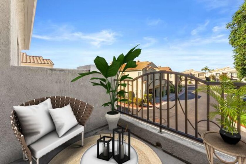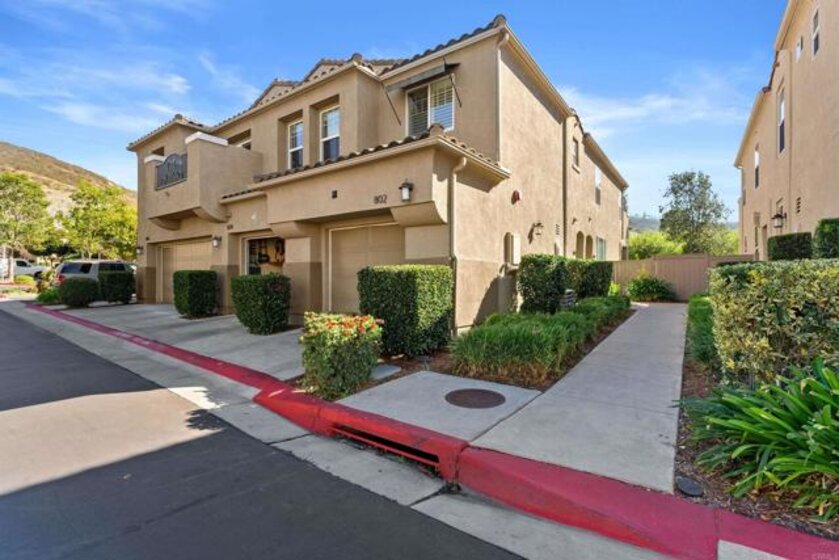 Lives like a SINGLE STORY! Beautifully updated and move-in ready, this end-unit townhome showcases sunset skies and peek-a-boo ocean views from its private balcony. Nestled in the sought after "upper section" of the gated community of Campana with easy access to playground and all of the amazing amenities of the lively San Marcos. Inside, you’ll find a bright open floor plan enhanced with modern LED lighting, designer fixtures, upgraded faucets, and custom closet shelving. Additional highlights include a whole-house water softener and filtration system, direct-drive garage door opener with storage, new furnace valve, new AC capacitor, and a freshly flushed water heater. The primary suite offers generous space, complete with a walk-in closet and a private bathroom. HOA amenities includes community pool, spa, BBQ area, playground, and covers trash and exterior. Ideally located in the thriving San Marcos and nestled near Cal State University, parklike community areas, hiking trails, dining, hospitals, as well as convenient access to freeways, shopping, entertainment, and more. This home blends comfort, function, and views all in one!