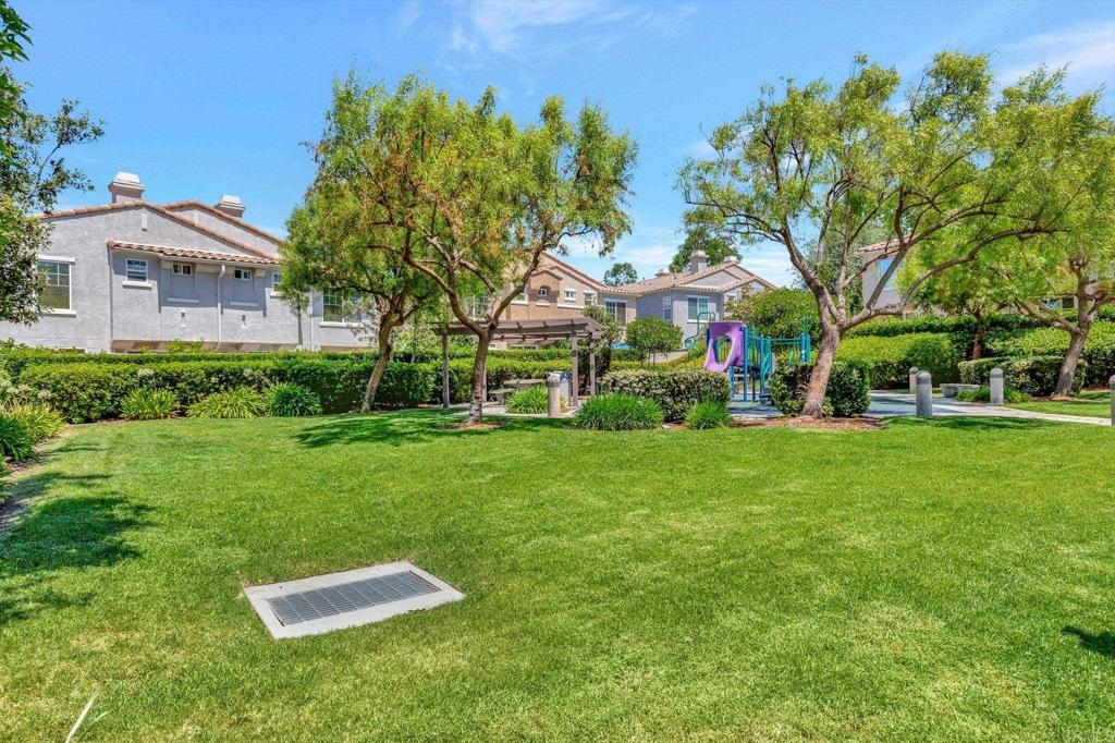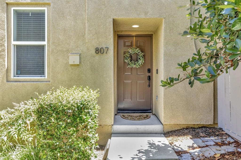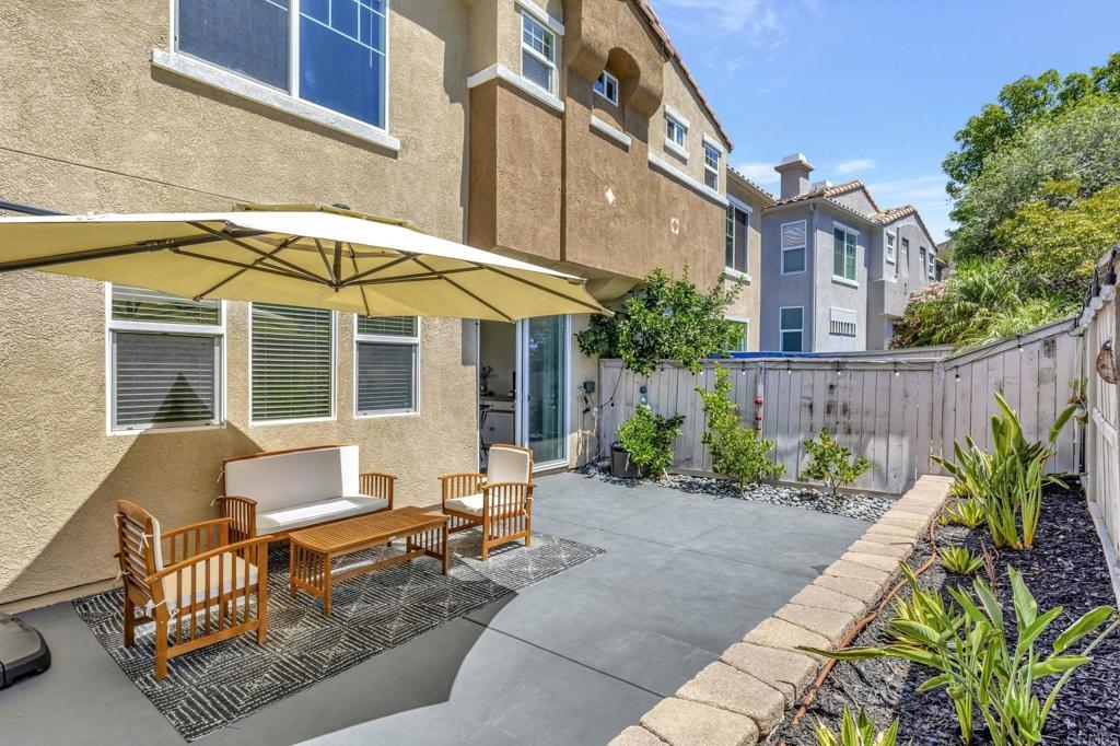 Experience the best of San Marcos living in this beautifully maintained townhome, the largest model within the gated community of Campana at Rancho Coronado. Offering 1459 SqFt, 3 bedrooms, 2.5 baths, plus an office/bonus space, this private end-unit home enjoys mountain views and exceptional privacy inside and out, with no neighbors behind. The open-concept main level features engineered wood floors, a remodeled kitchen with stainless steel appliances, and a large island with quartz countertops, a spacious living room, and a dining room with sliding doors that open to a sunny private backyard patio — perfect for outdoor living and entertaining. Three bedrooms can be found upstairs, including the sun-drenched primary suite with vaulted ceilings, a walk-in closet and a spacious en-suite bathroom. Two secondary bedrooms share a full bath in the hallway as well. Additional highlights include a flexible office/den on the main level, a half-bath/powder room, and an attached 2-car garage with side-by-side laundry. Additionally, the VA-approved Campana complex offers a heated pool and spa, two playgrounds, a dog park, guest parking, and access to scenic hiking trails. Offering a coveted location on the quiet side of this gated community and close proximity to CSU San Marcos, shopping, dining, highly-rated schools, and major freeways, this home presents exceptional value whether you’re looking for a primary residence or an investment opportunity.