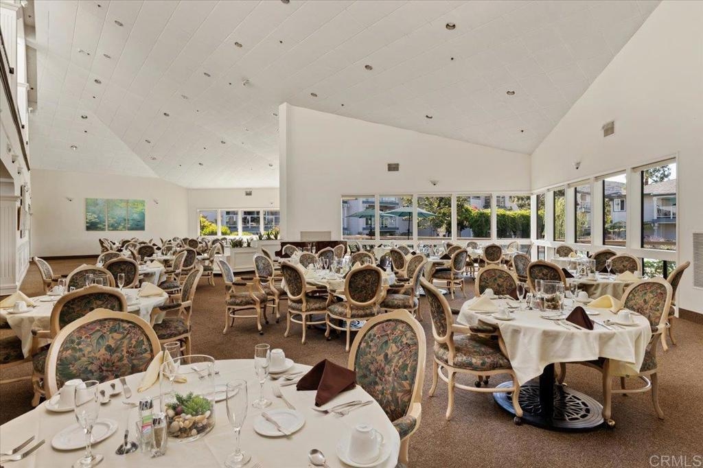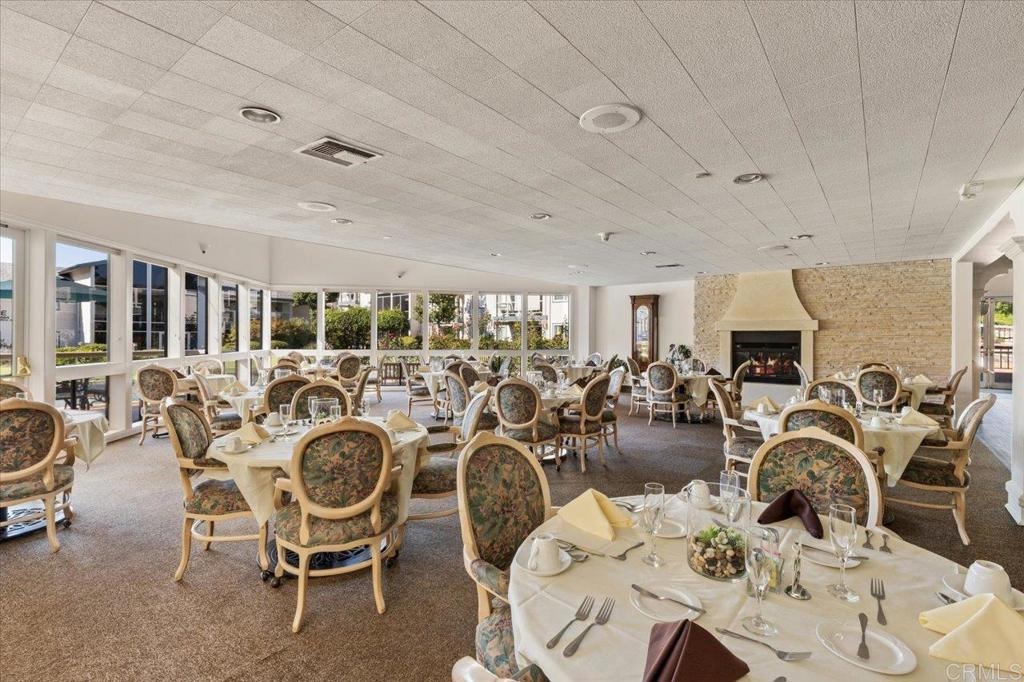 Chateau Lake San Marcos 55+ Independent Living Community. This beautiful 1/1 condo has an excellent 2nd floor location close to elevator, laundry, and lap pool and dining. Premier South facing views from your living room, bedroom and private balcony. Overlooking the water features, the lush courtyard, trees with views to our east and west. Sounds of the water soothes. Night views of the mountains, hillside and lights. Chateau is nestled in the community of Lake San Marcos. Best microclimate. The condo has newer low pile carpeting, neutral paint, hunter douglas blinds, walk in shower with shower doors. Primary bedroom has beautiful views and patio door opening to your balcony. Interior has open floor plan with galley kitchen all black appliances, dinette area with ceiling light and fan. Opens to your living space with gas fireplace. Sliding door to balcony with a storage closet. Chateau has a fully fenced heated lap pool with jacuzzi, ADA compliant features for physical disabilities. Library, fitness center, card room plus more. Residents are also a member of Lake and Lodge amenities which includes: lakefront access, marina, restaurants, adult pool, family pool, tennis, pickleball, paddle tennis, billiards plus many clubs to join. Your Monthly HOA fee of $2554.00 is for 1 resident which includes 30 meal credit plan per month, (not meal totol), bimonthly house keeping, linen service, transportation, 24 hour security, basic cable, water, trash, gas heat and concierge service. Two golf courses for extra fee and enjoyment. Walk to our 5 restaurants. Assigned covered carport with storage close to building. Chateau is a smoke free campus. Pets with restrictions and secret pet park within Chateau. For questions or a tour please call. Minutes to shopping and restaurants.