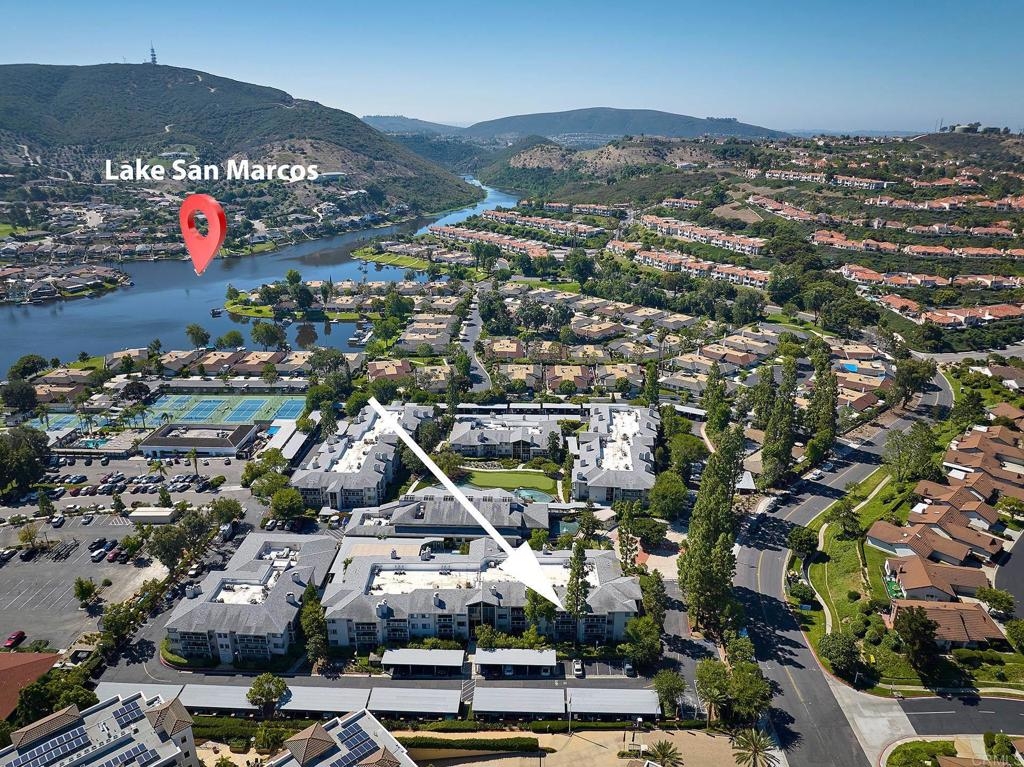 Welcome to Chateau Lake San Marcos, a resort style senior living community! This condo was originally a 2 bedroom converted to a large 1 bedroom plus a den with spacious living room. New A/C unit just installed! Brand new carpet and paint w/ recently remodeled kitchen area. Highly sought after 3rd floor location with cathedral ceilings. Walk-in closet, separate office or den with built-ins and a mini-refrigerator. HOA laundry plus private laundry area to avoid trips to the community laundry room. Steps away from the gourmet dining room, swimming pool & spa, billiard room, putting green and library. HOA, non-smoking, active adult age-restricted (55+) community, independent living. Monthly assessment- $2,927 single occupancy or $3,764 double occupancy. Services covered in monthly assessment include one meal per day in gourmet dining room (credit system; credits roll-over if unused), housekeeping service every other week, professional laundering of linens, free scheduled transportation and much more! Plus other HOA amenities including water, trash, gas, grounds maintenance and landscaping, access to onsite maintenance, custodial and housekeeping, insurance on the common areas etc. Chateau at Lake San Marcos is nestled within an exceptional setting surrounded by hills and mountains along a mile and a half long lake view. Access to all walking paths in Lake San Marcos, tennis & paddle/pickleball courts. This is an exceptional opportunity to experience the comforts of home with the convenience and community you or a loved-one may need.