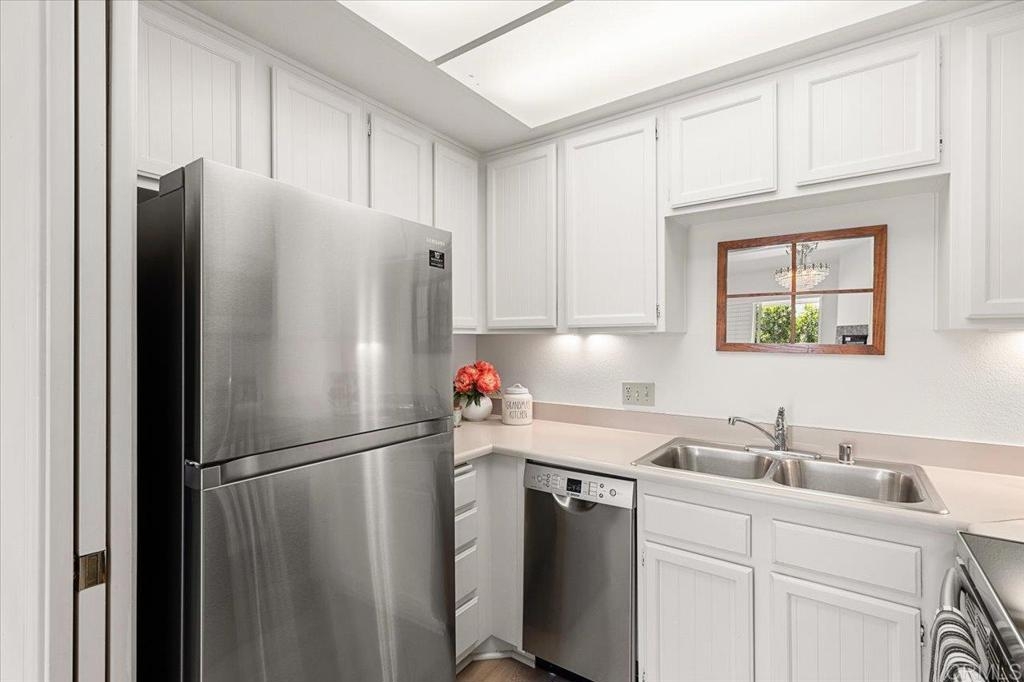Senior independent/retirement living at it's best! Highly desirable third (top) floor corner location with vaulted ceilings and your own laundry. Enjoy sitting on either of your two balconies with one overlooking the entry fountains and panoramic views. Newer flooring (LVP + carpets in bedrooms), plantation shutters, kitchen appliances. Chateau Lake San Marcos is a must see if you're looking for exceptional services, profession/caring staff, beautifully maintained grounds and gourmet meal dining. Monthly fee (for one resident) includes: one meal credit per day, all inclusive transportation, biweekly housekeeping, linen service, water, trash, free scheduled transportation, concierge assistance, and access to all Lake San Marcos Community Association clubs, events and activities. Monthly $2,855.75 HOA Fee is based upon single occupancy. Double occupancy would be $3,642.50 per month. Participate in coordinated activities and the resident controlled homeowners association as you want. Nearby Lake San Marcos Community Center activities and amenities are also available. Complex is gated and has nighttime security. Other community amenities include: dog park, lap pool/spa (heated year round), large covered patio area for gatherings, fitness center, library, computers with internet access and fireplace lounge in the entry to the recently remodeled community center. Events are published monthly or you can tune into the Chateau's own cable television station. Come visit CLSM if you're looking for a great place to live, wonderful neighbors, fun activities in a well maintained, beautiful community. Come and see for yourself what Lake San Marcos has to offer - several local restaurants within walking distance, two golf courses and a walking path along the lake.