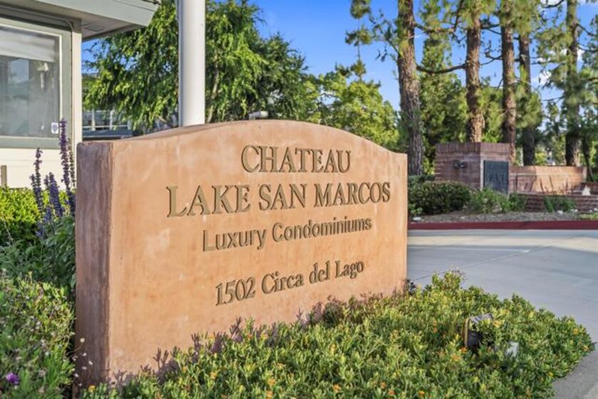 Price Reduced $24K, Recent remodel. A rare opportunity to own this stylishly, remodeled two bedroom condo (A Murphy Bed makes for versatility in one bedroom) and two bathrooms in an over 55 plus gated community in desirable Lake San Marcos. There are rare benefits offered included in the HOA. Regularly scheduled transportation to nearby grocery stores, transportation to special events. A pristine pool and aerobics classes and hot tub. A full guide to Chateau residency will be provided to a potential buyer. Recent renovations: A brand, new, easy care ash composite flooring through out. A high end kitchen featuring new, premium quartz countertops and a new luxury brand, compressed quartz sink and designer faucet. Brand new GE stove and Microwave. Bathrooms include premium countertops, new sinks and newly installed mirrors. Cable TV and WiFi service provided, Library, Exercise classes. Walk to Lake San Marcos, Housekeeping and Laundry, Fitness Room and Beauty Salon. Hot water boiler supplies hot water from HOA, no hot water heater needed.