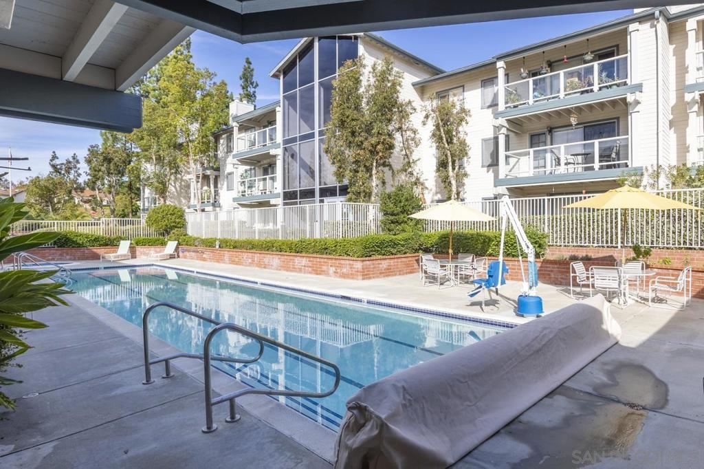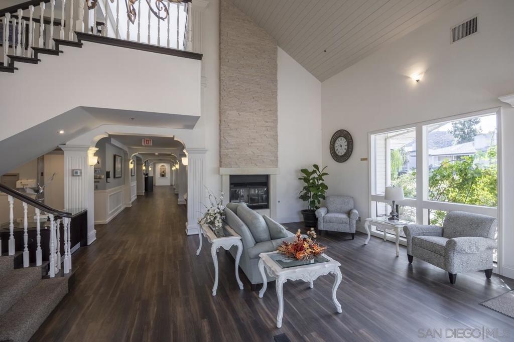Location! Location! Location! Welcome to Chateau Lake San Marcos, a premier senior living community. This stunning top floor, remodeled floorplan features vaulted ceilings and a large patio offering breathtaking unobstructed views of the putting green, water features, and fountains. Upgrades include a remodeled kitchen, expanded bathroom with a large walk-in shower, laminate flooring, enlarged living room with built-in desk, and stone fireplace. The community is warm and welcoming, and designed for those aged 55+ who are looking for an active retirement lifestyle. Enjoy resort-style living with gourmet meals, bi-weekly housekeeping, linen service, concierge assistance, local transportation, heated pool/spa, library, computer center, and a lively event calendar. Homeowners also have access to Lake San Marcos Community Association clubs, events, and activities. The community also offers caring staff who will cater to your needs, ensuring you have everything you need to enjoy your retirement to the fullest The gated complex provides 24-hour security and amenities such as a dog park, fitness center, and more. Monthly fees include all-inclusive transportation, water, trash, and access to all community amenities. Come see why Chateau Lake San Marcos is an exceptional retirement community and the perfect place to call home.