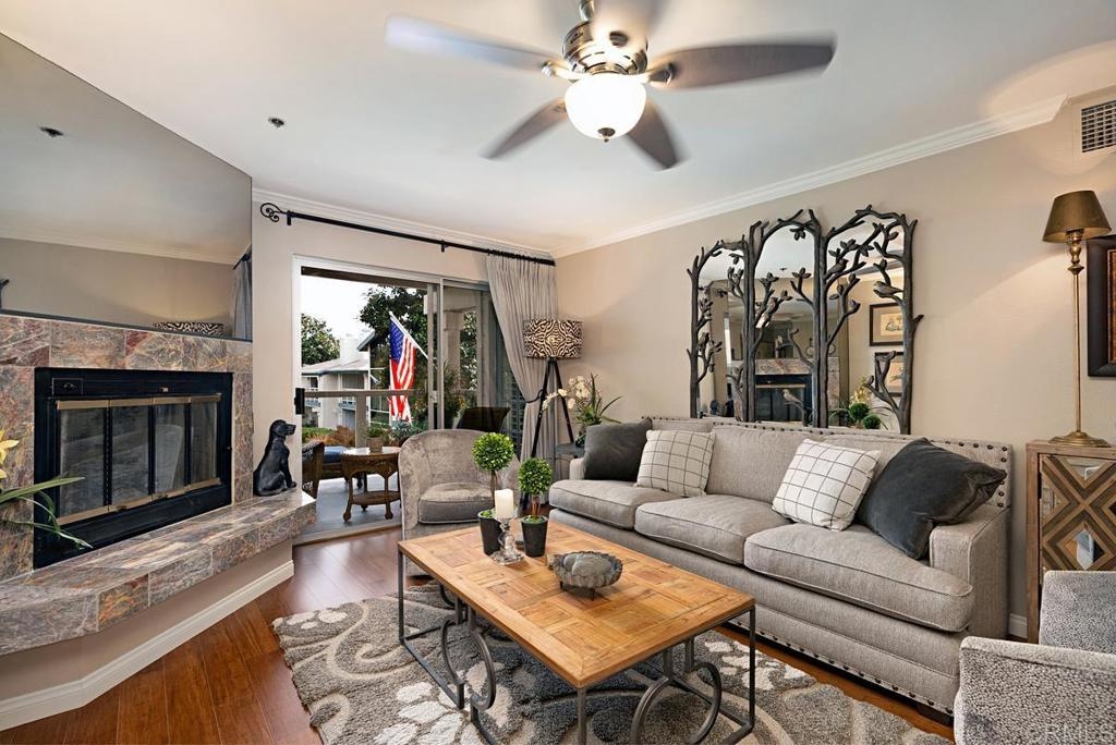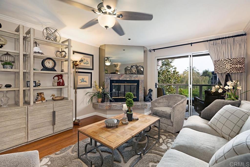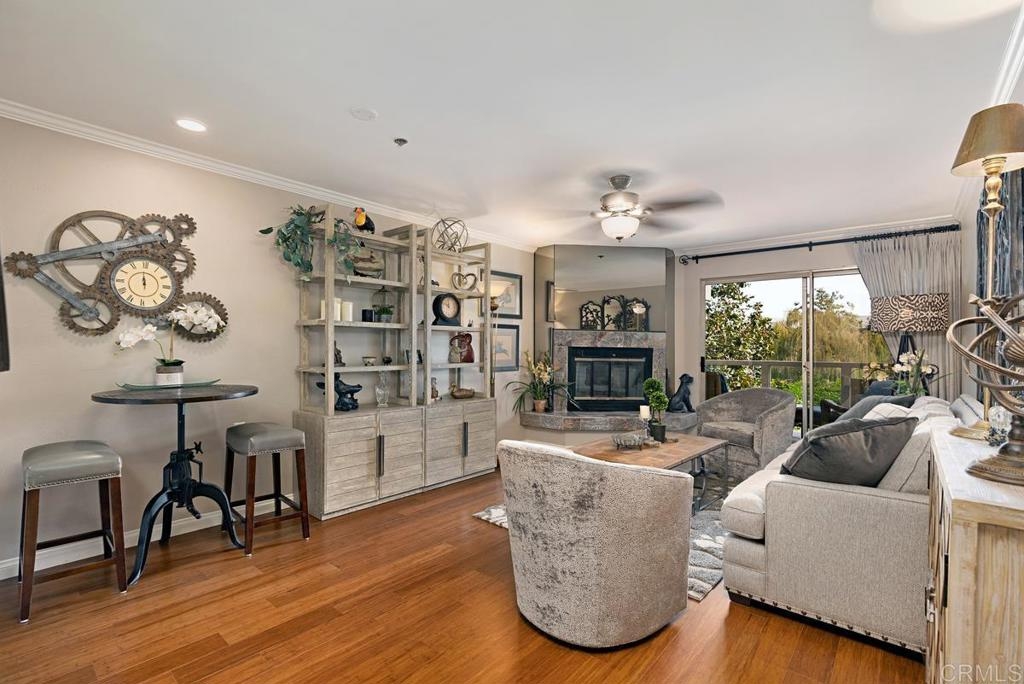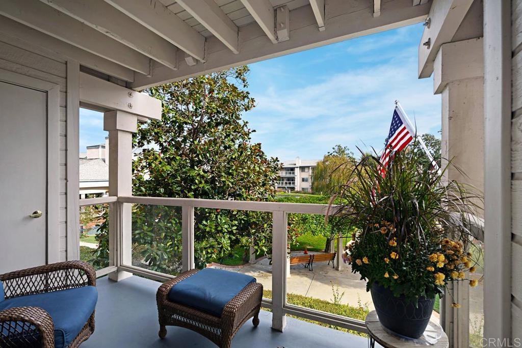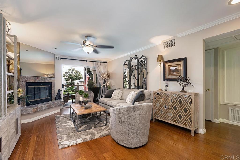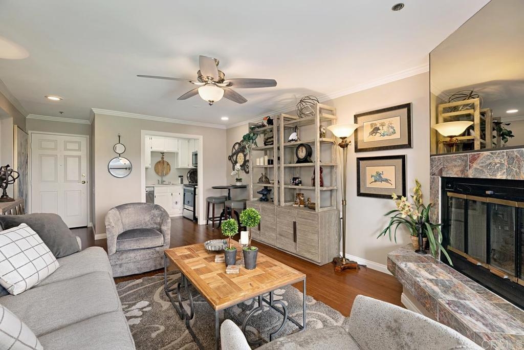 A rare find at Chateau Lake San Marcos! This freshly decorated beauty boasts serene views of the manicured grounds and pond w/water feature. Conveniently located close to the dining room, pool, exercise room and all other amenities that this popular resort-like senior community has to offer. Spacious living room offers beautiful laminate flooring, ceiling fan, a cozy fireplace, crown molding, and sliding doors that open to a covered balcony. Custom shutters have recently been installed on the window and door in the bedroom. Bathroom has a large shower and new comfort-height toilet. Included in The Chateau HOF are 30 gourmet meals per month, cable, bi-weekly housekeeping, scheduled transportation so much more!