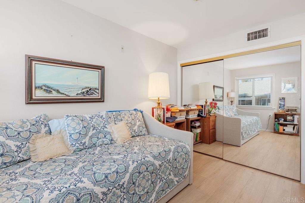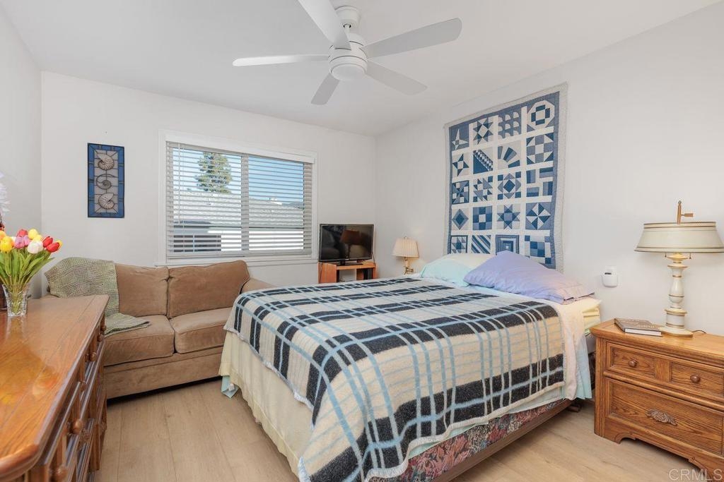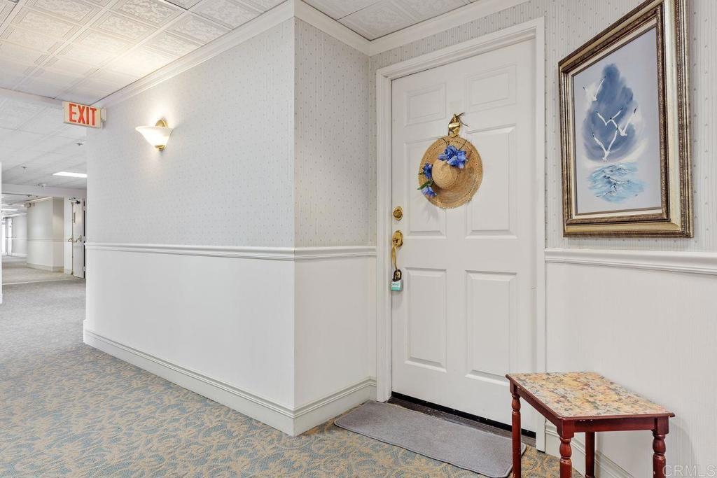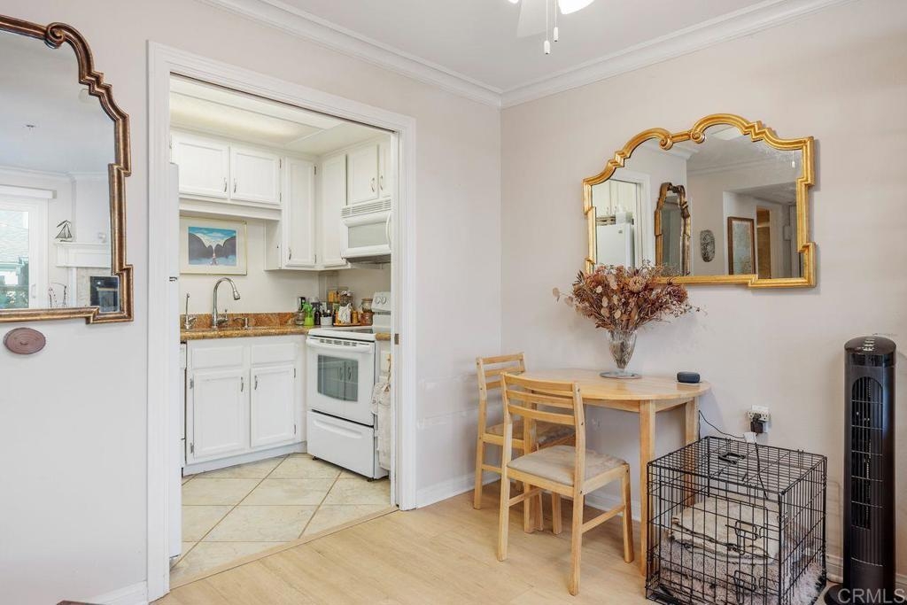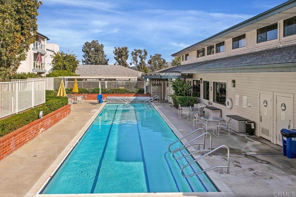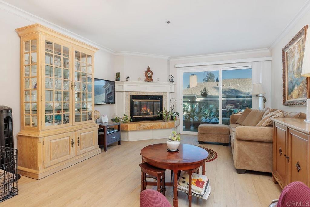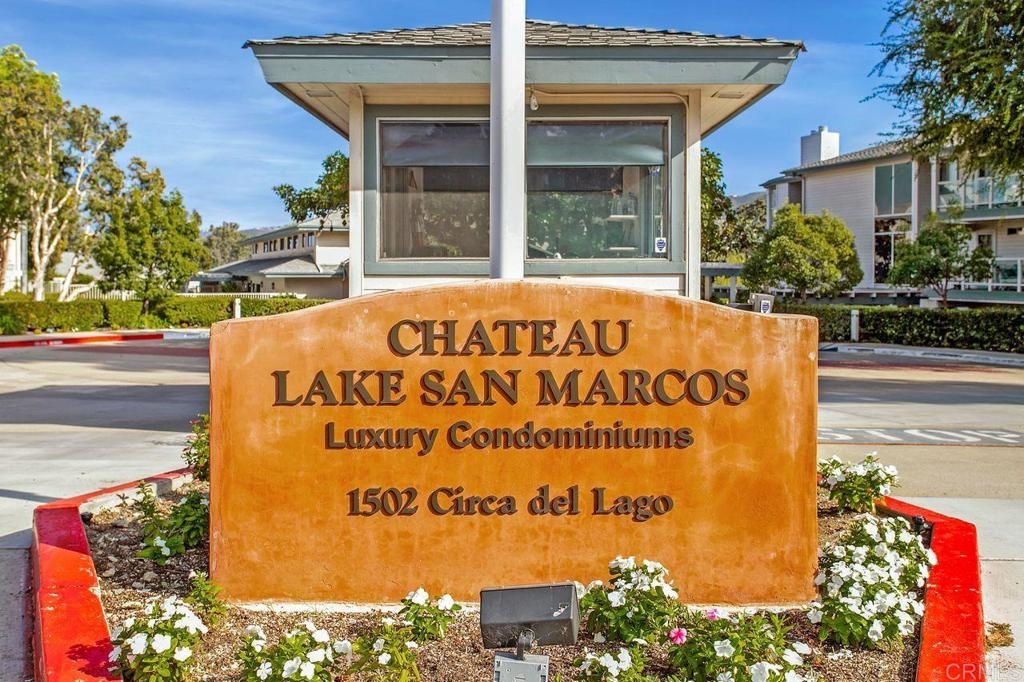 Welcome to Chateau Lake San Marcos, a resort-style senior living community! Located on the second level, Unit A207 boasts 2 bedrooms and 2 full baths, plus a balcony with views of the mountains! Updated with light oak laminate flooring, crown molding, newer windows and sliding glass door, and a neutral paint palette throughout. This interior-facing unit offers a primary bedroom with ceiling fan, a large walk-in closet, and one full bath with a tub and bidet. The second bedroom has a door to the balcony with exterior storage closet. The hall bath has been nicely updated with custom tile work, a walk in shower and newer fixtures. The kitchen has granite counters, white cabinetry, range, microwave, dishwasher, and fridge. The second floor location is conveniently close to laundry facilities and the elevator. Included in your HOA fee is one gourmet meal per day in the restaurant dining room or room service, bi-weekly housekeeping with linen services, emergency on-call systems in the home, hotel-style concierge service, community activities, clubs, transportation for shopping trips, medical appointments, and more! One designated, covered parking space with large storage cupboard, gas, water, sewer, trash, basic cable, and internet are all included! The Chateau offers independent resort-style living, including a large lap pool with a spa, fitness center, library, game rooms, lounges, and care center. Chateau residents also have access to the Lake San Marcos amenities including a recreation lodge, tennis, pickle, and paddle tennis courts, and two more swimming pools. The Lake San Marcos community has a Country Club championship golf course and an 18-hole public executive course.