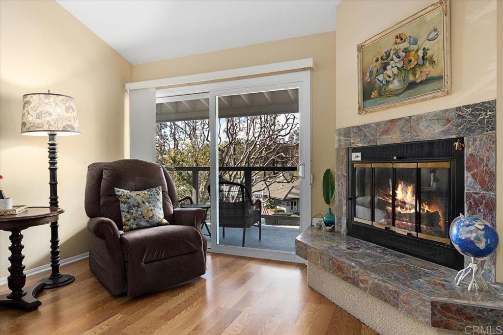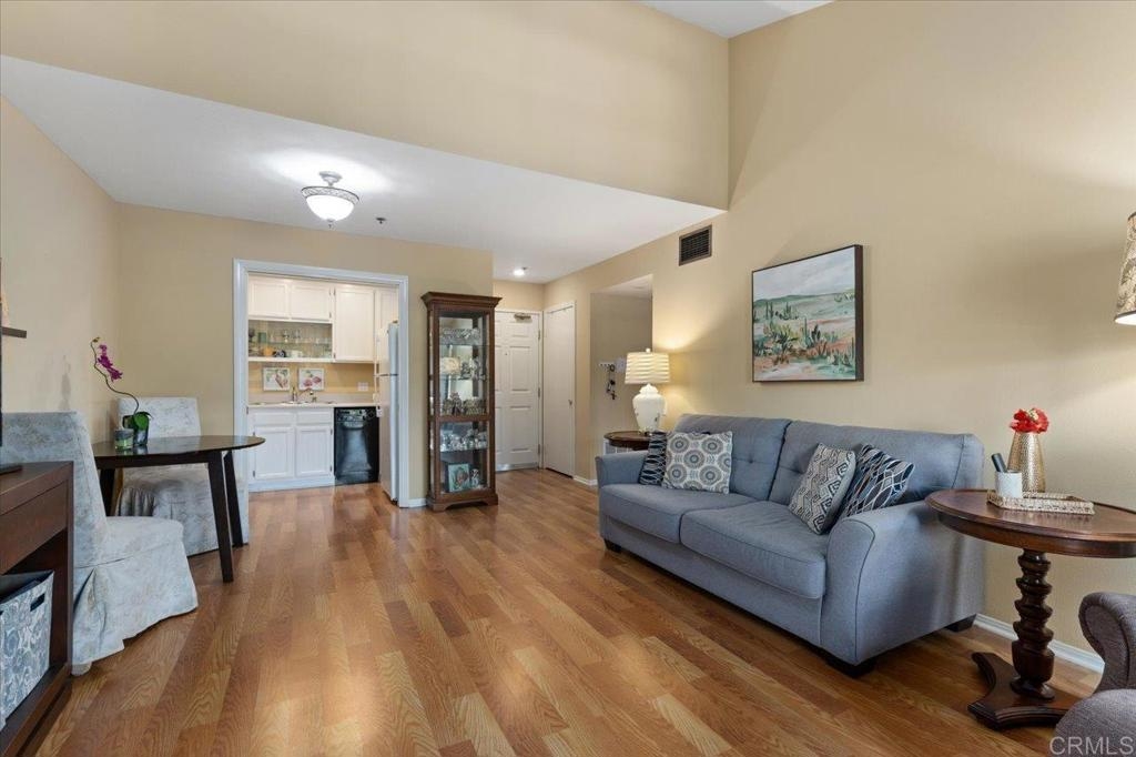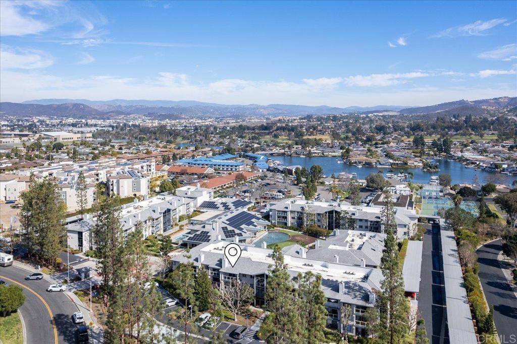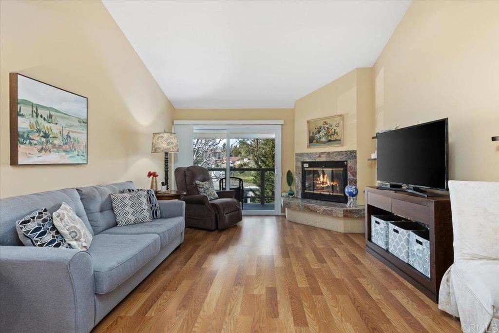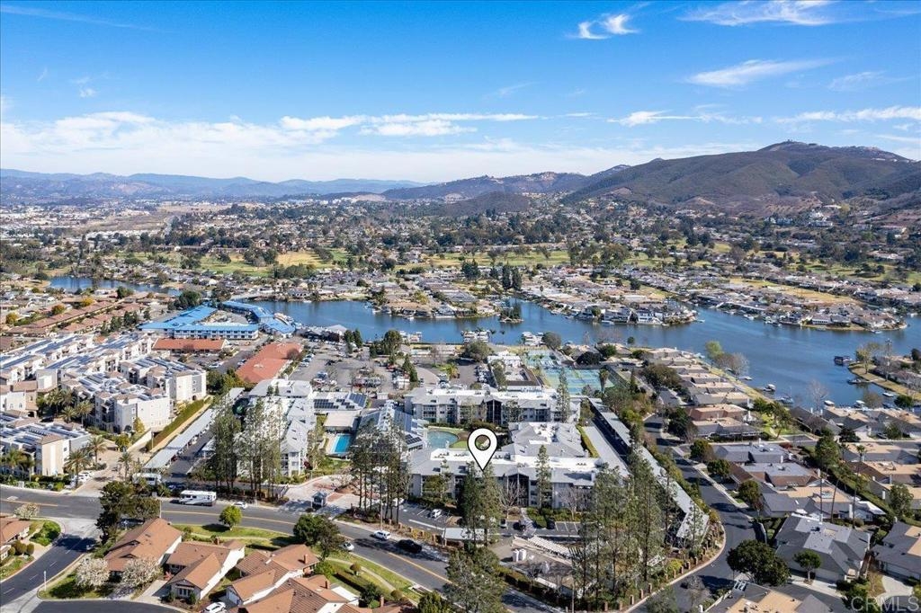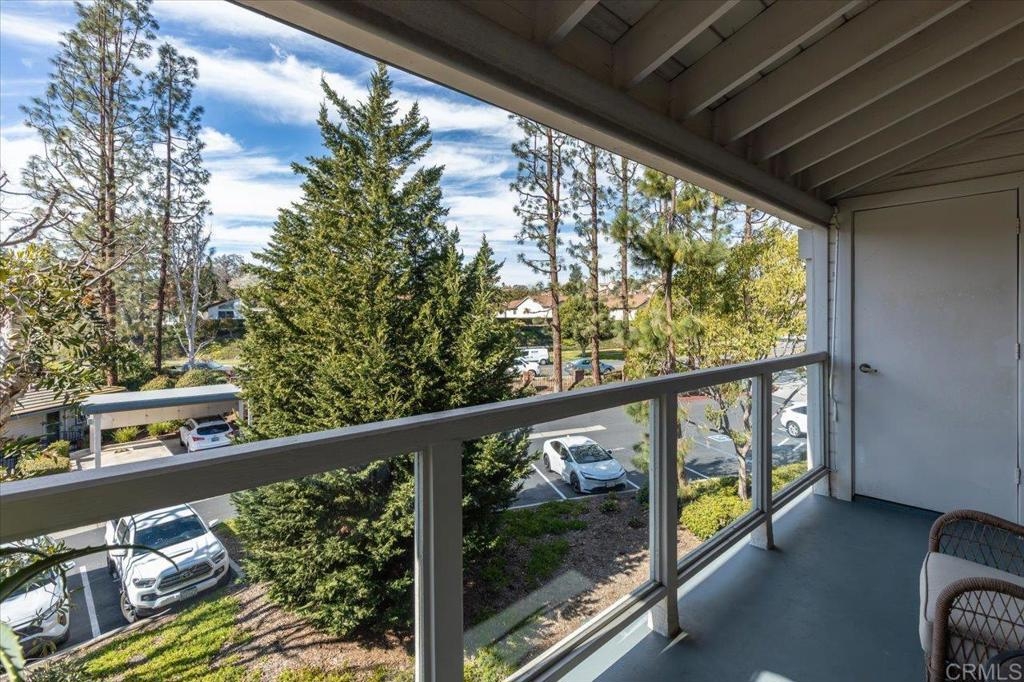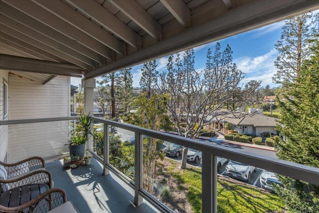Experience resort-style living in this beautifully maintained 2 bedroom-2 bath condo in a vibrant 55+ community. This top floor condo offers tranquil tree views from your personal balcony plus vaulted ceilings and skylights to capture the abundant light. Warm paint colors and stylish wood look laminate flooring. Newer refrigerator, microwave and stove. Energy efficient upgrades include a Nest thermostat, Upgraded Windows and patio slider door. Convenient hand railing in the hallway and along the primary bedroom wall. Hall bath has a walk-in shower. Primary bedroom has a spacious walk-in closet. Chateau offers fabulous gourmet dining with 30 monthly meal credits (60 for two people) concierge service, transportation for shopping, medical and outings, Onsite beauty salon, Bi-weekly housekeeping with linen service plus enjoy onsite events and activities. Gas, Water, Cable and Wifi included with HOA fee. Other property amenities include Year round Heated pool, spa, fitness center, dog park, putting green and library. Also included is membership to Lake San Marcos Lake and Lodge where you can enjoy walking paths, pickle ball, tennis, billiards and more. All of this in the area they call beautiful Lake San Marcos! An area known for its Waterfront Dining, Golf courses, Events and gorgeous environment. A perfect blend of relaxation and convenience.
