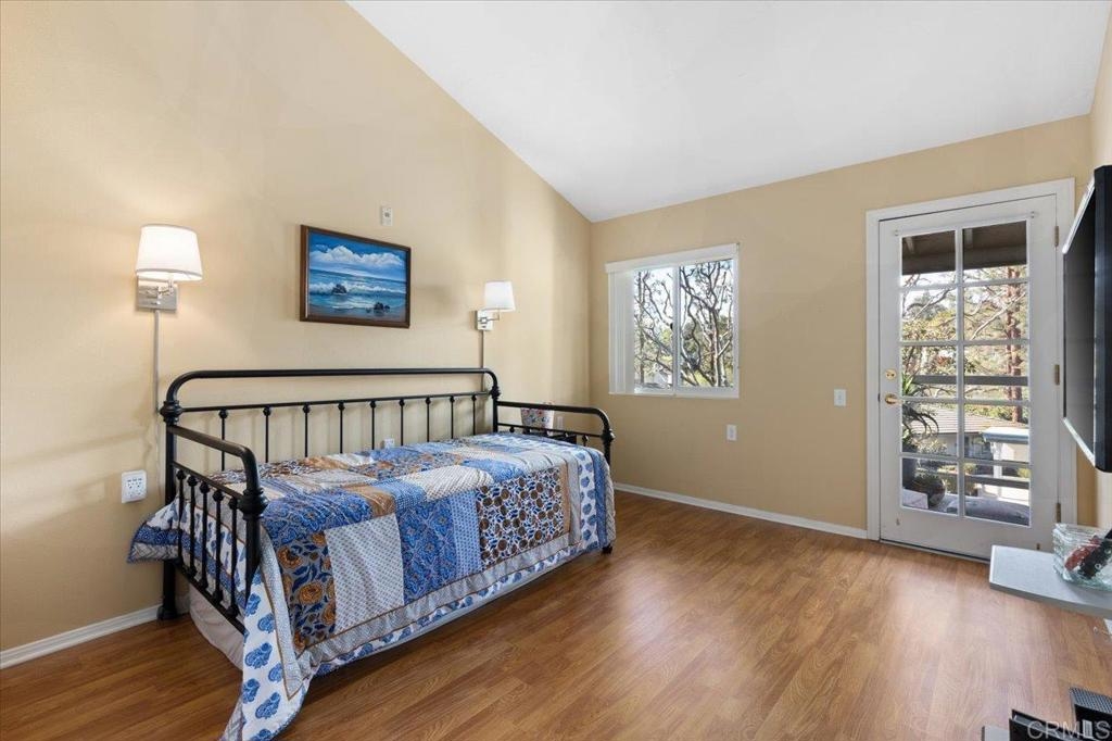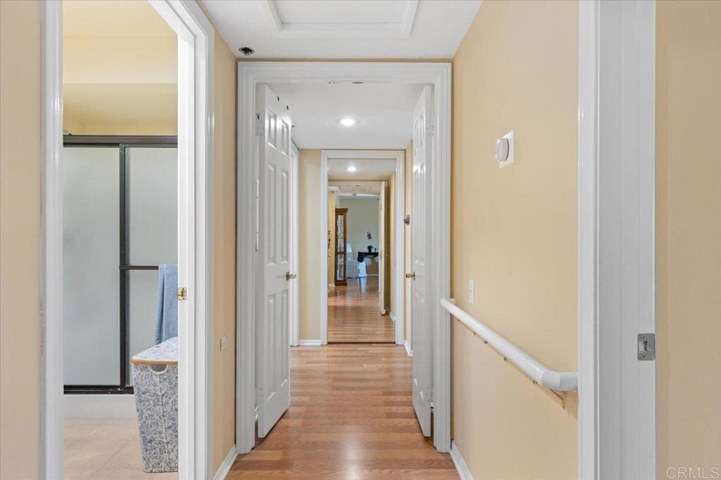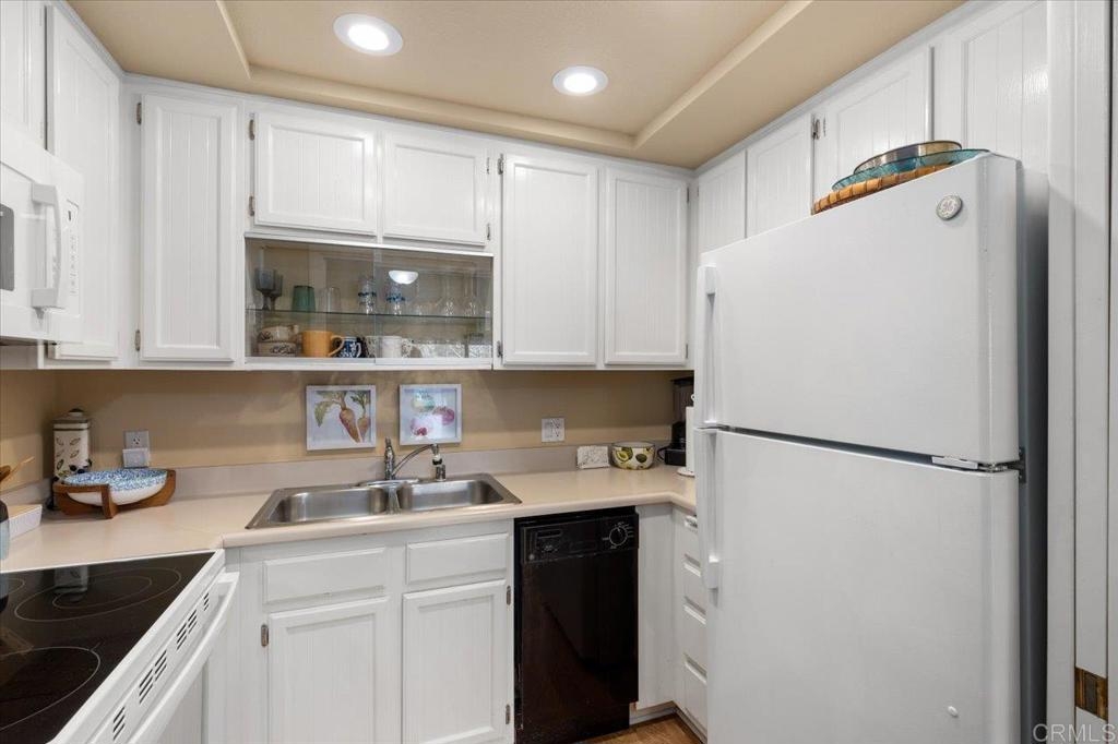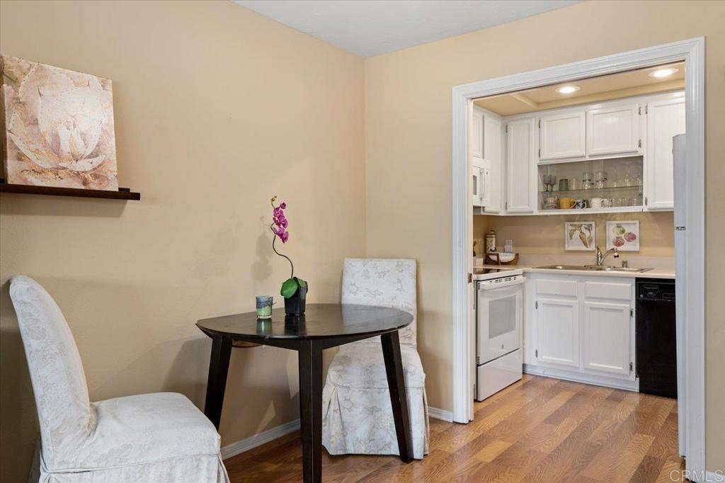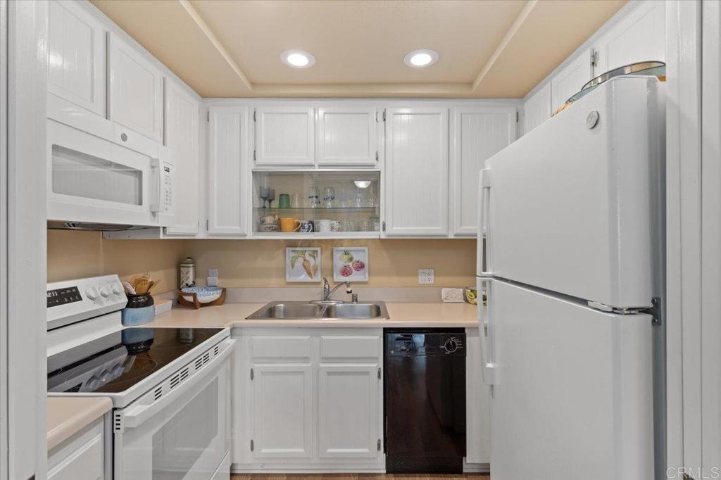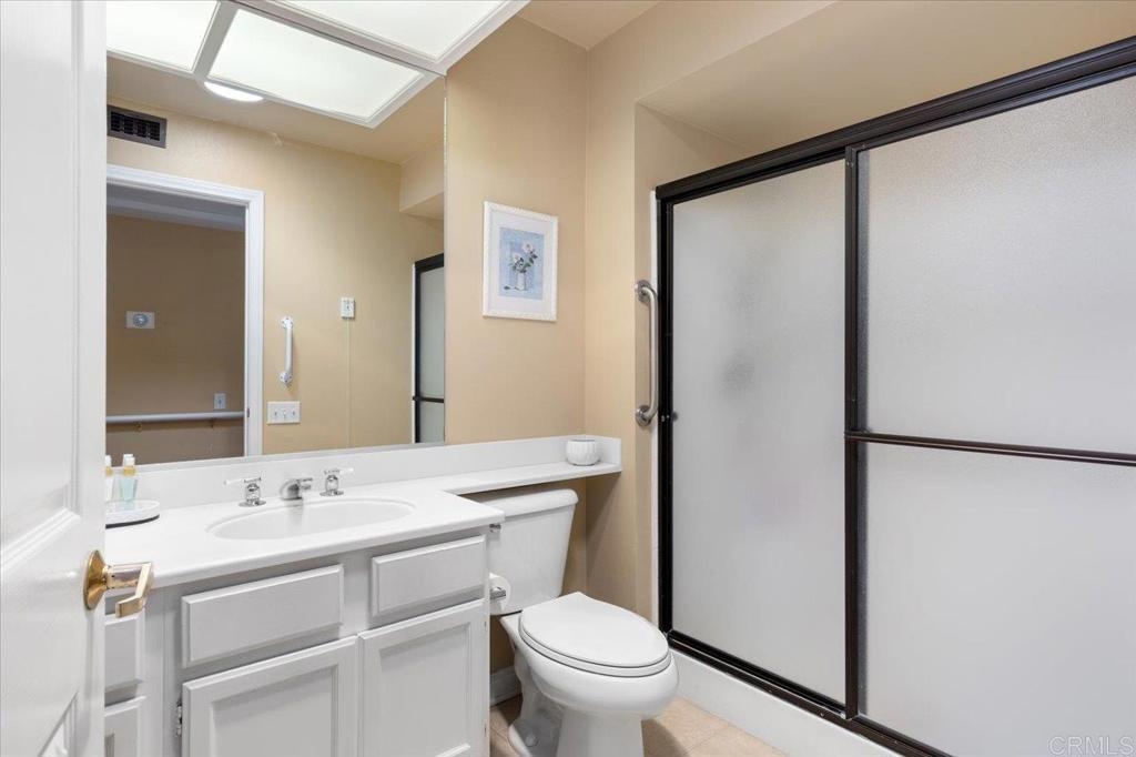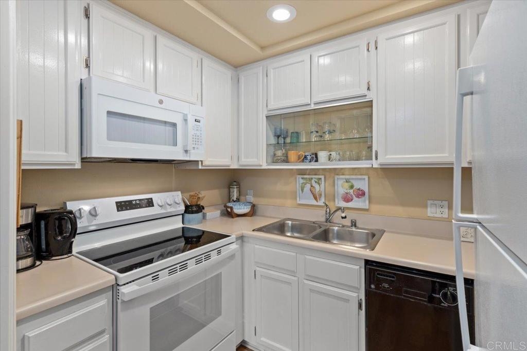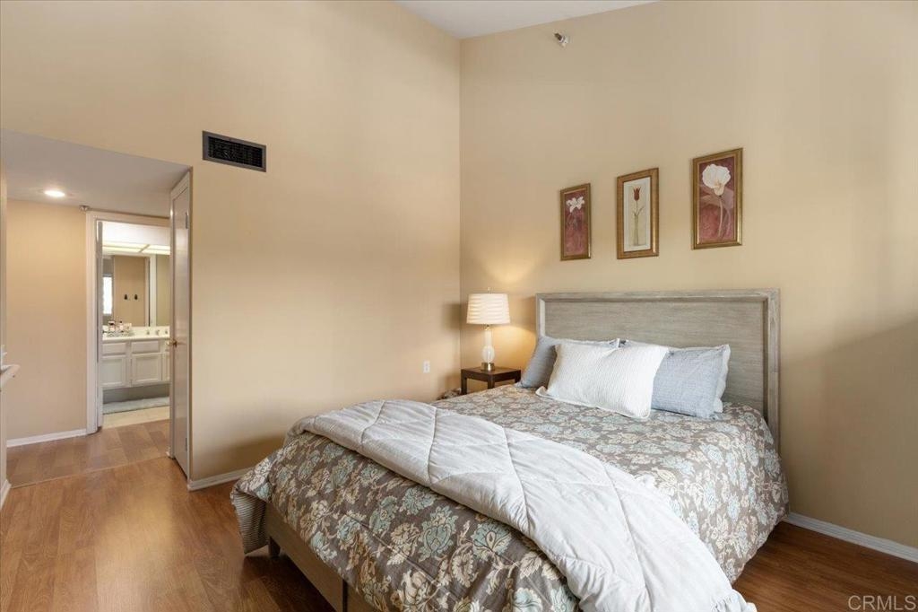 Experience resort-style living in this beautifully maintained 2 bedroom-2 bath condo in a vibrant 55+ community. This top floor condo offers tranquil tree views from your personal balcony plus vaulted ceilings and skylights to capture the abundant light. Warm paint colors and stylish wood look laminate flooring. Newer refrigerator, microwave and stove. Energy efficient upgrades include a Nest thermostat, Upgraded Windows and patio slider door. Convenient hand railing in the hallway and along the primary bedroom wall. Hall bath has a walk-in shower. Primary bedroom has a spacious walk-in closet. Chateau offers fabulous gourmet dining with 30 monthly meal credits (60 for two people) concierge service, transportation for shopping, medical and outings, Onsite beauty salon, Bi-weekly housekeeping with linen service plus enjoy onsite events and activities. Gas, Water, Cable and Wifi included with HOA fee. Other property amenities include Year round Heated pool, spa, fitness center, dog park, putting green and library. Also included is membership to Lake San Marcos Lake and Lodge where you can enjoy walking paths, pickle ball, tennis, billiards and more. All of this in the area they call beautiful Lake San Marcos! An area known for its Waterfront Dining, Golf courses, Events and gorgeous environment. A perfect blend of relaxation and convenience.