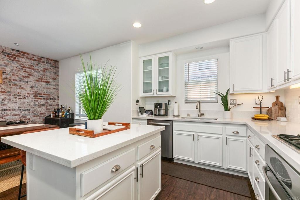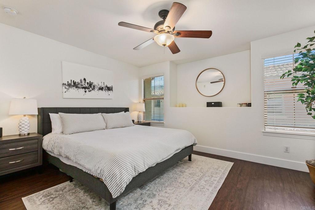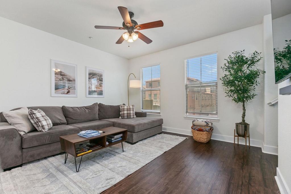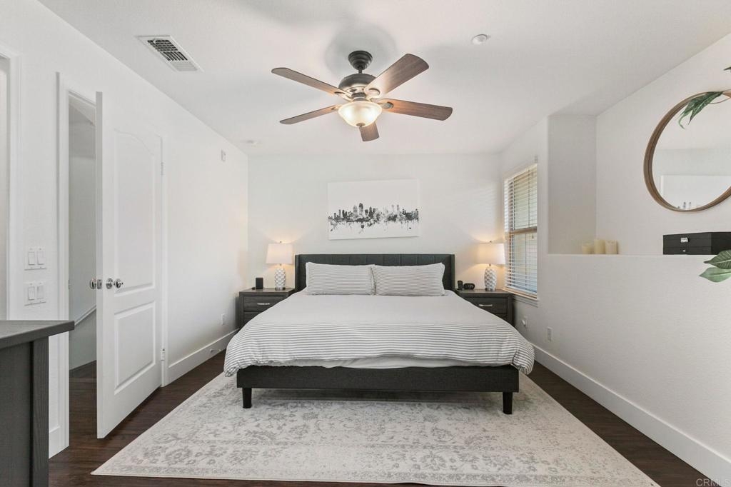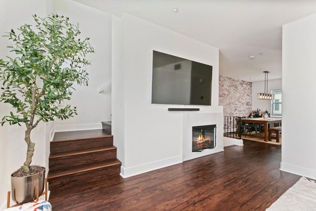 Located just one mile from Cal State San Marcos, this beautifully remodeled tri-level townhome offers the perfect blend of convenience, comfort, and value. With low Mello-Roos and HOA fees, it’s an excellent opportunity for both homeowners and investors alike. The home features three bedrooms and two and a half bathrooms, including a spacious primary suite with an ensuite bathroom. The versatile entry-level room functions perfectly as a third bedroom, office, or additional living space and opens to a private patio. The open-concept main floor includes a modern kitchen, living area, laundry, and a convenient half bath, creating a layout ideal for everyday living and entertaining. Interior upgrades include quartz countertops, updated cabinetry, newer stainless steel appliances, and an in-unit washer and dryer. Luxury vinyl plank flooring runs throughout the home, complemented by modern baseboards and a freshly painted interior in neutral tones. A gas fireplace with a quartz surround adds a touch of warmth and elegance. The attached two-car garage features epoxy flooring and a new garage door opener, while the private patio offers a great space for seating and barbecuing. The home is just steps away from a wide array of community amenities, including a pool, hot tub, gym, BBQ area, tot lot, dog park, and more—all within a gated and guarded community. This prime location offers easy access to CSUSM, medical centers, shopping, restaurants, and major freeways. Whether you're seeking a move-in-ready residence or a high-potential rental, this townhome delivers on all fronts and is VA approved.