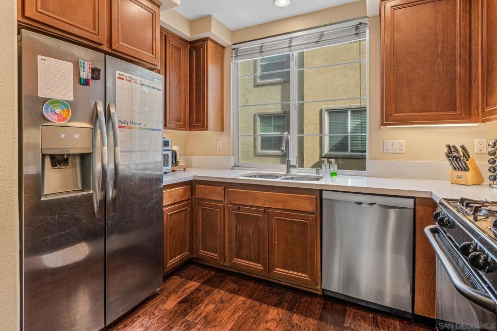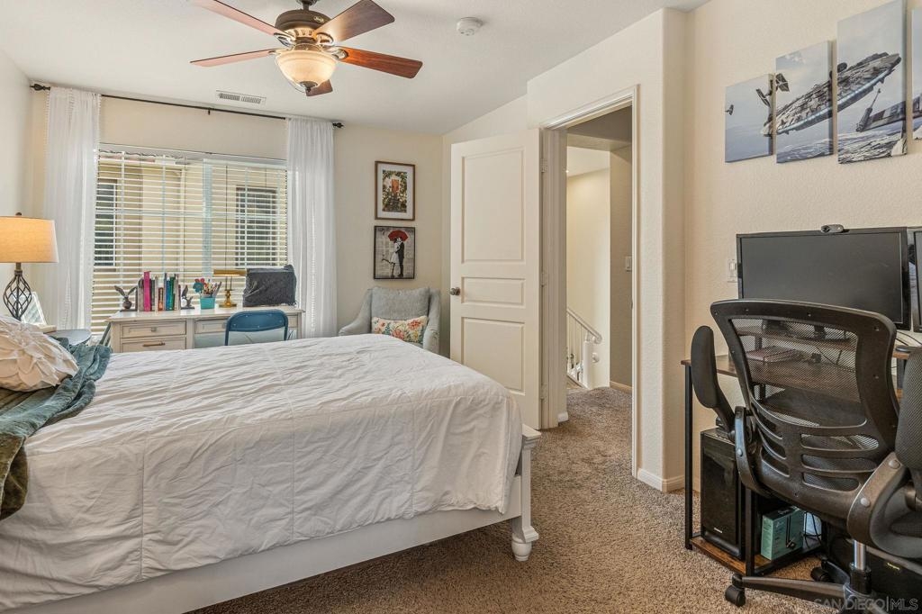 Welcome to this beautiful and well maintained 3-bedroom, 3 full bathroom, open concept property with a spacious balcony located in the highly sought-after gated community of Corte Bella at Coronado Ranch. This move-in-ready home offers spacious living, upgraded flooring and solar, combining comfort and energy efficiency. Each bedroom features a walk-in closet providing ample storage and functionality. The attached 2-car garage includes a large space for two vehicles, full-sized laundry and additional room for personal and recreational gear. Ideally located in prime San Marcos, this home is just steps from shopping centers, restaurants, entertainment, and a short walk to Cal State San Marcos and top-rated schools, making this the perfect location for families, professionals, or investors seeking a turn-key rental property in a gated community. Enjoy resort-style living with access to Corte Bella’s beautifully maintained amenities that include a state-of-the-art fitness center, swimming pool, playground, dog park, and beautifully maintained common areas. Don’t miss this rare opportunity to own a stunning, well-appointed home in one of San Diego’s most desirable neighborhoods.