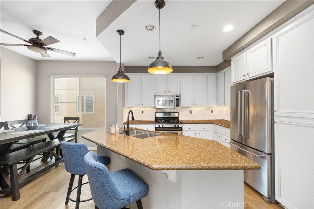 Welcome to 647 Hatfield Dr, a bright and stylish 2-bed, 2.5-bath townhome in San Marcos. This tri-level home offers a spacious, light-filled layout with an open-concept living area, soaring ceilings, and vinyl plank flooring. The upgraded kitchen features granite countertops, stainless steel appliances, a center island, and white cabinetry—perfect for both entertaining and everyday living. Upstairs, both bedrooms include private en-suite baths, while the main level offers a guest powder room. An attached two-car garage includes laundry hookups and extra storage. Residents enjoy resort-style amenities including a clubhouse, heated pool and spa, fitness center, playground, dog park, and BBQ areas—all within a secure, patrol-monitored neighborhood. Located near Cal State San Marcos, top-rated schools, shopping, dining, and major freeways, this home delivers comfort, convenience, and community in one beautifully maintained package.