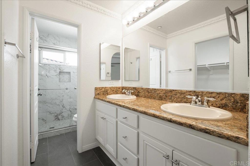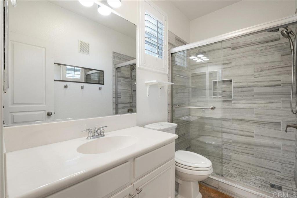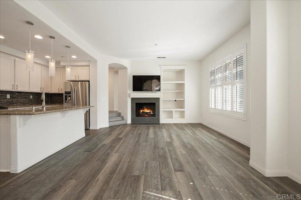 Immaculate Corner Unit in the Gated Community of Coronado Ranch. Nestled in the highly sought-after gated community of Coronado Ranch in San Marcos, this stunning tri-level townhome offers a blend of style, comfort, and convenience. This well-maintained corner unit boasts an attached two-car garage with ceiling storage shelves and is bathed in natural light, creating a bright and inviting ambiance.Step inside to discover fresh neutral paint, elegant plantation shutters, recessed lighting, and a cozy gas fireplace. The main living area showcases durable new flooring and updated bathrooms, all designed for modern living. All TV's currently in the unit will convey to the buyer (new as of 12/2024). The open-concept floor plan features expansive windows, allowing sunlight to pour in. A beautifully appointed chef’s kitchen is the heart of the home, offering granite countertops, a custom tile backsplash, stainless steel appliances, and crisp white cabinetry. A spacious island with breakfast bar seating seamlessly connects the kitchen to the living area, perfect for entertaining.This home offers three generously sized bedrooms, including a convenient main-level bedroom and full bathroom. Upstairs, the spacious primary suite serves as a private retreat with an en-suite bath and walk-in closet.Enjoy seamless indoor-outdoor living with a private patio just off the living room, ideal for relaxing or entertaining.Residents of Coronado Ranch enjoy an array of resort-style amenities, including an on-site guard, BBQ area, gym, sparkling pool & spa, clubhouse, and recreation area.Located adjacent to CSUSM, this home is just minutes from shopping, dining, and major freeways. Enjoy the convenience of walking to grocery stores and local restaurants, or take a short trip to San Elijo Hills Town Center. With access to award-winning San Marcos schools, miles of hiking and biking trails, and a vibrant community atmosphere, this home truly has it all!