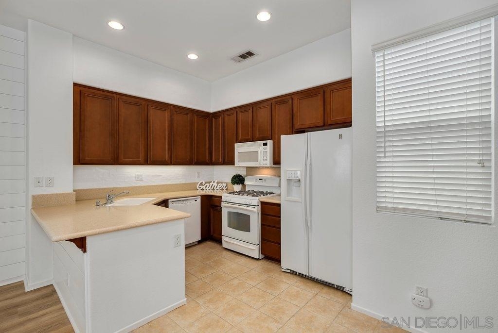 Stunning, renovated "Coronado Ranch" townhome is in a gated community and located in a prime location near Cal State San Marcos. New shiplap walls, luxury wood plank laminate flooring throughout, premium carpet on stairs, white subway tile kitchen splash, and interior paint throughout have just been added! Additional features include an open floorplan, kitchen with Corian counters, bar seating, dual primary bedrooms with ensuite bathrooms, bonus attached 1-car garage (epoxy floors) + assigned parking spot, patio to enjoy and entertain (close to the pool with peak mountain views) and the washer/dryer and refrigerator convey with home. The resort-like community is luxurious and offers a pool/spa, clubhouse, gym, bbq area, and playground...Welcome Home! Complex Features: ,,,,,, Equipment: Dryer, Washer Other Fees: 110 Sewer: Sewer Connected