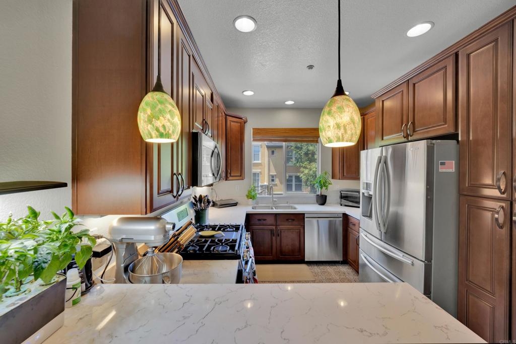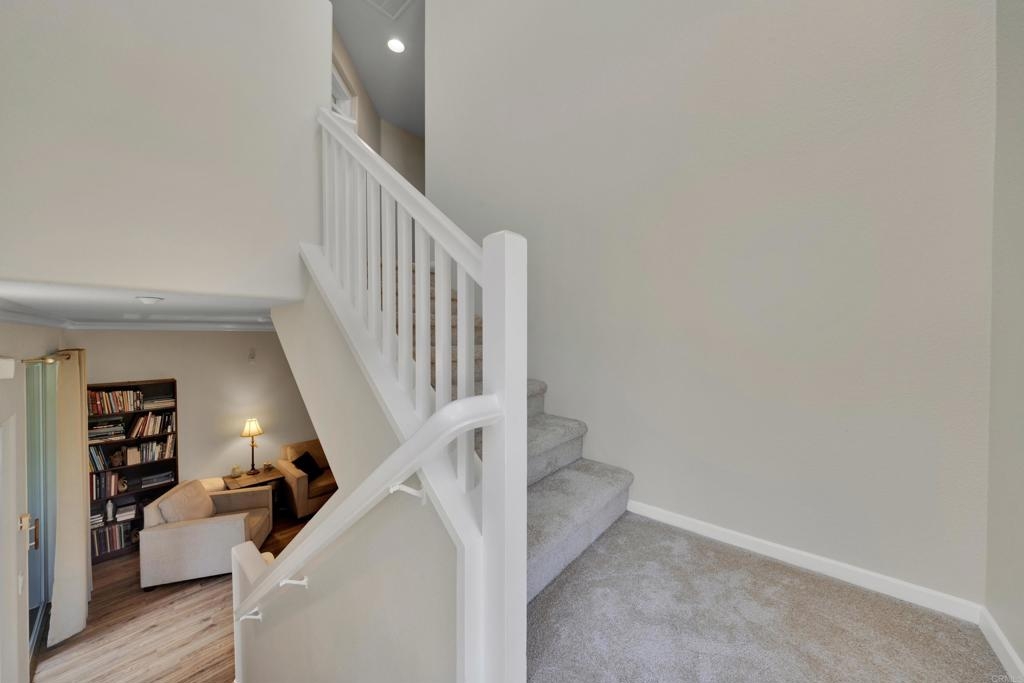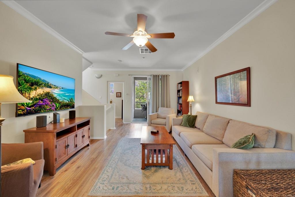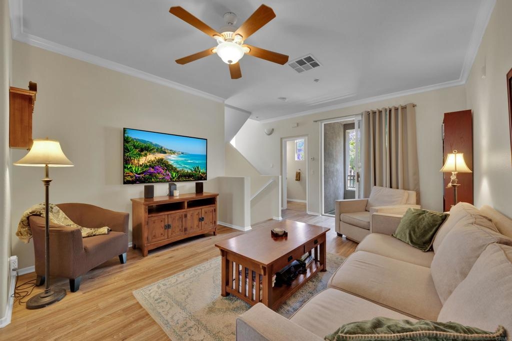 NEW PAINT AND CARPET!! Charming Turn-Key Townhome in Creekside Cottages, San Elijo Hills Welcome to your dream home at Creekside Cottages, a coveted townhome community in the heart of San Marcos’ vibrant San Elijo Hills! This stunning 2-bedroom, 2-bathroom corner unit, built in 2005, spans 1,401 sqft and offers an optional bedroom/office/den for flexible living. Move-in ready with fresh paint, new carpet, and gleaming hardwood floors, this home is the epitome of modern comfort and style. Step inside to a bright and airy open-concept layout flooded with tons of natural light, thanks to its prime corner position. The gourmet kitchen boasts granite counters, ample cabinetry, and flows seamlessly into the inviting living room, perfect for entertaining or cozy evenings. Enjoy the convenience of an in-unit full-size washer and dryer, a private balcony for morning coffee, and a large tandem garage for ample storage and parking. Residents of Creekside Cottages relish the luxury amenities, serene neighborhood, and breathtaking mountain views. Just minutes from top-rated schools, pristine beaches, Palomar College, golf courses, medical offices, and the eclectic shops, restaurants, and entertainment of San Elijo Hills, this location offers the best of North County living. Don’t miss this rare opportunity to own a turn-key gem in a 45-unit boutique community. Schedule your tour today and experience the charm of Creekside Cottages! Property Highlights: • 2 Bed, 2 Bath + Optional Bedroom/Office/Den • 1,401 Sqft Corner Unit • New Paint & Carpet, Hardwood Floors • Granite Counters, Modern Kitchen • In-Unit Washer/Dryer, Private Balcony • Large Tandem Garage • Abundant Natural Light • Built in 2005, 45 Luxury Units • Close to Schools, Beaches, Shops, Dining, and More • Peaceful Community with Mountain View’s