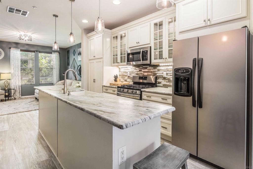 Located in the sought-after community of Creekside Cottage, this beautifully upgraded property offers upscale living in one of North County’s most desirable neighborhoods. Thoughtfully appointed with high-end finishes, the home features striking leathered countertops, a new refrigerator, updated flooring, soft closing cabinets and drawers, a farmhouse sink, and fresh neutral paint throughout. The versatile floor plan includes dual primary suites and full-sized laundry upstairs, along with a dedicated office or optional third bedroom on the main level. A convenient half bath and spacious balcony create the perfect setting for evening cocktails or weekend barbecues—enhancing both the home’s livability and charm. Enjoy a truly walkable lifestyle with top-rated schools, shopping, dining, coffee shops, dry cleaner, nail salon, and gas station just steps from your front door. Nestled within a quiet, well-maintained complex and only a short drive to the beach, this home offers the best of Southern California coastal living. Don’t miss this rare opportunity to own a turnkey residence where comfort, convenience, and style come together effortlessly.