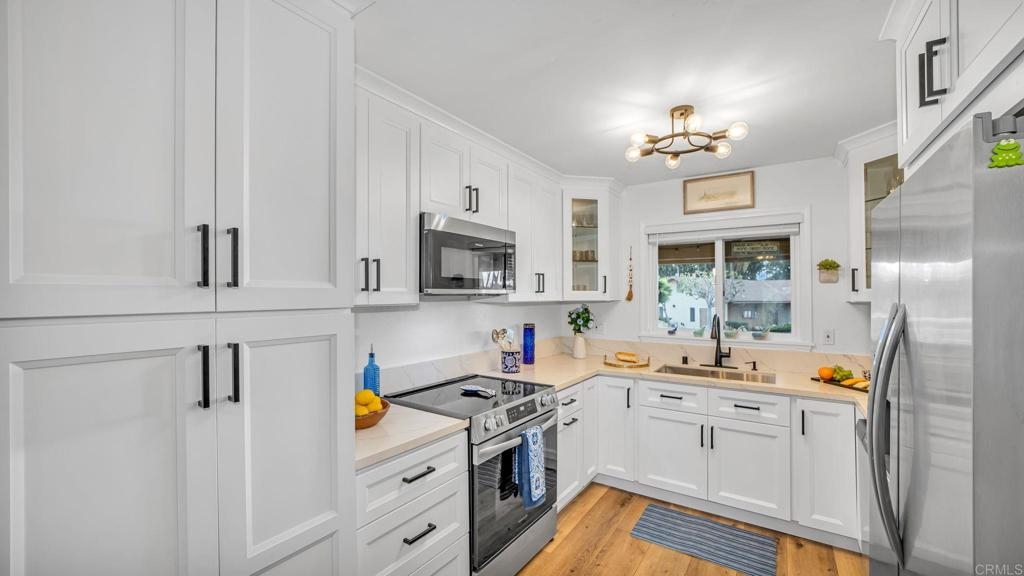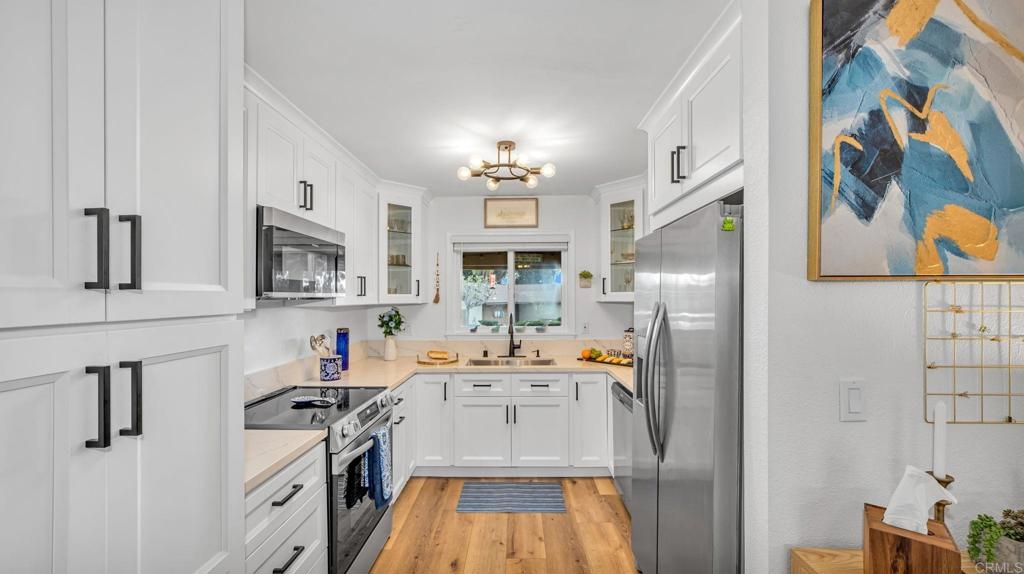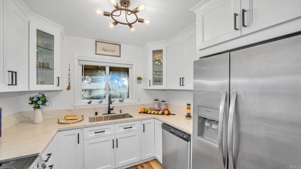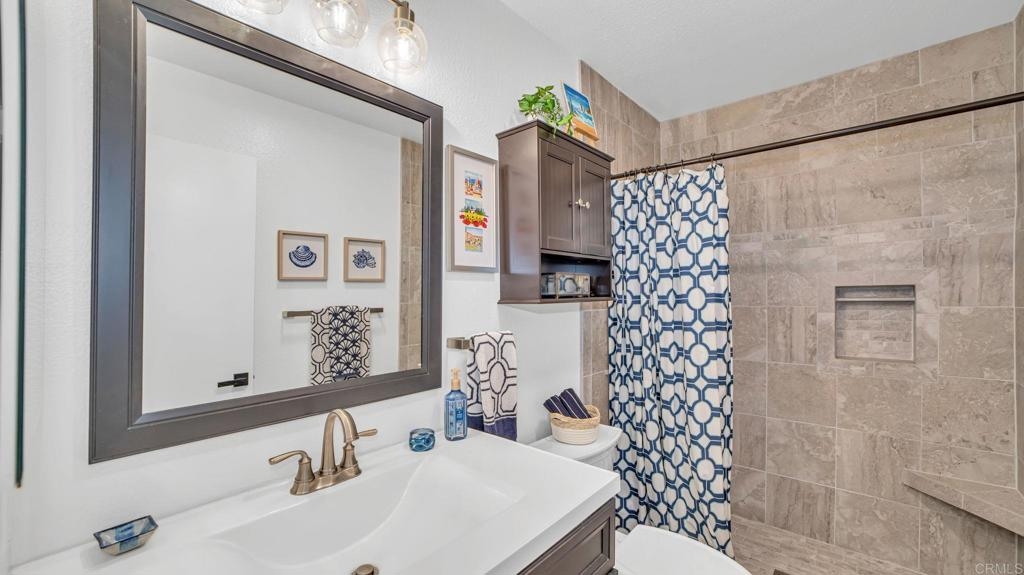 *Sellers will entertain offers between $599,900 and $675,000. Embrace leisurely living in this beautifully updated 2 bedroom, 2 bathroom condo nestled in the highly desirable Lake San Marcos community. This corner unit offers privacy and tranquility, surrounded by open space. The Key Features of this contemporary beauty include: •Large west facing patio with New Front Door welcoming you. •Freshly Painted Interior and large sky light accentuating the soaring ceilings and providing a light and bright upstairs home with open-space views from all windows. •Newer Stylish Luxury Decorator Vinyl Plank Flooring in every room. •The newly remodeled Kitchen has quartz counters, white shaker cabinetry, newer stainless steel appliances including refrigerator. •Modernized bathrooms feature new vanities, high-end large shower in Primary and hall bath has a shower with built in bench and gorgeous glass sliding doors. •There are two Spacious Patios: Perfect for outdoor relaxation and entertaining. • Dual-Pane Vinyl Windows and Sliding Door provide energy efficiency and noise reduction. •You are just across from pool, spa, clubhouse, and tennis courts. •A short walk takes you to Lake San Marcos that offers a wealth of recreational options, including: 2 Golf Courses- 18-hole championship course or the executive course, clubhouse dining lets you socialize with the neighbors. •Lake Activities: Enjoy boating, fishing, and scenic walking paths around the lake. You can participate in Community Events including various social gatherings and activities throughout the year. •Interested in Schools? This home has Educational Excellence opportunities served by the esteemed San Marcos Unified School District, featuring: Discovery Elementary School, San Elijo Middle School, San Marcos High School, and High Tech High, a nearby public charter school emphasizing project-based learning. •This is a very convenient location: Beaches: Just a 23-minute drive to beautiful Carlsbad beaches. Shopping and Dining: Only 7 minutes to a vibrant shopping area featuring Sprouts Market, The Broken Yolk Café, Sammy’s Wood-fired Pizza, Curry and More, Boudin Bakery, and more. Retail Stores: Nearby HomeGoods, Marshalls, and Ross Department Stores for all your shopping needs. •Need Healthcare? A short 7-minute drive to the new Kaiser Hospital and multiple doctor’s offices.• This maintenance-free condo offers the perfect blend of affordability, comfort, convenience, great schools and community amenities. Don't miss the opportunity to make this your new home!