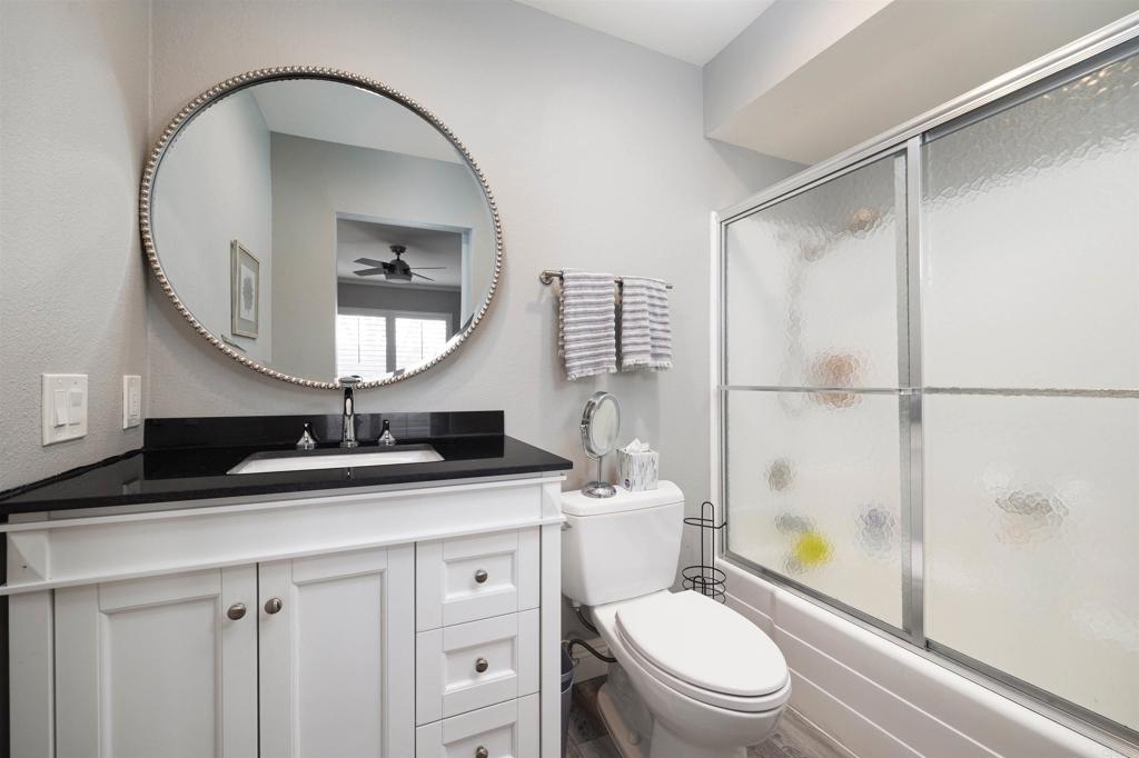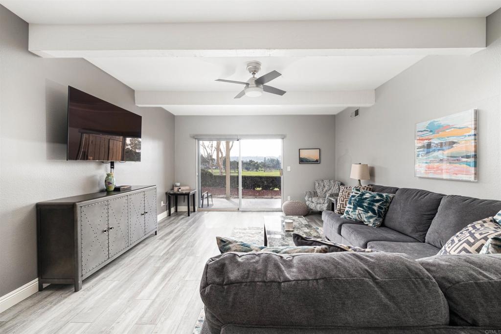 This tastefully upgraded ground floor 2-bedroom, 2-bathroom condo invites you to experience the best of Lake San Marcos living. Step inside to discover a thoughtfully remodeled interior, featuring modern finishes and an open-concept design. The kitchen is a chef's delight, boasting quartz countertops, stainless steel appliances, and a large center island. Beautiful Luxury Vinyl Plank flooring spreads throughout. Window coverings are a perfect mix of light pulldown blinds and Plantation Shutters. Brand new water heater just installed. The spacious primary bedroom is a true retreat, offering oversized dimensions and breathtaking views of the surrounding mountains and golf course. Enter through a beautiful sliding barn door to the master bath with tub and shower. The secondary bedroom also comes with its own adjacent bath/shower, providing convenience and privacy for residents and guests alike. This condo is available FULLY furnished as shown! This condo is part of a vibrant community that offers an array of recreational amenities. Take advantage of the tennis court, clubhouse, pool, and spa within the complex. The HOA fees cover cable, internet, water, garbage, termite maintenance, and exterior upkeep, providing a hassle-free living experience. Situated just a mile away from the Lakehouse Resort and marina, this residence allows you to enjoy the best of both tranquility and recreation. For those seeking even more recreational opportunities, a Lake and Lodge Membership is available. Don't miss this opportunity!