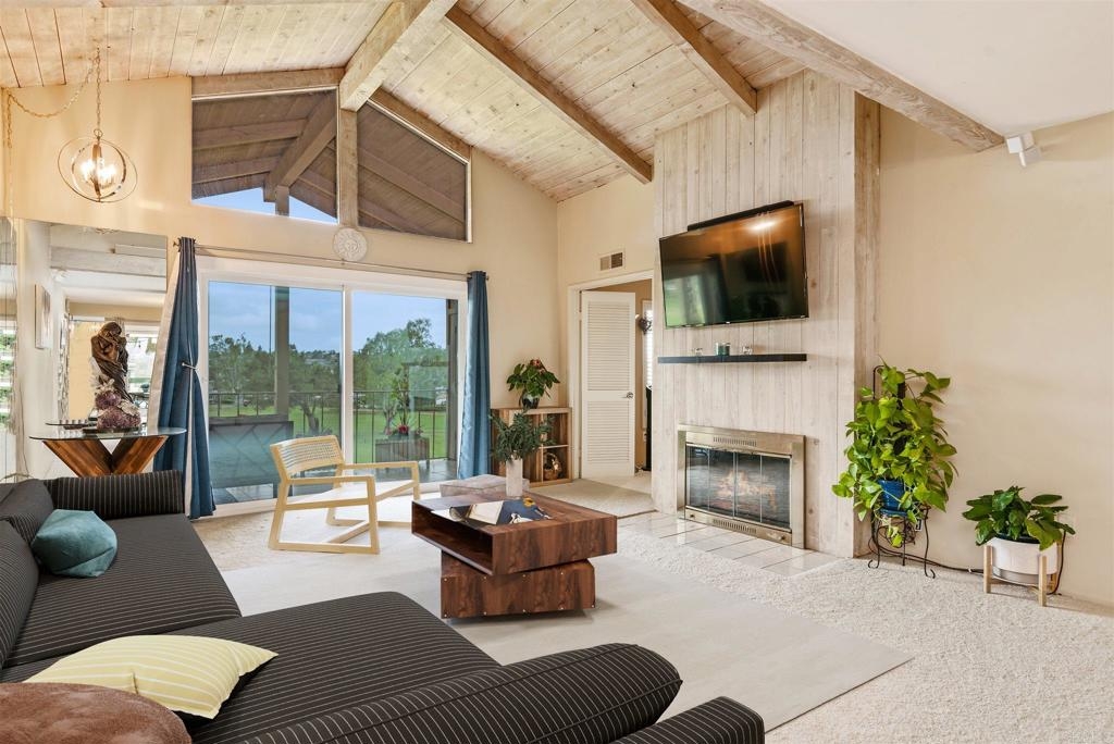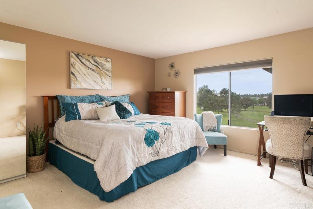 Highly sought-after 3-bedroom beauty with sweeping views of the St. Mark Championship golf course and majestic sunsets!!! Spacious single-level floor plan designed for the ultimate in privacy and comfort with separate wings for the master suite and the 2 other bedrooms. The living room features vaulted ceilings, fireplace and sliding doors that open to the balcony. There is also a balcony conveniently located off the dining area. Third bedroom (can be used as an office/den) also boasts breathtaking views! Special features include new AC unit, new water heater, new sliding doors, new carpeting in living/dining area and newer SS refrigerator. The Fairway knolls offers beautiful recreation areas with pool, spa, tennis courts and a spacious clubhouse. Resident benefits also include 24HR Security. Live the resort life style that Lake San Marcos has to offer....golf, water sports & so much more! Close to restaurants, shopping, freeway and minutes to beautiful beaches.