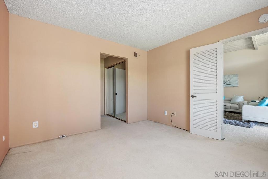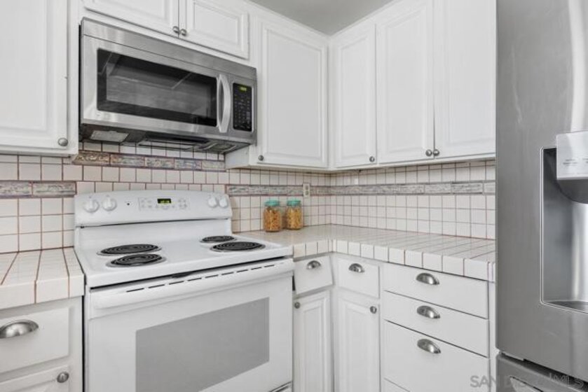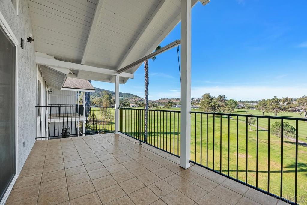 Enjoy stunning views of the San Marcos mountain peaks and golf course from this desirable unit in Fairway Knolls. This 3 bedroom, 2 bath second-floor home features vaulted ceilings, newer windows and sliding doors, newer AC, and newer stainless steel fridge and microwave. The spacious living room is centered around a charming fireplace with a wooden mantel, creating a warm and inviting living space. The oversized covered patio with vaulted ceiling provides the perfect setting for relaxing or entertaining year-round. Convenient in-unit laundry is located on the back patio. HOA fees include water, trash, cable TV, high-speed internet, roof maintenance, and exterior building maintenance. Community amenities include pool, tennis courts, and clubhouse. HOA special assessment has been fully paid. Assigned covered parking with storage is located directly across from the unit entry. Ideally located near all that Lake San Marcos has to offer, including golf courses, restaurants, fishing, water activities, shopping, schools, and easy freeway access.