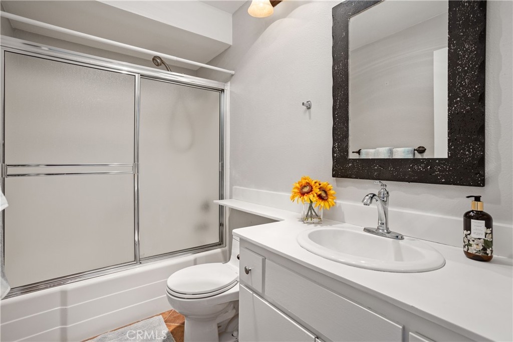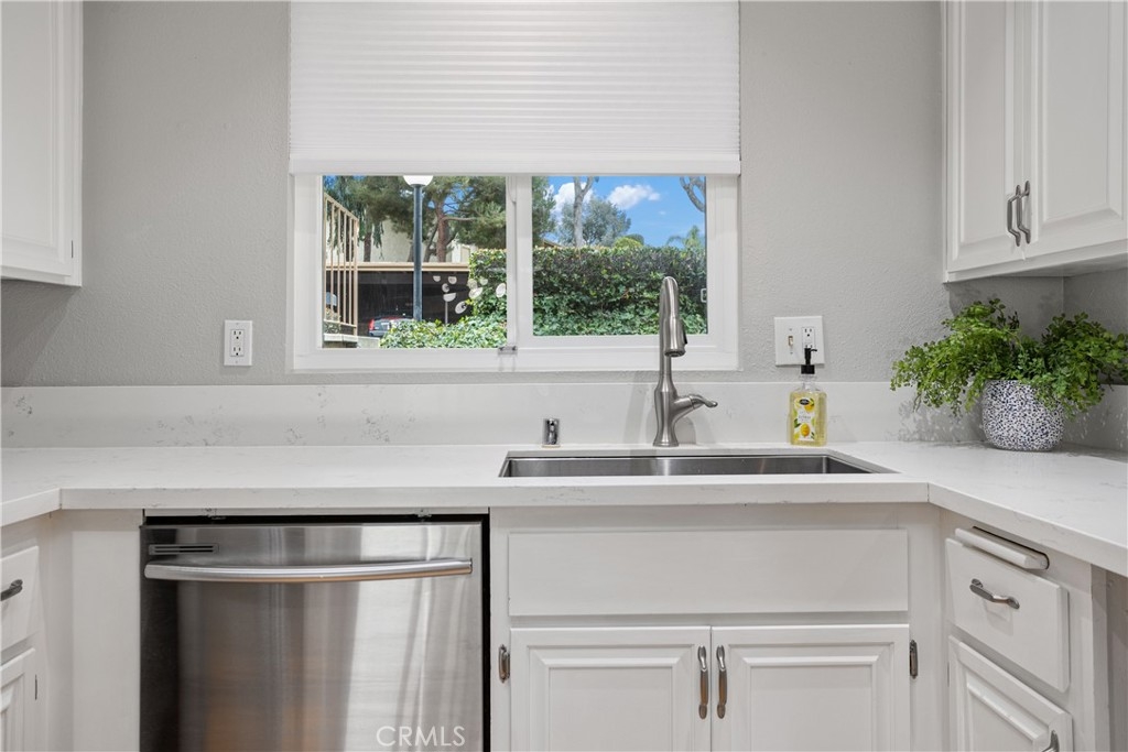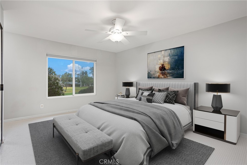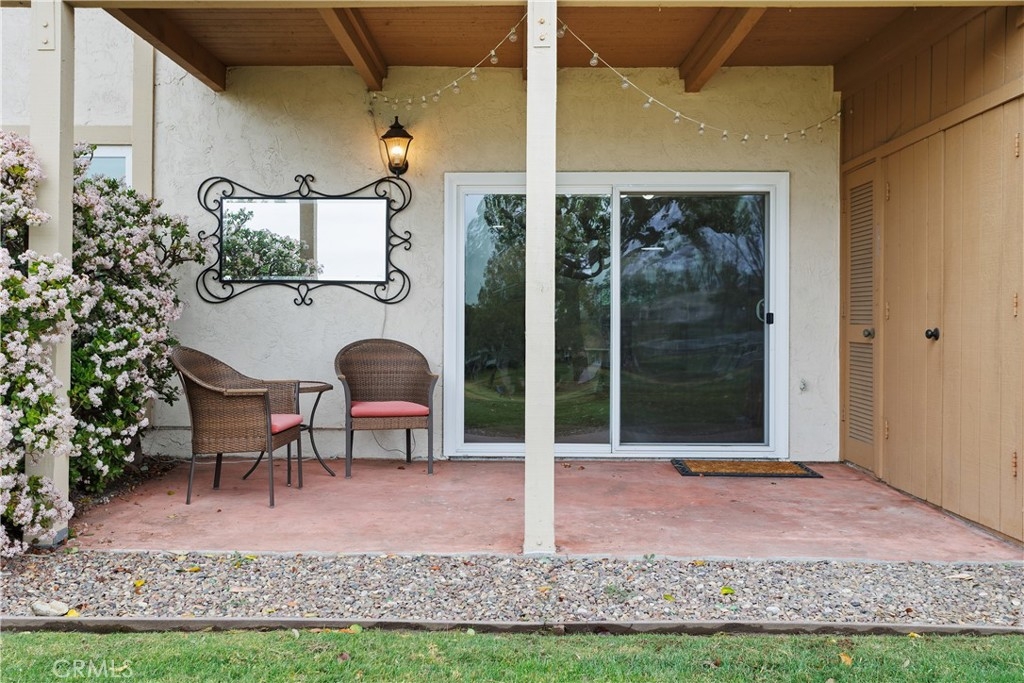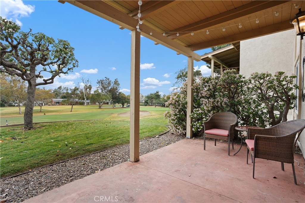 You’ve found it—your very own beautiful corner of paradise on the 10th fairway of a lush golf course, offering both sunrise and sunset views! This 2-bedroom, 2-bathroom, golf course-level condominium features 1,150 square feet of modern style, boasting a well-appointed kitchen with quartz countertops, stainless steel appliances, recessed lighting, a large modern sink, and a cabinet pantry. Immediately adjacent to the kitchen is the open-concept dining area and family room, both adorned with gorgeous wood floors. Across from the dining area is a bar, perfect for mixing cocktails for you and your guests to enjoy while taking in the panoramic views of the mountains and golf course from your private, spacious, covered back patio. The ample family room features a dramatic, newly painted gas fireplace that stretches from floor to ceiling. The primary bedroom offers stunning golf course views, wall-length mirrored closet doors, and brand-new carpet. The secondary bedroom also includes mirrored closet doors and new carpeting. This beauty also includes its own laundry area with an included washer and dryer, along with a covered carport offering ample storage. This home boasts an amazing array of amenities both inside and out! Community amenities include a large pool, spa, tennis and pickleball court, and a gorgeous clubhouse, just a short walk from your patio. Even more impressive, the association covers a dizzying array of paid amenities, including cable TV, internet, water, and trash. Only a short distance from Lake San Marcos, award-winning San Marcos schools, amazing restaurants, abundant shopping, and a short drive to Carlsbad Beach and outlets, this golf course hideaway won’t last!