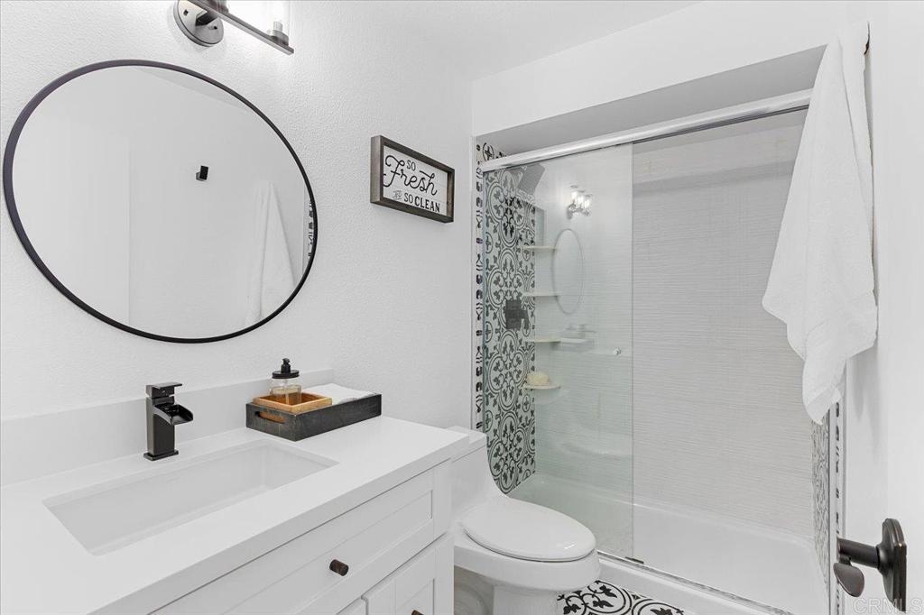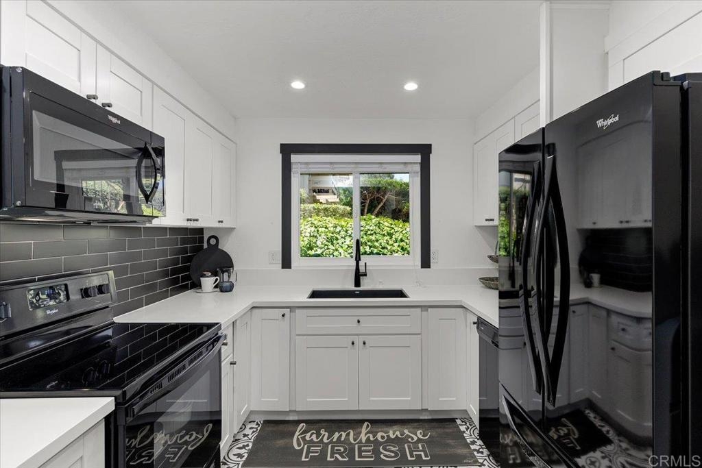 Highly upgraded ground floor unit in Fairway Knolls of Lake San Marcos - completely move-in ready! No expenses were spared and thoughtful attention to detail can be seen throughout this gorgeous condo. Welcome home - simplicity of living is what it is all about. Fully remodeled kitchen with white shaker cabinets, quartz counters & newer appliances. Completely remodeled bathrooms with designer touches and tile. Ground floor unit with grassy area off your private back patio. Dual pane windows and doors throughout. Community pool, jacuzzi and tennis courts are a stone's throw away from your front door. 1 designated carport spot (with storage cabinets) and 1 additional open parking space. This one is worth coming to see!
