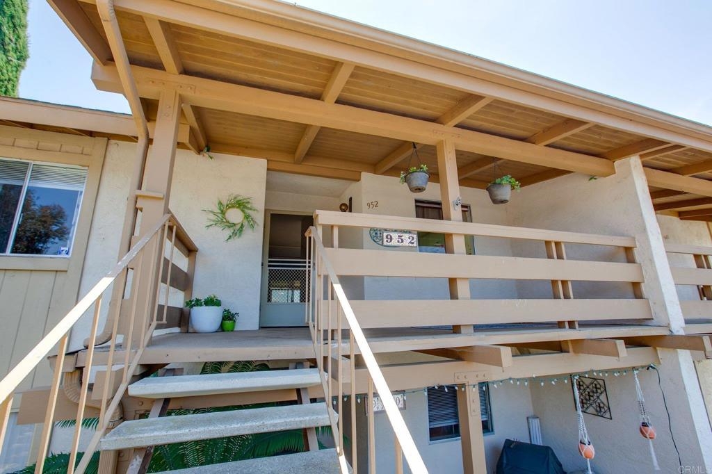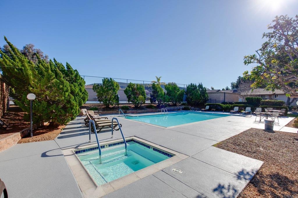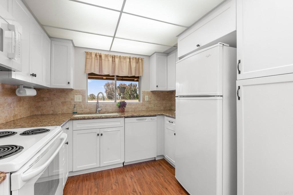 Beautiful Condo with Spectacular Views in Fairway Knolls, Lake San Marcos! Discover effortless living in this charming end-unit condo nestled within the Fairway Knolls complex of Lake San Marcos. Perfectly positioned for convenience and serenity, this home offers: - Stunning Views: Marvel at panoramic views of the mountains and golf course from your private balcony, complemented by abundant natural light streaming through 3 skylights. - Modern Upgrades: Recently painted with light and airy vaulted ceilings, this home features new LVP flooring in bedrooms, bathrooms, and hallways (April 2024), along with a new dishwasher and over-the-range microwave, granite counters, and soft-close white cabinetry in the kitchen. - Comfort and Privacy: Benefit from the end-unit location with extra sound-dampening drywall on the common wall, ensuring a quiet and private living environment. - Convenience: Includes one assigned carport parking space, additional open parking throughout, and a designated storage unit. All appliances, including washer/dryer and fridge, are included. - HOA Amenities: HOA covers water, sewer, trash, and cable TV, plus offers a range of amenities such as a pool, spa, sauna, clubhouse, tennis courts, pickleball, and a rec room.