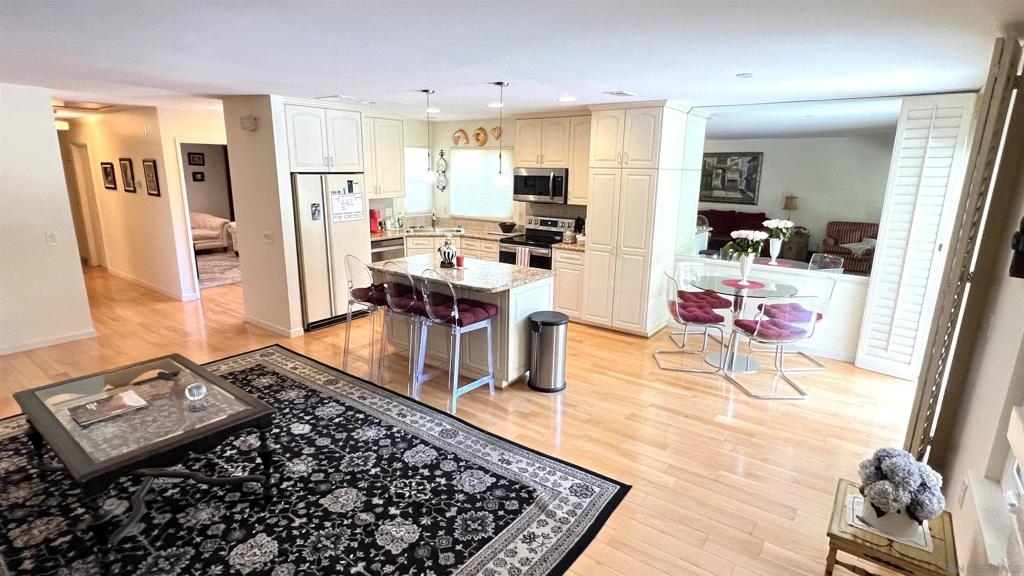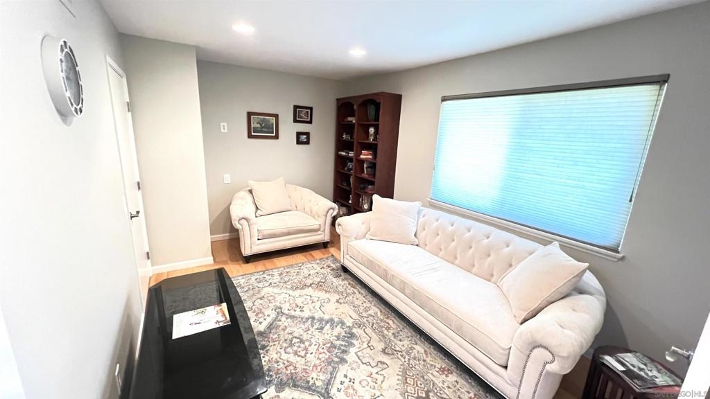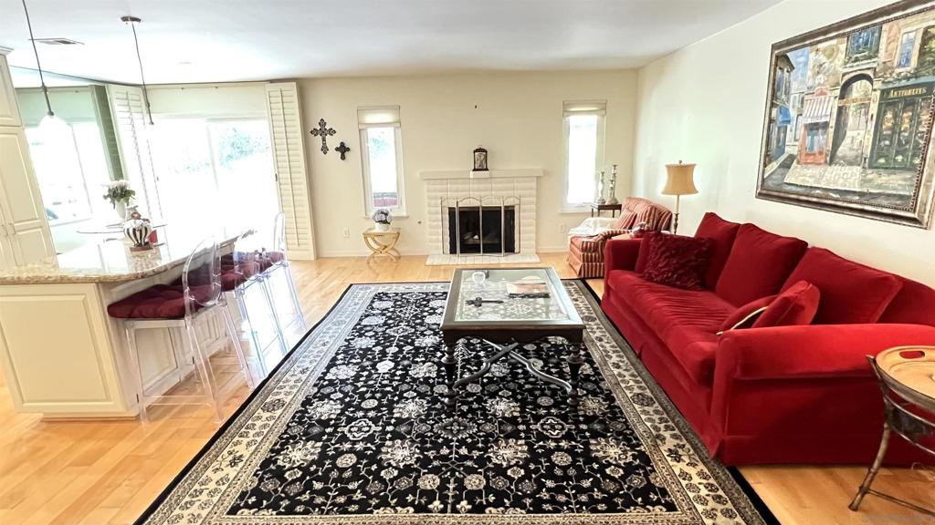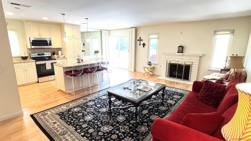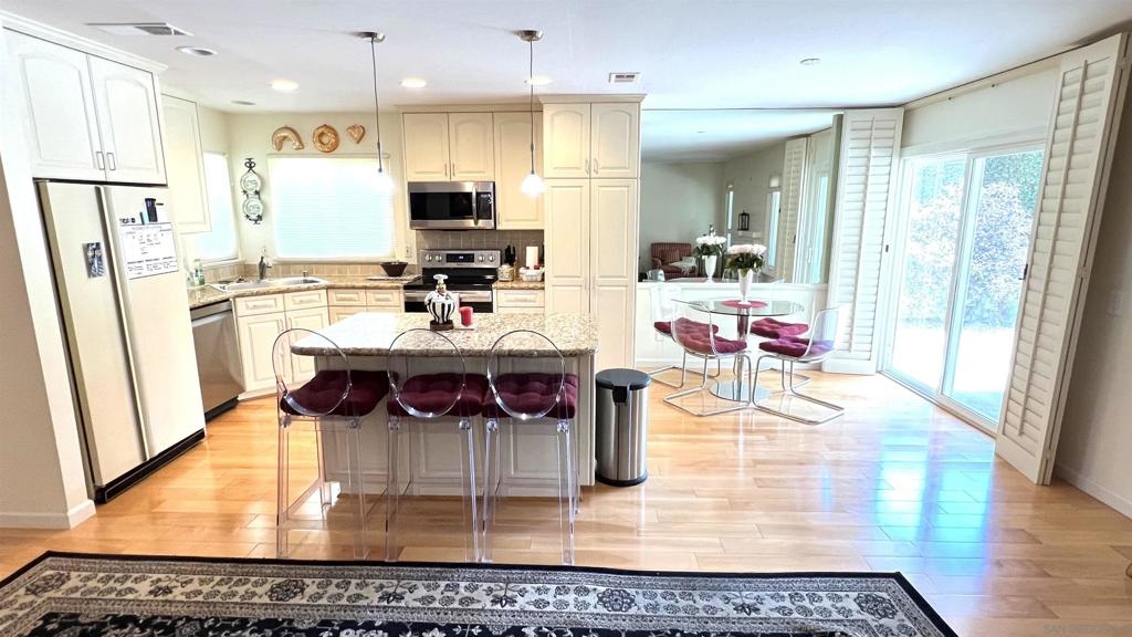 Single-story, 1,528 sq. ft. twin home designed for easy living both inside and out. Featuring open floor plan with 3 bedrooms and 2 bathrooms, large rooms and top-quality upgrades throughout. Upgraded kitchen with stainless steel appliances with a center island, hardwood maple floors. 2-car garage is equipped with a sink, cabinets, and a home office, making it both functional and versatile. North County weather with ocean breezes, surrounded by green space, privacy, and mountain views that provide a serene setting for relaxation. The covered backyard patio with multiple sitting areas is perfect for entertaining or unwinding after a long day. Located in the desirable Lake San Marcos community, this home offers convenient access to shopping, award-winning schools, and dining at Restaurant Row. Don't miss the opportunity to experience this fabulous home and community – truly a wonderful place to live. Additionally, Lake San Marcos offers a variety of amenities for a reasonable additional fee per month, including boating, fishing, kayaking, pickleball, tennis, golf, heated pools, a family pool, and other recreational activities.