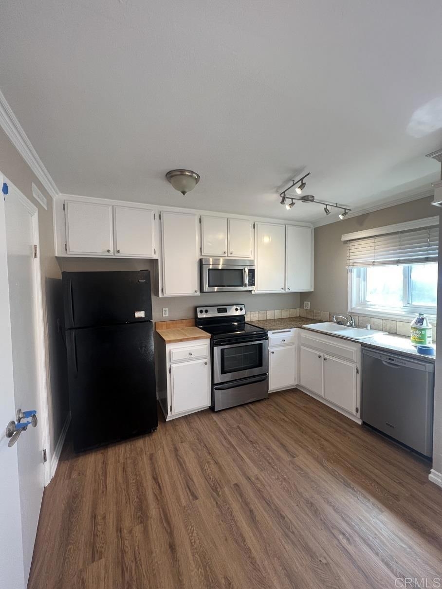 Very well maintained 2/1.5 spacious TH located in central San Marcos! Walking distance to San Marcos High School and grocery stores, shopping center, close to freeway, Bus station and restaurants! Move in ready condition, newly repainted and main hard floor, crown moldings, customized light fixtures in living room and kitchen, all appliance seen included in sale. Inside laundry with full size Washer and Dryer. Complex features clubhouse, pool, spa, fitness, playground, tennis courts and RV/Boat/guest parking.