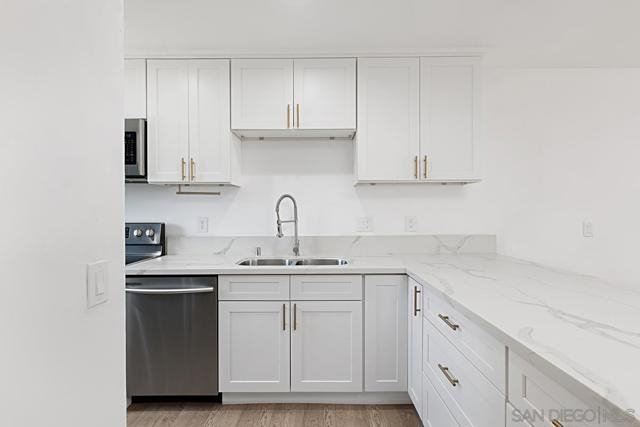 Welcome to your upgraded townhome in the highly sought-after Lake Park Villas community! As you step into this elegantly designed home, you’ll immediately notice the well-appointed kitchen, complete with quartz counters, stainless steel appliances, and tasteful white cabinetry. The adjacent dining and living area is spacious enough to host lively gatherings, and leads directly out onto your own private patio with storage area. Upstairs, the inviting bedrooms come with closet organizers to maximize your storage space, while the master bath features striking subway tile. Other welcome upgrades include mini-split A/C, in-unit laundry, and recessed LED lighting. The complex’s refreshing pool is just a quick stroll away, perfect for basking in the California sun. Location is another major draw: Countless amenities are within walking distance, including shopping, dining, Bradley Park’s playground and sports fields, High Tech High, and San Marcos High. Lake San Marcos, Palomar College, Cal State San Marcos, and Highway 78 are also just a short drive away. Don’t miss out on this golden opportunity!