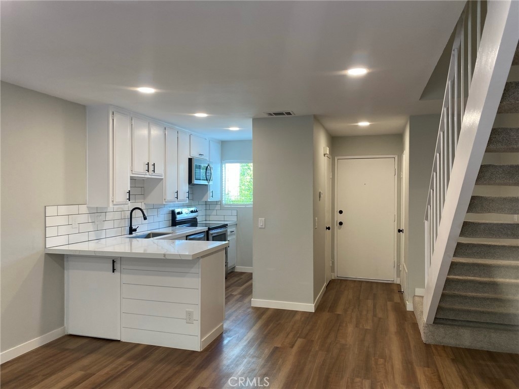 This condo is a must see! Great opportunity for a first time home buyer or investor! This 2 bed/1.5 bath has been completely remodeled inside with no expenses spared. All new flooring, paint, appliances and fixtures. its located in a building on the end and has a private backyard patio with new fencing and a gate that opens up to a grass area as well as the assigned parking space and carport.
