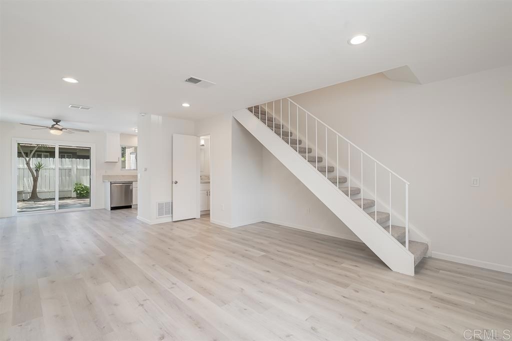 Bright and airy "Corner Unit" with its own private backyard patio, COMPLETELY REMODELED with brand new waterproof vinyl floors,carpet,fresh paint throughout, NEW FURNACE and Air Conditioning, LED recessed ceiling lights! New dual pain vinyl windows throughout, new toilets, cabinets, Stone counter tops and bathrooms. New Stainless Steel LG appliances with 2 parking spaces. Amazing location,minutes to San Marcos High School,High Tech High, La Mirada Academy, shopping, fwys.