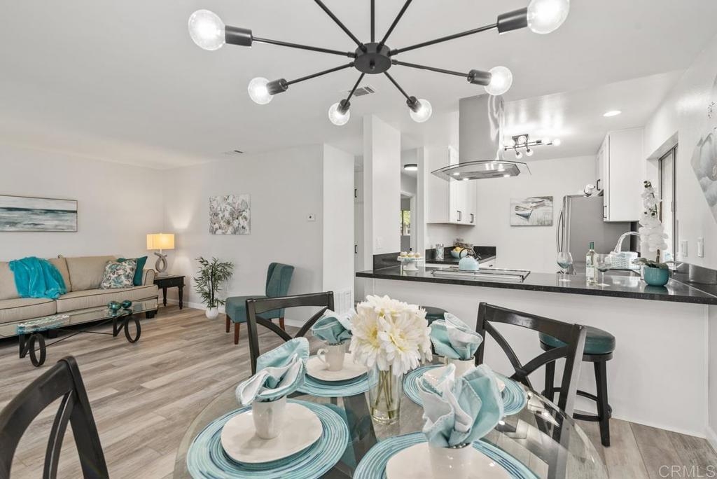 Welcome home! This unique and hard-to-find fully renovated single level 2 bedroom 1 bath condo on a corner lot has a darling private patio/yard with storage area. There is a Brand new kitchen featuring white shaker cabinet and black quartz countertops complete with Stainless Steel slide-in range, oversized sink, French door refrigerator, and dishwasher. You'll enjoy looking into your private backyard complete with new turf, a large orange tree and covered patio. The beautiful new luxury vinyl plank flooring is the latest design and has an excellent warranty. The master bedroom is oversized and the 2nd bedroom is almost as big. There is a brand new washer/dryer combo right in the hallway just for you. This delightful home is walking distance to major shopping, transportation, restaurants, San Marcos Schools and ~15 min to Carlsbad Beach, Flower Fields. Hurry, Hurry, at this price it will fly!