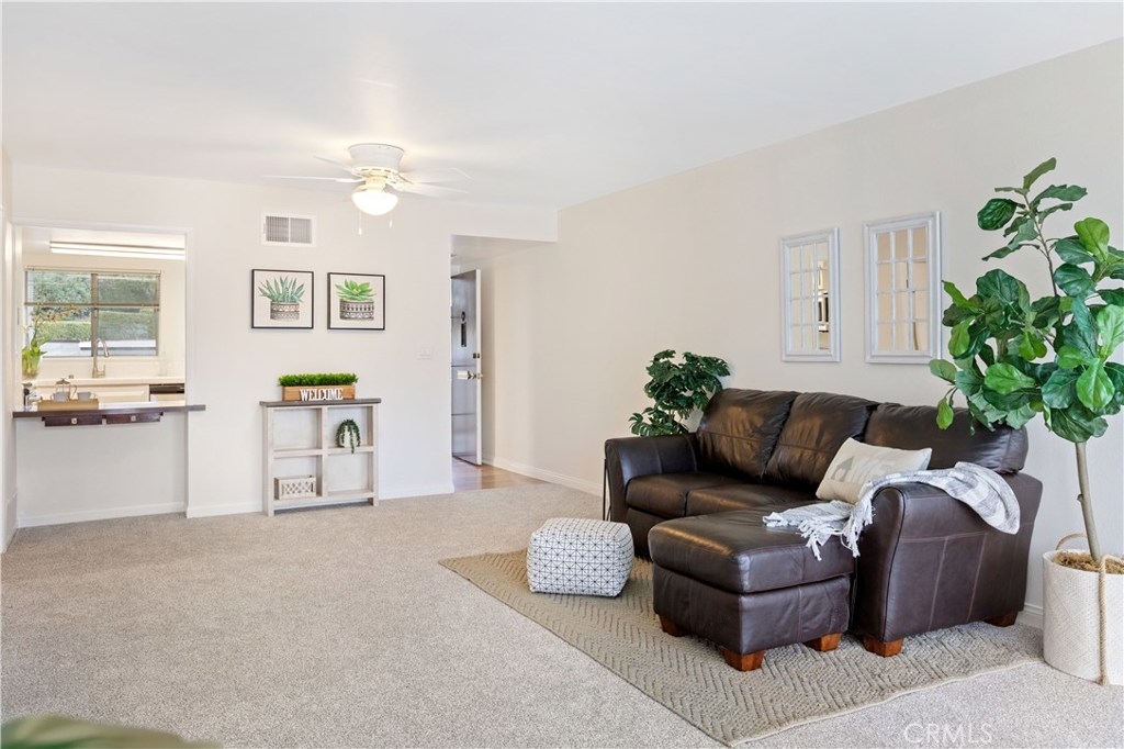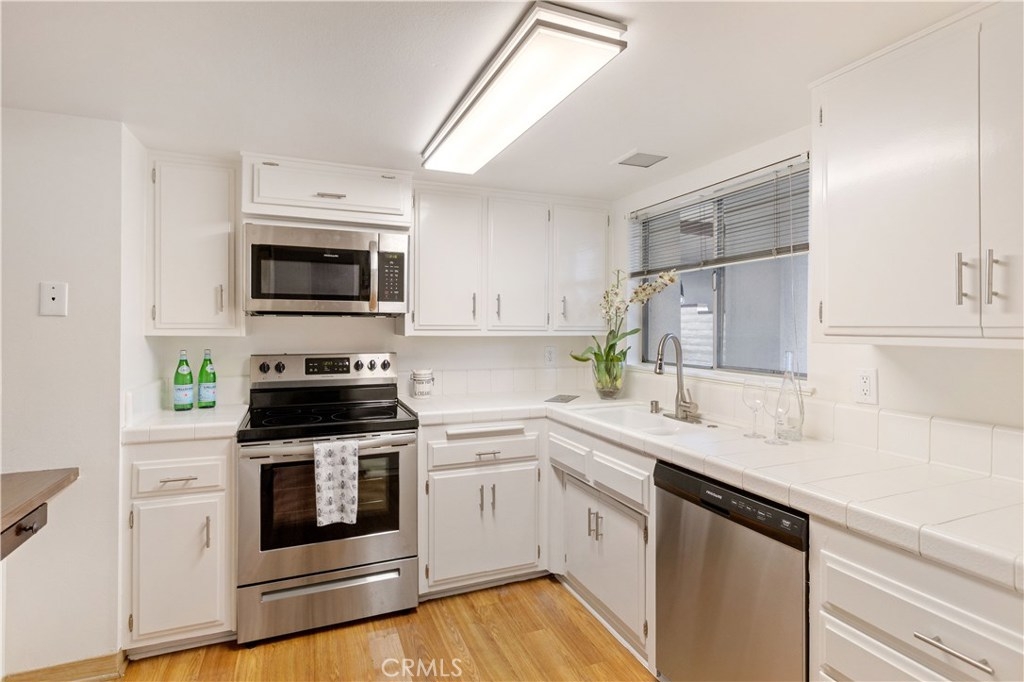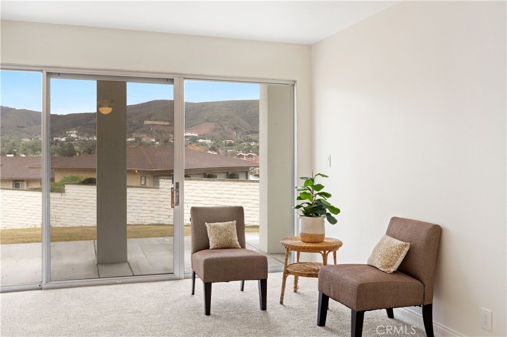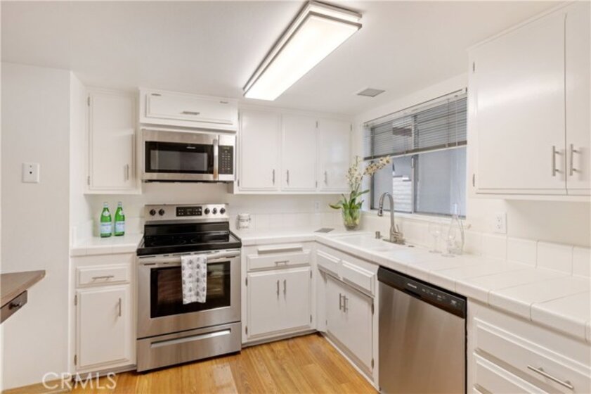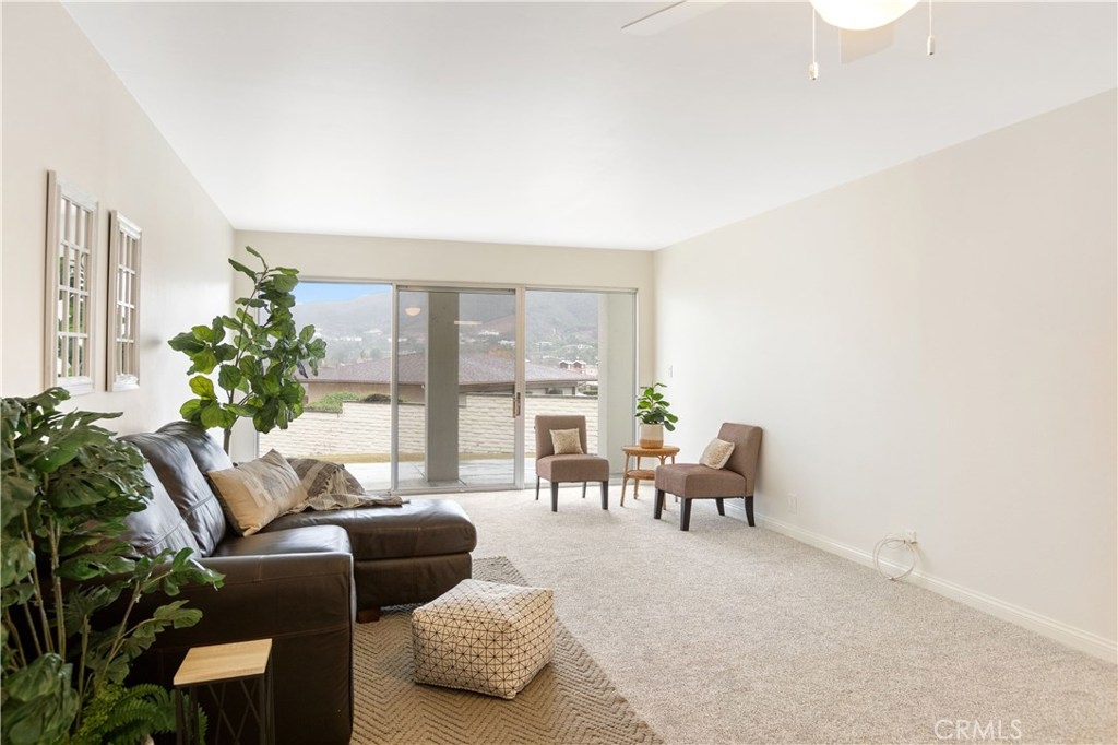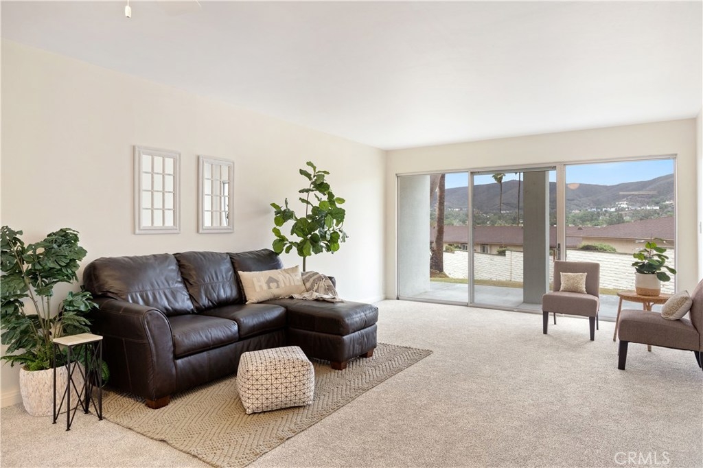 Rare entry level condo in Lake San Marcos offers mountain views and easy living lifestyle. Clean & cute! This one bedroom one bathroom home features new carpet and flooring throughout including freshly painted interior walls. The kitchen has been refinished with brand new stainless steel appliances and new sink faucet. En suite bathroom features two separate vanities with new faucets. Parking includes one covered parking spot and one tandem spot. Includes community laundry close to unit. Sliding door off living with covered patio looking out to mountain views. Walking distance to Lake, Golf course, restaurants and retail shops. HOA includes water, sewer, trash, roof, laundry area, exterior & common area maintenance. No age restrictions. Come see today.