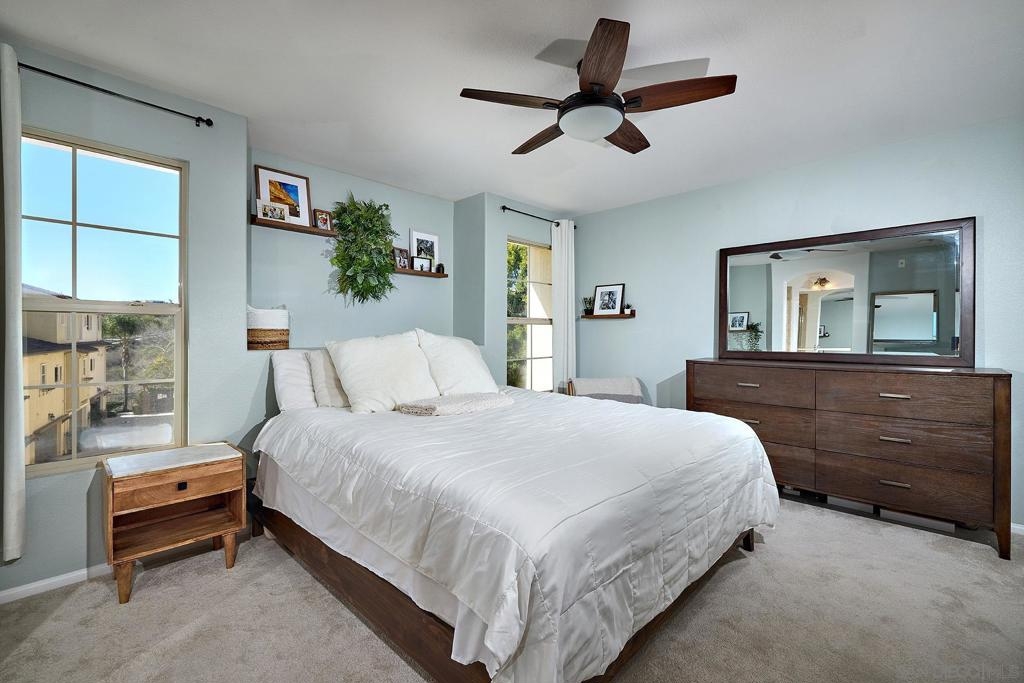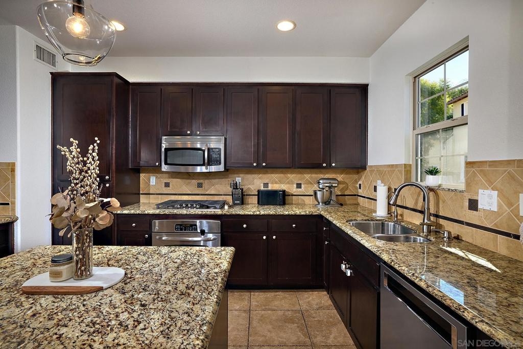 Welcome Home! Move-in Ready Townhome in Larkspur Creek @ Old Creek Ranch. Dual primary bedrooms + entry level office/3rd bedroom option w/private outdoor space/enclosed patio. Kitchen w/ island, SS Appliances, granite counters. Hillside views and an abundance of light throughout. Attached 2 car garage with built-ins & epoxy floors. New A/C. Community pool, spa & BBQ area w/ nearby playgrounds, parks & trails. A short drive to the beach, shopping, restaurants, trails, parks, & much more! Highly rated schools. Must see! Move-in Ready Townhome in Larkspur Creek @ Old Creek Ranch, near San Elijo Hills. Immaculate & tastefully upgraded w/ dual primary bedrooms + office/3rd bedroom option, and private outdoor space/enclosed patio. No units in front and open views of adjacent hills. Features include dual primary bedrooms each with ensuite baths & new ceiling fans (2021). Spacious kitchen with granite counters, designer backsplash, stainless steel appliances, new GAS stove top (2023) center island with eat-in bar & reverse osmosis water filtration system. Large living room with gas-burning fireplace, wood floors, and mountain views. Entry-level office with French doors - perfect to use as a private office or a 3rd bedroom. recessed lighting throughout, tile & premium carpet flooring, a/c & more. The entry-level office opens up to your private front patio with beautiful mountain views, space for BBQ, lounging and more! Attached 2 car garage with custom built-in cabinets (2020) and epoxy floor (2024). New AC (2021). Zoned for top schools including Carrillo Elementary, San Elijo Middle School, and San Marcos High School. Enjoy the community pool, spa & BBQ area and nearby playgrounds, parks & trails. A short drive to the beach, shopping, restaurants, trails, parks, San Elijo Hills town center w/shopping/amenities and so much more.