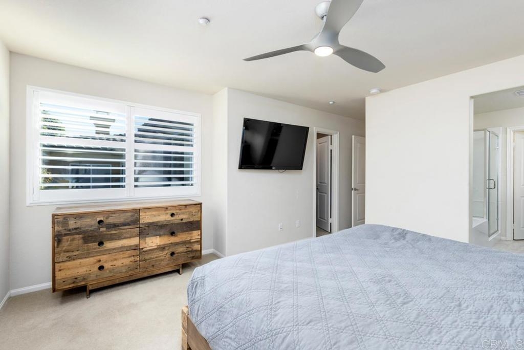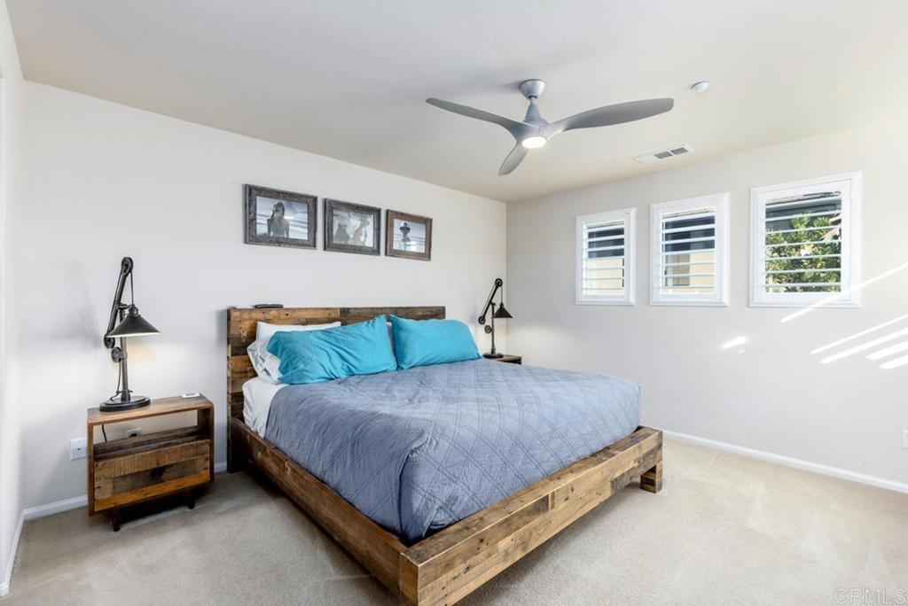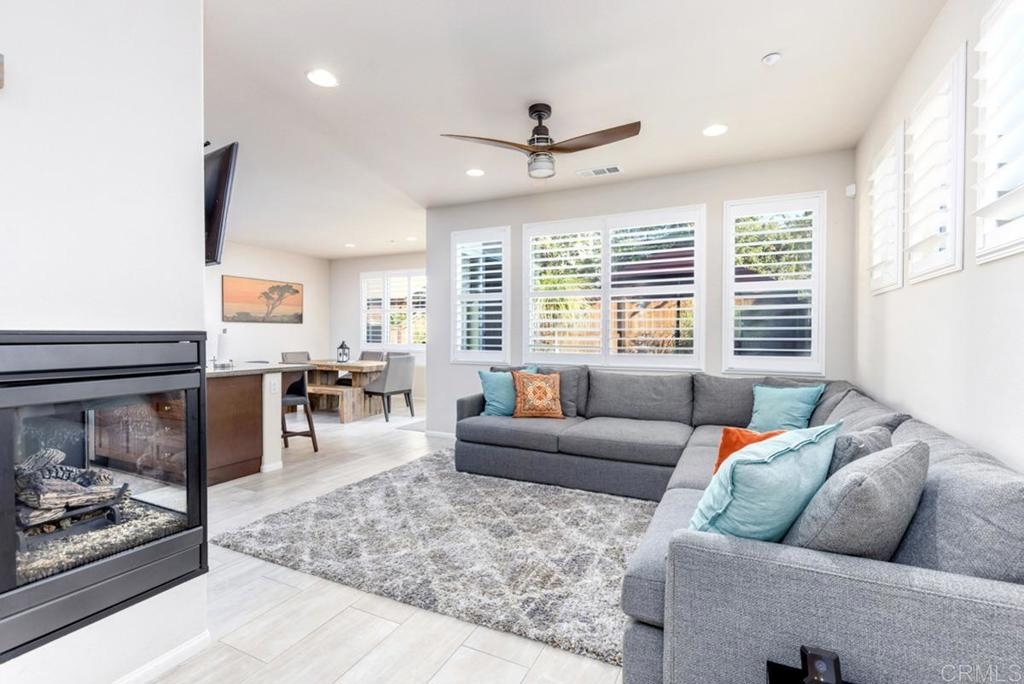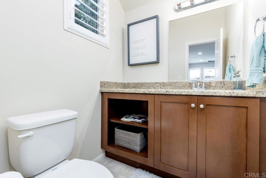 Here is your opportunity to own a bright and spacious twinhome in the highly coveted community of Laurel in Old Creek Ranch. This 3 bed, 2.5 bath two story duplex is highly upgraded with stainless steel appliances, walnut colored cabinets throughout, granite Kitchen counters, built-in niche, glass fireplace, 12x24 designer porcelain tile on the main level, white custom shutters on every window, and designer ceiling fans in each bedroom. Fully landscaped and hardscaped backyard with mature trees, succulents, water fountain, pavers, lights, and automatic sprinklers. With only one common wall, this unit is privately located in one of the quietest sections of the complex with south/east mountain views. Plenty of natural light in every room. Low density complex with plenty of guest parking. Easy access to the 5 or 78. Less than 5 mins to downtown San Elijo and La Costa Town Square. 10 mins to Ponto Beach in Carlsbad. Top-rated schools from K to 12. Hurry on this one!