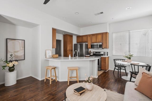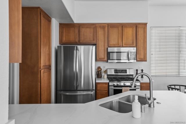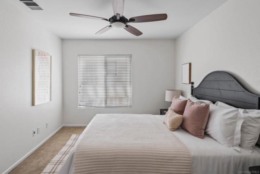 This stylish home combines comfort, convenience, and value in one of San Marcos’s most desirable gated condo communities. Thoughtfully updated with fresh paint and newer countertops, the home also includes in unit laundry, air conditioning, and downstairs a private two car garage. Vaulted ceilings and large dual pane windows fill the interior with natural light, creating a bright and spacious feel throughout. The floor plan features two bedrooms each enjoying their own ensuite bathrooms upstairs, along with a convenient half bath on the main level. Residents enjoy access to resort style amenities including a pool, fitness center, and playground, all within a secure and well maintained neighborhood. For added convenience, there is also 24 hour guest parking available making hosting easy and stress free. The location offers easy access to shopping, dining, grocery stores, hospitals, CSU San Marcos, and easy access to freeways, making it easy and convenient to get where you need to go with or without a car. Whether you are looking for a place to call home, a smart investment, or student housing, this property offers exceptional value and a lifestyle that blends comfort with opportunity.